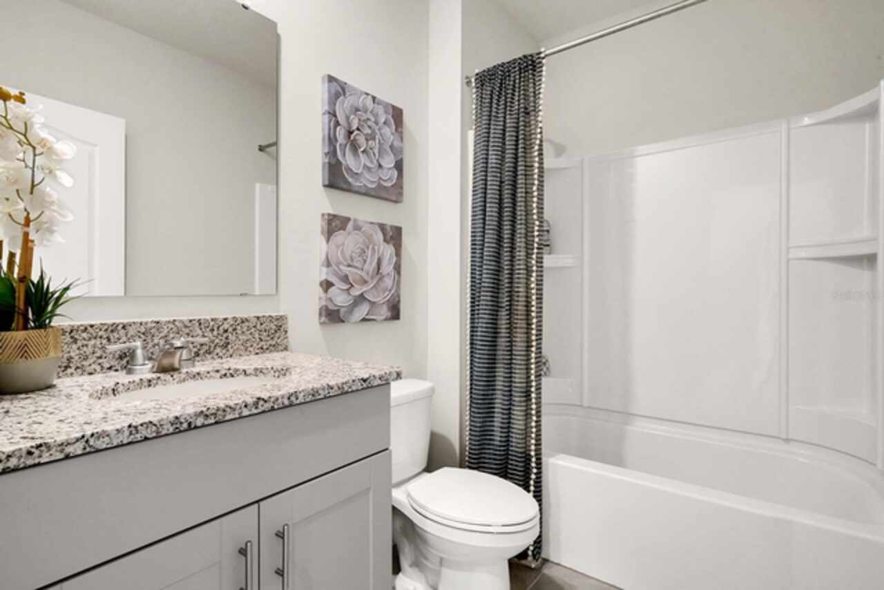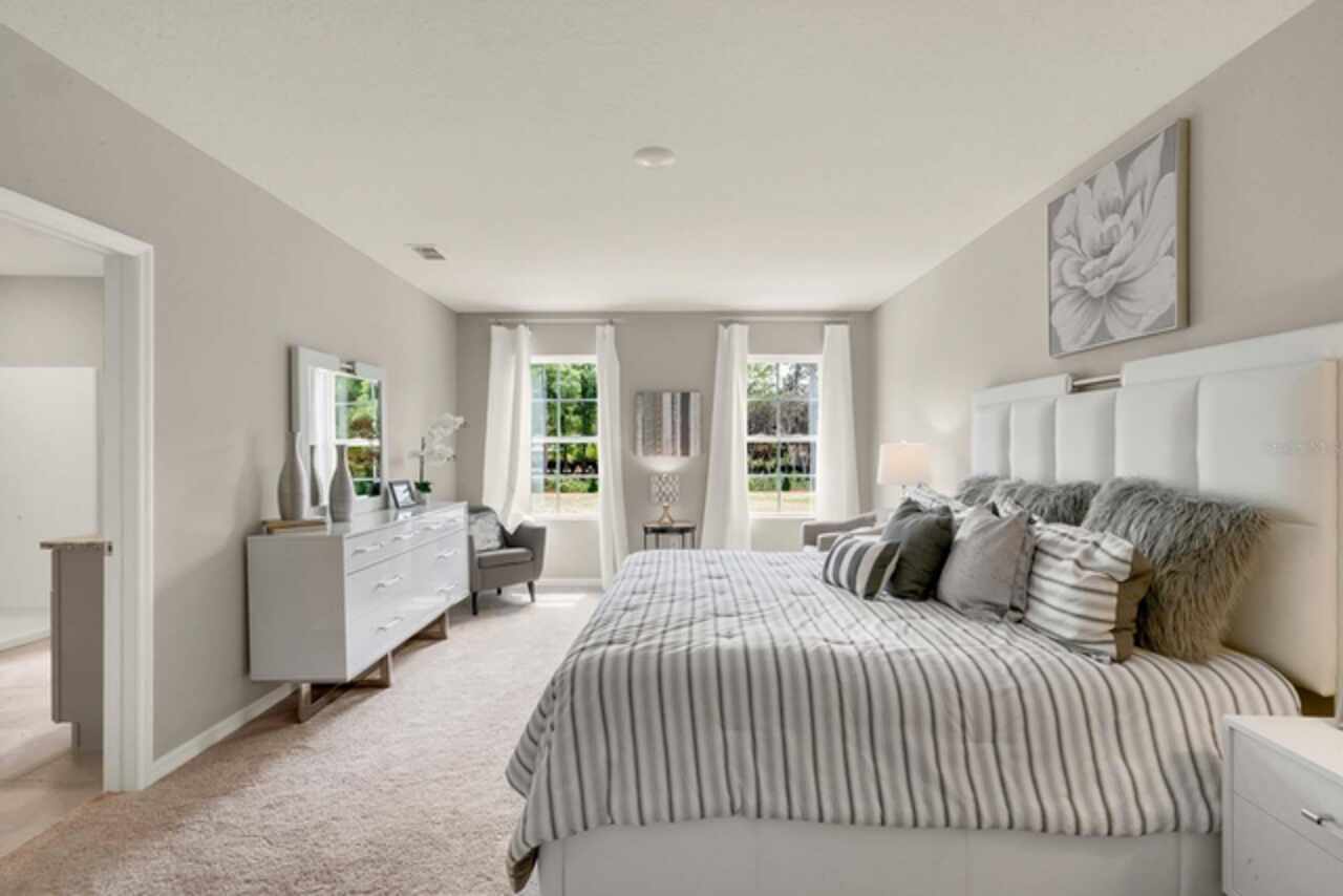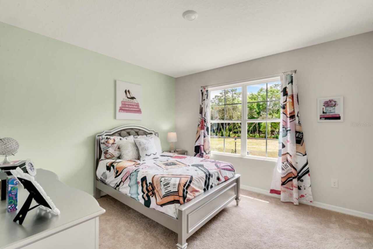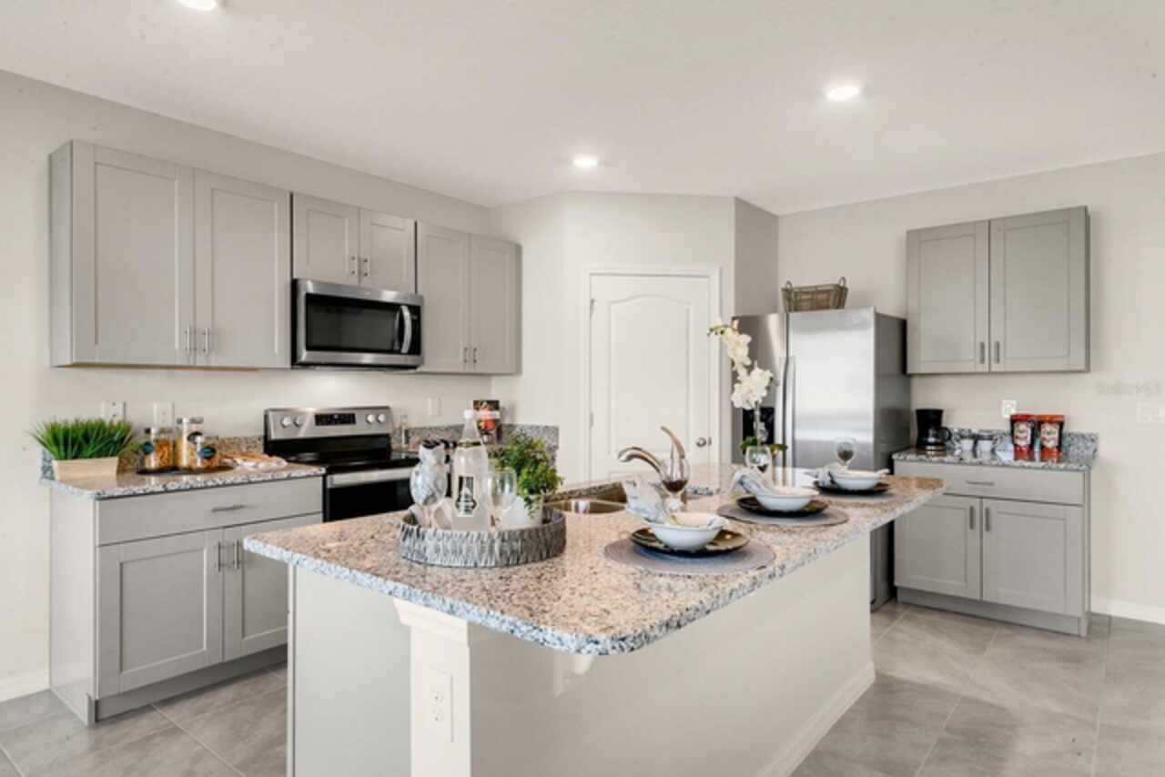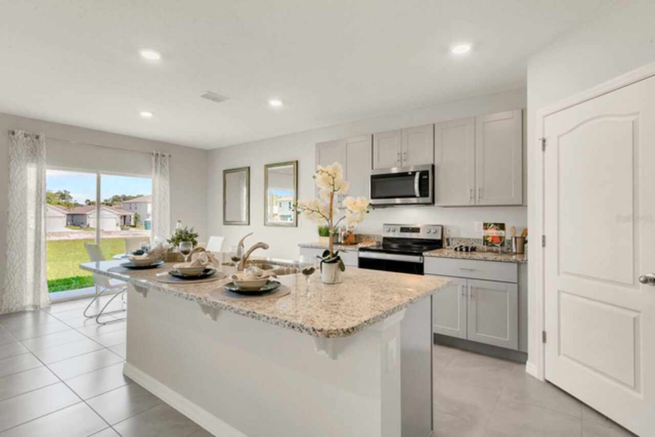 The Hayden floorplan in Buena Lago offers 5 bedrooms, 3 bathrooms, 2, 601 sq ft, and a 2-car garage. Features include a flex room, kitchen with island, granite countertops, stainless steel appliances, and a walk-in pantry. One bedroom is on the first floor for privacy. The second floor has the primary bedroom with en suite, three additional bedrooms, a second living area, and smart home technology. Contact for more details. *Photos are of similar model but not that of exact house. Pictures, photographs, colors, features, and sizes are for illustration purposes only and will vary from the homes as built. Home and community information including pricing, included features, terms, availability and amenities are subject to change and prior sale at any time without notice or obligation. Please note that no representations or warranties are made regarding school districts or school assignments; you should conduct your own investigation regarding current and future schools and school boundaries.*