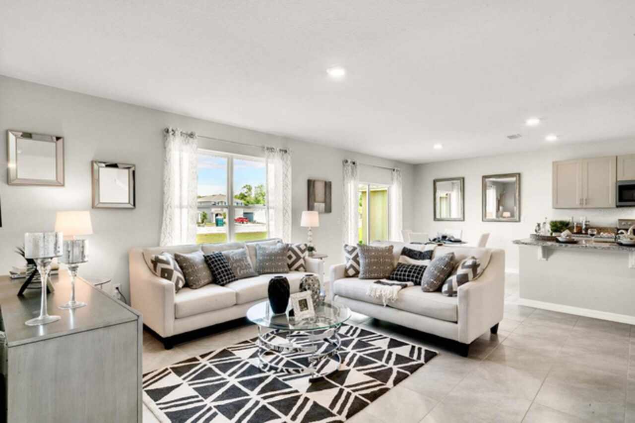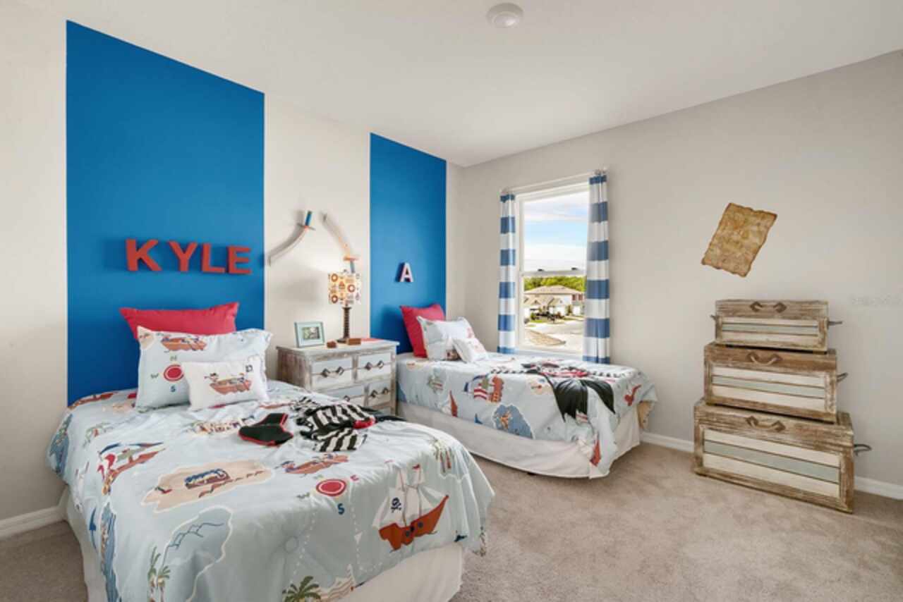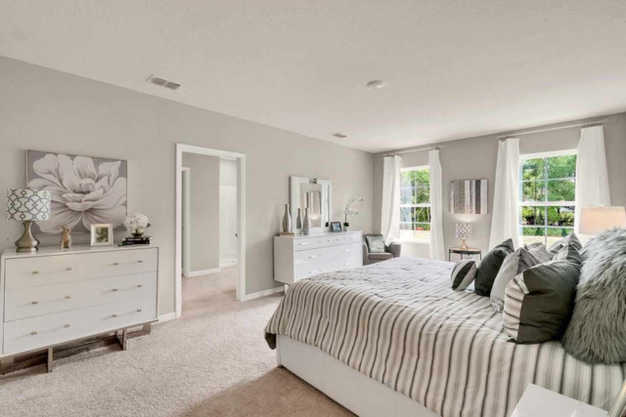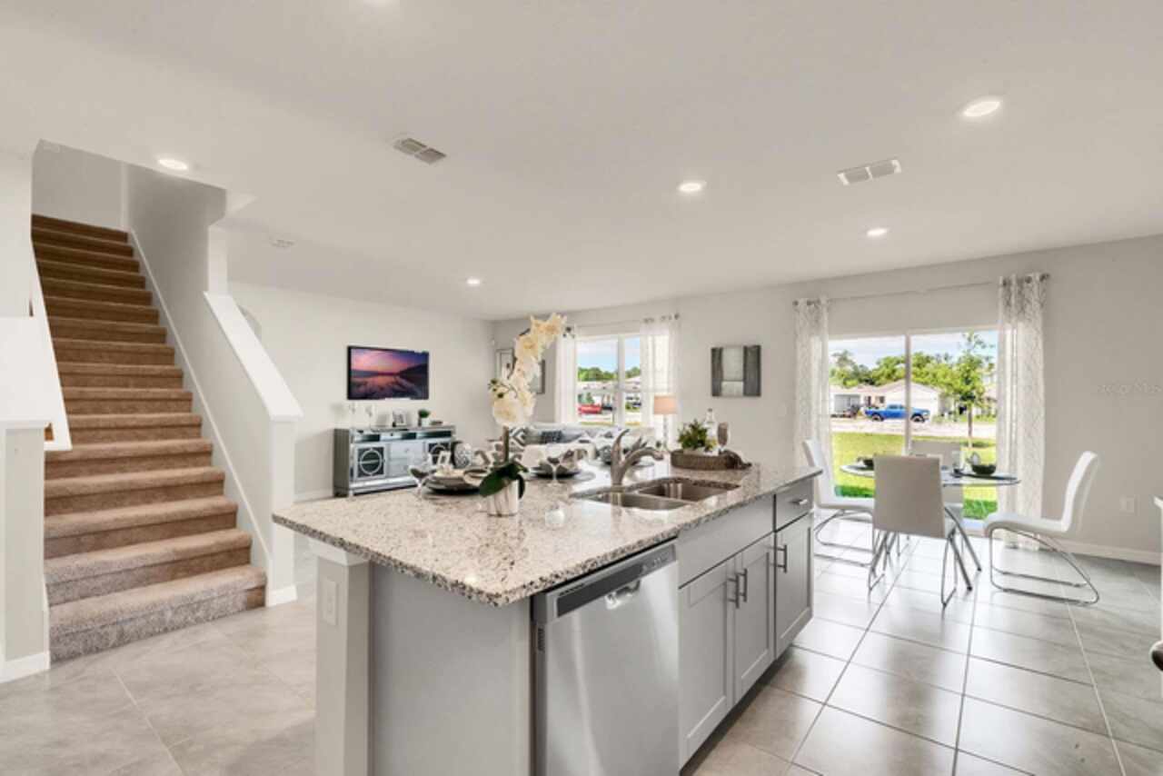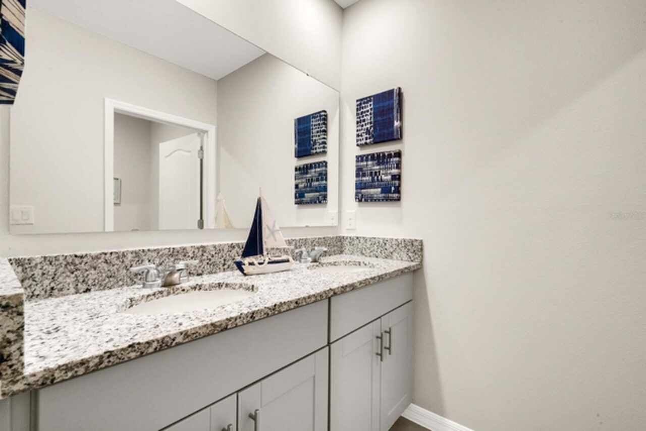 The Hayden floorplan in Buena Lago offers 5 bedrooms, 3 bathrooms, 2, 601 sq ft, and a 2-car garage. Features include a flex room, kitchen with island, granite countertops, stainless steel appliances, and a walk-in pantry. One bedroom is on the first floor for privacy. The second floor has the primary bedroom with en suite, three additional bedrooms, a second living area, and smart home technology. Contact for more details. *Photos are of similar model but not that of exact house. Pictures, photographs, colors, features, and sizes are for illustration purposes only and will vary from the homes as built. Home and community information including pricing, included features, terms, availability and amenities are subject to change and prior sale at any time without notice or obligation. Please note that no representations or warranties are made regarding school districts or school assignments; you should conduct your own investigation regarding current and future schools and school boundaries.*