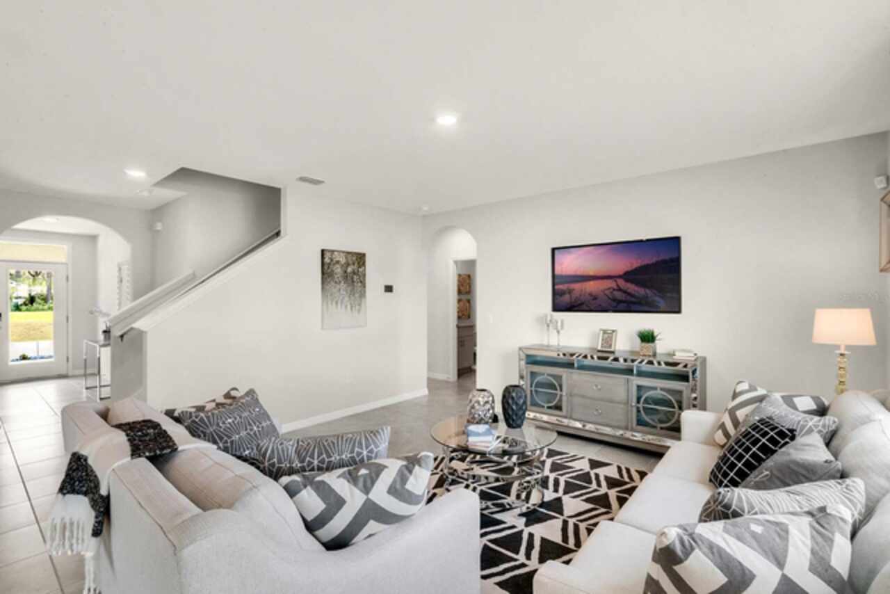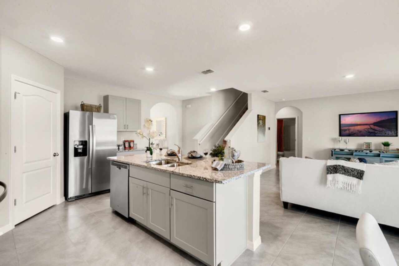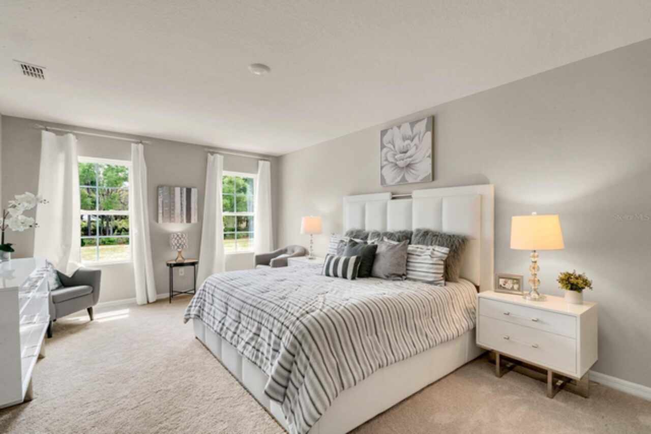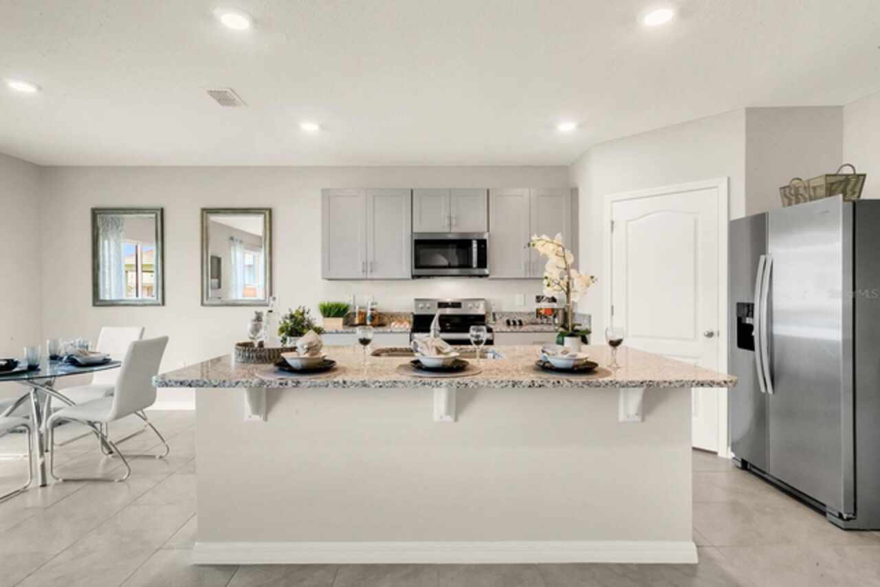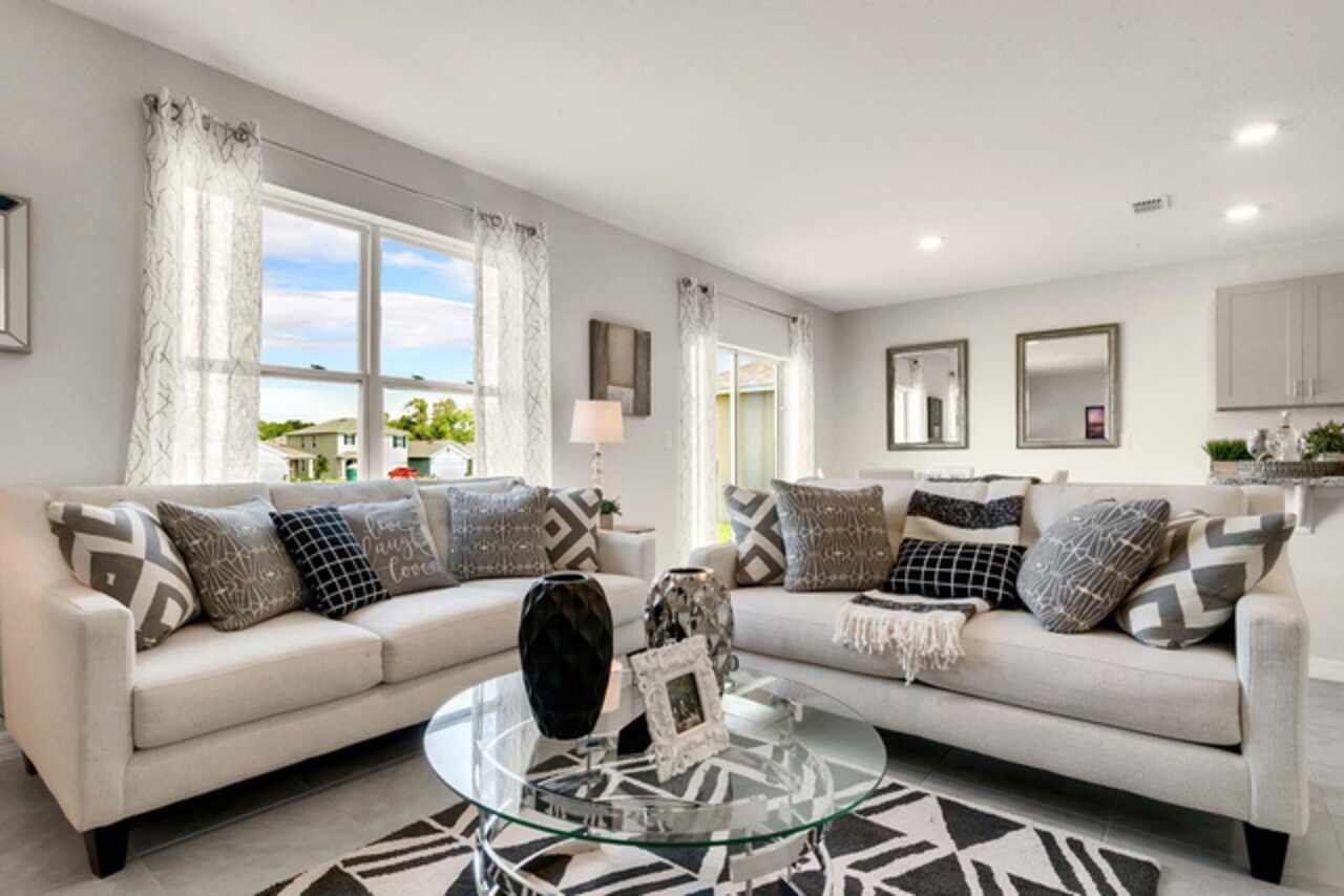 The Hayden floorplan in Buena Lago offers 5 bedrooms, 3 bathrooms, 2, 601 sq ft, and a 2-car garage. Features include a flex room, kitchen with island, granite countertops, stainless steel appliances, and a walk-in pantry. One bedroom is on the first floor for privacy. The second floor has the primary bedroom with en suite, three additional bedrooms, a second living area, and smart home technology. Contact for more details. *Photos are of similar model but not that of exact house. Pictures, photographs, colors, features, and sizes are for illustration purposes only and will vary from the homes as built. Home and community information including pricing, included features, terms, availability and amenities are subject to change and prior sale at any time without notice or obligation. Please note that no representations or warranties are made regarding school districts or school assignments; you should conduct your own investigation regarding current and future schools and school boundaries.*