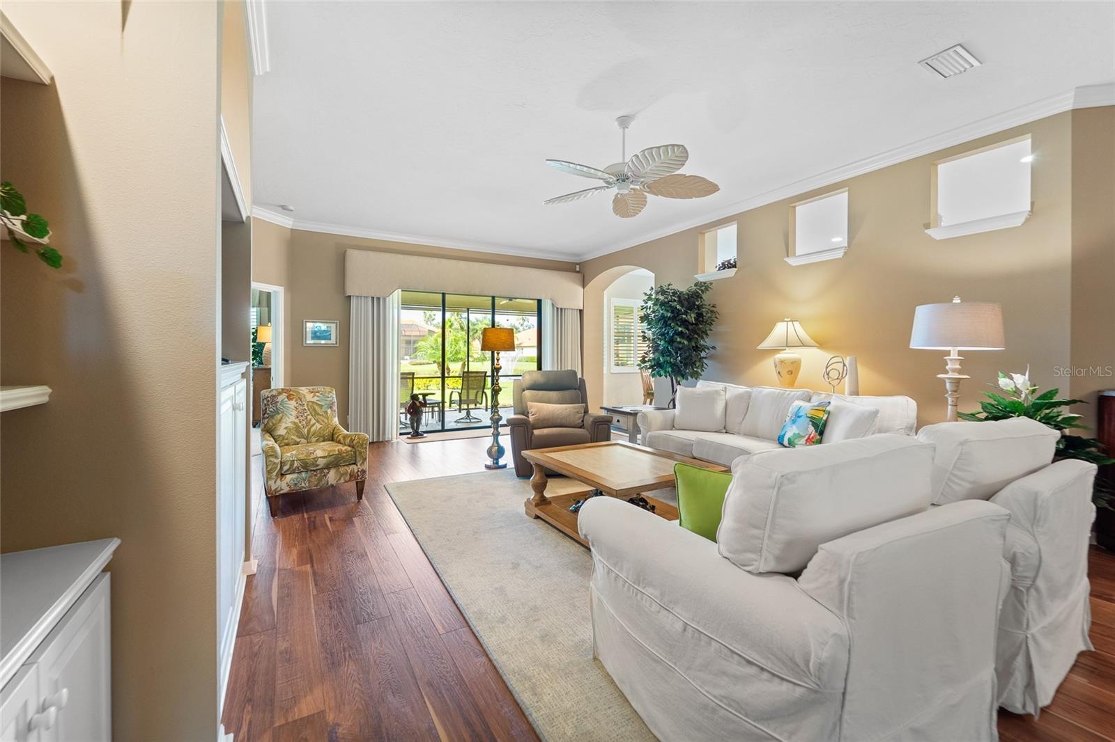 Welcome to the Vineyards of Silver Oak an impeccable community with 72 maintenance free homes developed by Gibraltar. Gibraltar was considered one of the best in Southwest Florida when this community was developed. Enjoy beautiful lakefront views from the minute you enter the home. Notice the custom features including IMPACT WINDOWS, volume trayed ceilings, wood floors, and custom mill work. The current homeowner has lovingly updated every room in the house including the chef’s kitchen with beautiful granite counters, glass tile backsplash and stainless-steel appliances. The breakfast area features lake views where you can enjoy your morning coffee watching the heron fish for breakfast outside your door. The star of the show is the view of the lake through the large 27-foot screened lanai where you can enjoy your favorite beverage as the Florida sunset paints the clouds. A separate formal dining area has plenty of room for family or neighbors to have an elegant meal or simply play cards. A built-in wine bar can be used as butler’s pantry or center for entertaining. The primary bedroom provides more lake views, custom millwork, and an upgraded ensuite spa-like bath where a dip in the garden tub can wash your cares away. Two closets provide plenty of storage. The split bedroom has lots of space for guests. The 3rd bedroom/office has double doors to easily become additional living/entertainment area. The garage is air conditioned and has a spotless polyaspartic (epoxy) floor. Silver Oak is located in the highly popular Palmer Ranch. The Legacy Bike Trail is adjacent to the community and allows you to ride, walk or jog to downtown Sarasota or Caspersen Beach in Venice. Plans are to ultimately link this to trails along the entire west coast of Florida. The home is few minutes from Costco, Target, Lowes and a plethora of other shopping.