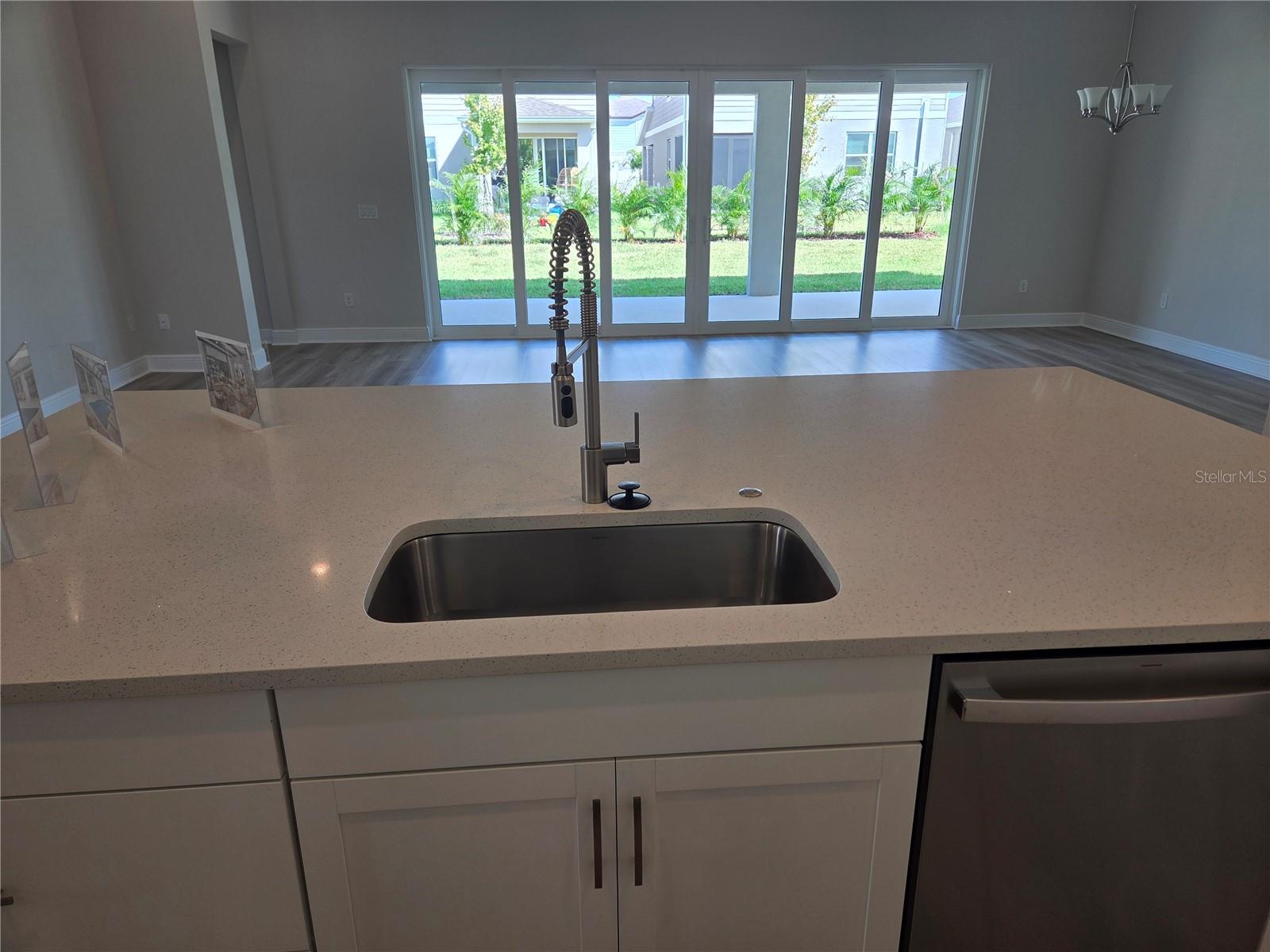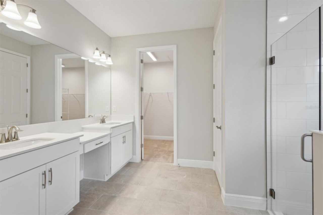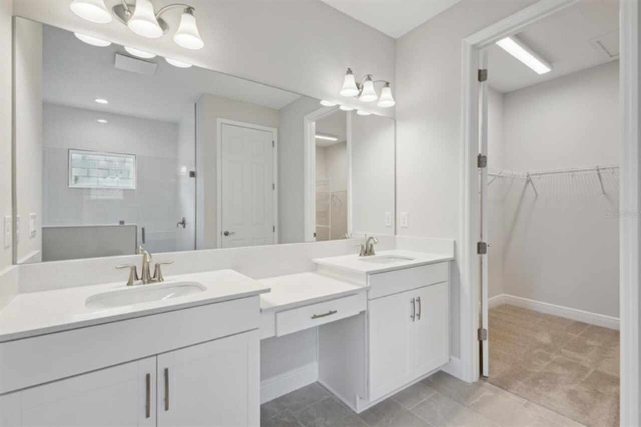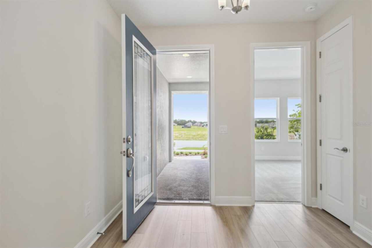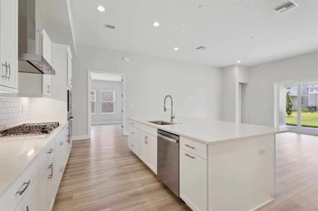 Hyde Park III - This Hyde Park III QMI is Ready Now! This exquisite, move-in-ready Hyde Park III QMI is truly a remarkable residence! You'll be captivated by its intentional design, featuring beautiful Sonoma Painted Linen cabinets and stunning Frost Whte MSI Quartz countertops in the kitchen. Throughout the main living areas, durable Polaris Plus LVP flooring adds a touch of modern elegance. The extended foyer flows gracefully into a spacious grand room, seamlessly connecting to the island kitchen and a charming café area, all opening effortlessly to an extended lanai. This outdoor oasis is made even better by an impressive 18-foot sliding glass door, perfect for enjoying the beautiful weather. Offering ideal comfort and functionality, the secondary bedrooms provide privacy, while a dedicated formal den offers versatile space for work or relaxation, and an oversized laundry room ensures ultimate convenience. The owner's retreat is a true sanctuary, boasting an expansive walk-in closet, double vanities, and a luxurious walk-in shower. This home truly offers well-appointed living and leisure spaces, meticulously designed for ultimate versatility and livability. Listing Price amount for this Sale includes Design and Structural Options.