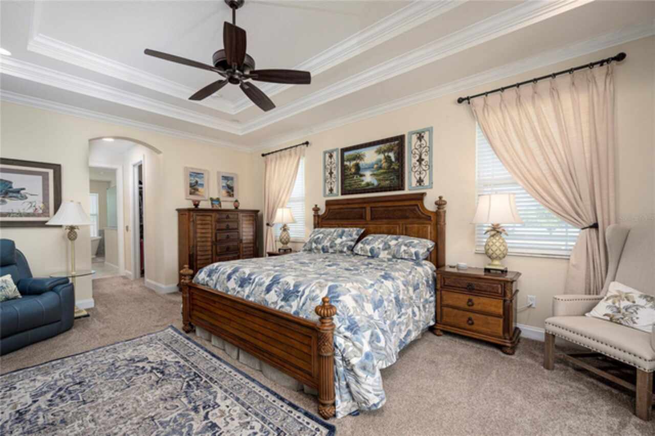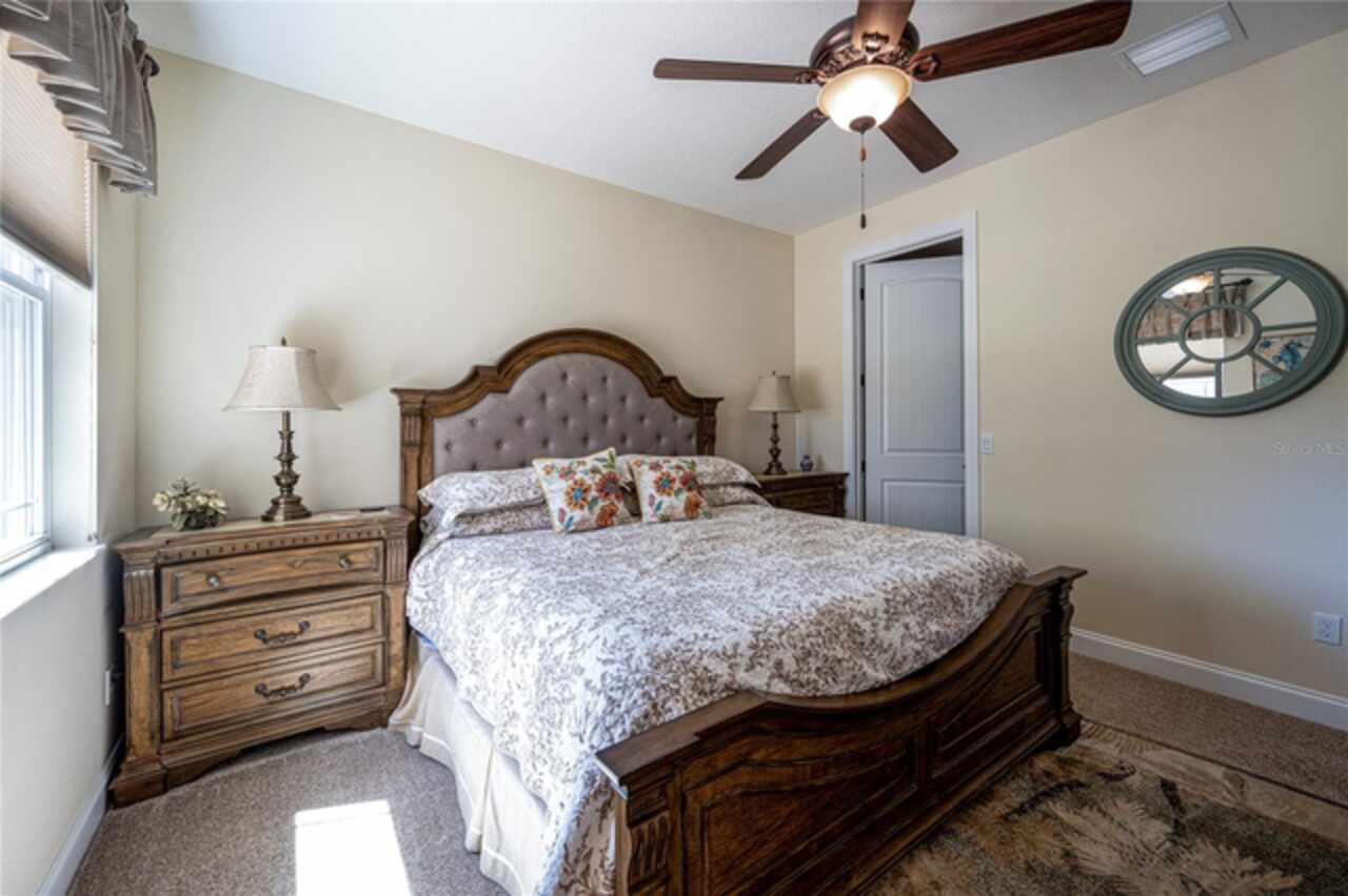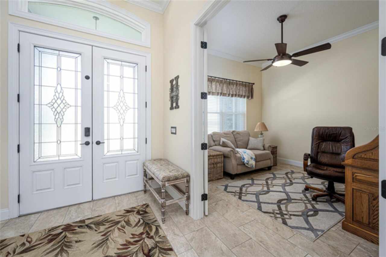 Welcome to Bradford Farms Equestrian community! – 5.32 +/- acre equestrian estate in a gated equine community. This luxurious 4-bedroom, 3-bathroom home offers an open floor plan with stunning views of the screened-in outdoor pool and Central Florida countryside. The residence is bright and inviting, with an office and triple split-bedroom layout, cathedral ceilings, and a cozy fireplace. For culinary enthusiasts, the eat-in kitchen is a dream come true, featuring a large eat-in kitchen with Cherry cabinets, granite countertops, a large island with seating, Bosch 800 Series appliances, a 5-Burner gas cooktop, a built-in wine rack, accent lighting, and a walk-in pantry. The great room has an 11’ pop ceiling, built-in features, a gas fireplace, built-ins, plus French doors leading to the lanai and pool area. The primary suite boasts two walk-in closets and a luxurious en-suite bathroom with dual vanities, a walk-in shower, and a soaking tub. Spacious laundry room with a laundry sink, granite countertops, and built-in cabinets. The expansive back patio is ideal for hosting gatherings, with a generous covered area that provides ample seating, creating a warm and inviting atmosphere for entertaining, whether during the day or evening. To enhance your experience, a heated saltwater pool adds an extra layer of enjoyment to your outdoor space. 3-Bay heated and cooled garage. 12’ x 20’ cook barn-style outbuilding for the use of your choice. The property has some pet-fenced areas and two fenced paddocks. Additionally, the property includes a whole-house generator, 2 On Demand LP water heaters, and a Lightning arrestor system. It is located close to shopping, medical facilities, and restaurants. Equestrian enthusiasts will enjoy the nearby Florida Greenway trail system. Experience luxury living and equestrian excellence in this exceptional estate!