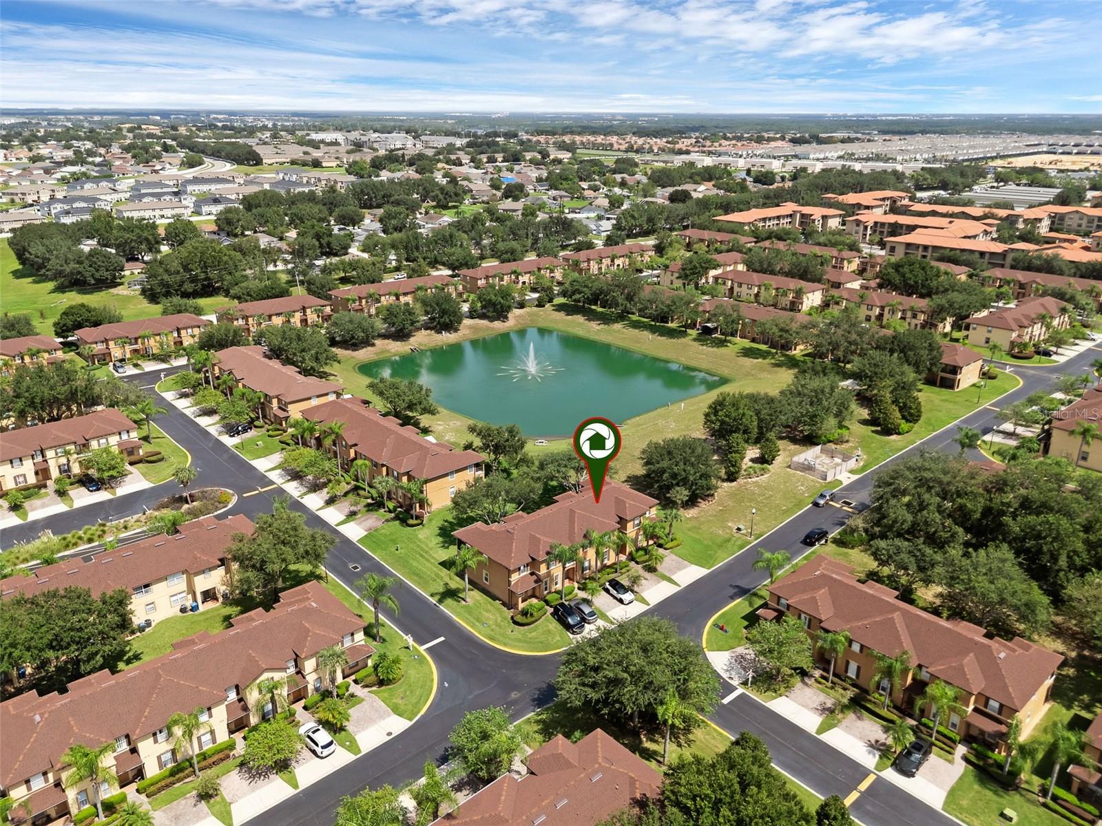 Whether you’re searching for a vacation retreat or investment property, this 4-bedroom, 3-bath townhome in the sought-after community of Regal Palms at Highland Reserve checks every box. With over 1, 800 sq. ft. of living space, it blends comfort and convenience with an open-concept design perfect for relaxing or entertaining. Step inside and you’re greeted by one of two primary suites located downstairs—an ideal setup for guests or multi-generational living. Just across the way, the kitchen offers plenty of cabinet space, a cozy breakfast bar, and a nearby dinette that opens to the main living area. The layout keeps the cook connected to the conversation while dinner is in the works. The spacious living room opens through sliding glass doors to a private back porch overlooking a tranquil pond—a peaceful spot to enjoy your morning coffee or unwind after a long day. Upstairs, the second primary suite feels like its own retreat with a walk-in closet, an en-suite bathroom with shower/tub combo, and an oversized vanity. Two additional bedrooms and another full bath provide plenty of space for family, guests, or even a home office. Life at Regal Palms means every day feels like a getaway. The resort-style amenities include a 24-hour guarded gate, community pool, lazy river, poolside tiki bar, fitness center, on-site restaurant, arcade, volleyball court, playground, cable and internet, lawn care, trash, and interior/exterior pest control—all covered by your HOA. Perfectly positioned just a short walk from Berry Town Center, you’re close to Publix, dining, and shopping, and only a short drive from the theme parks and major highways that make exploring Florida easy. This home is ready for you to move in, kick back, and start living the Florida lifestyle you’ve been dreaming of.