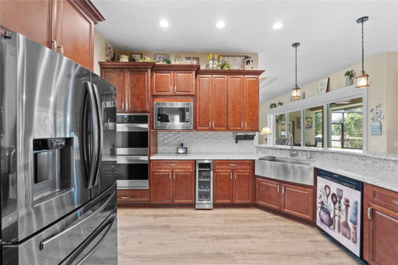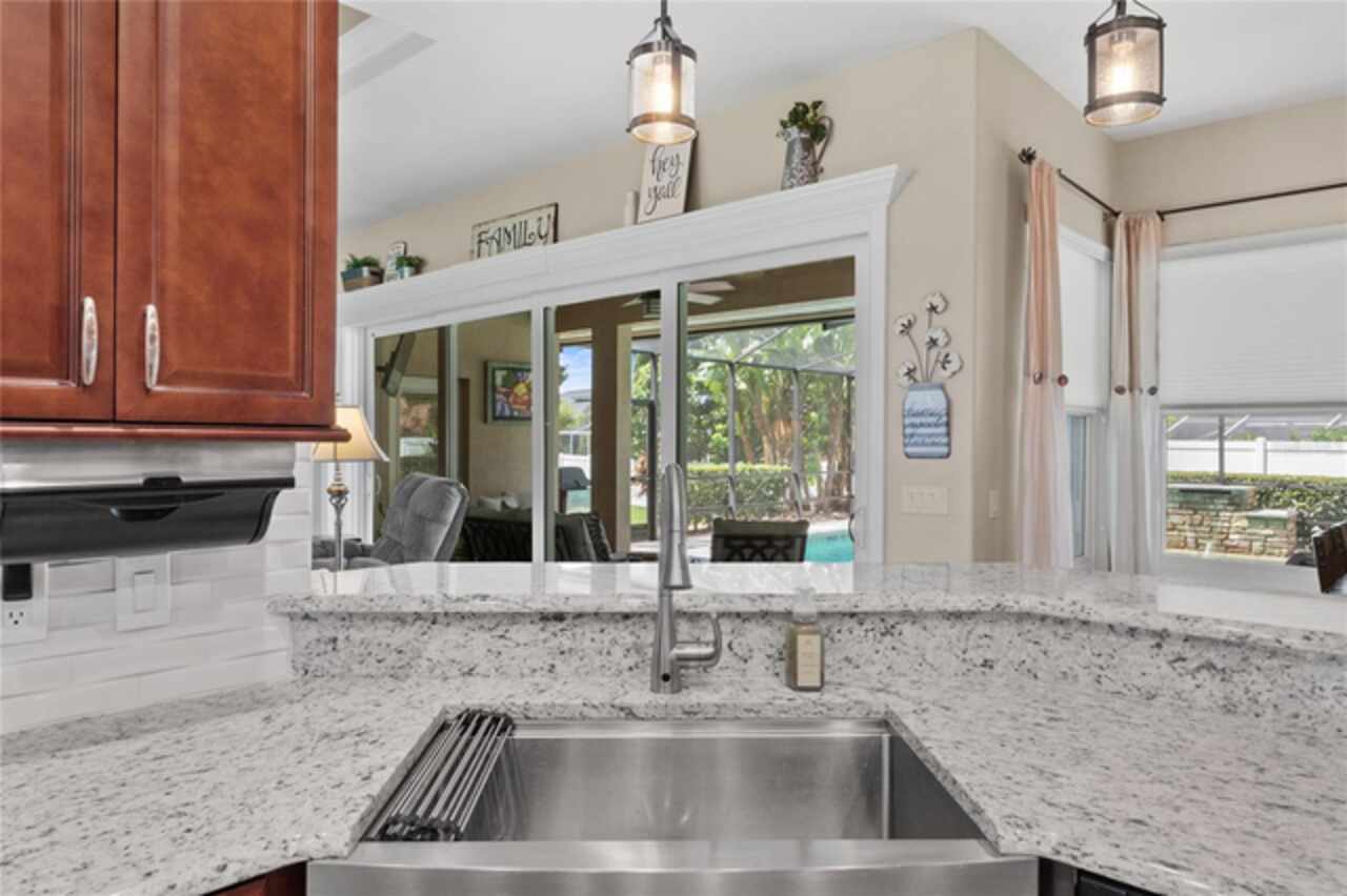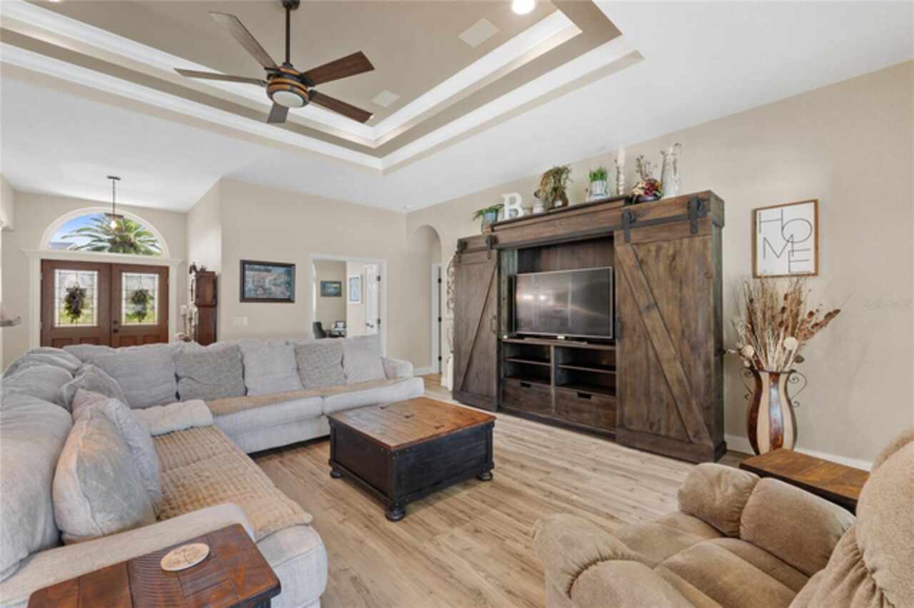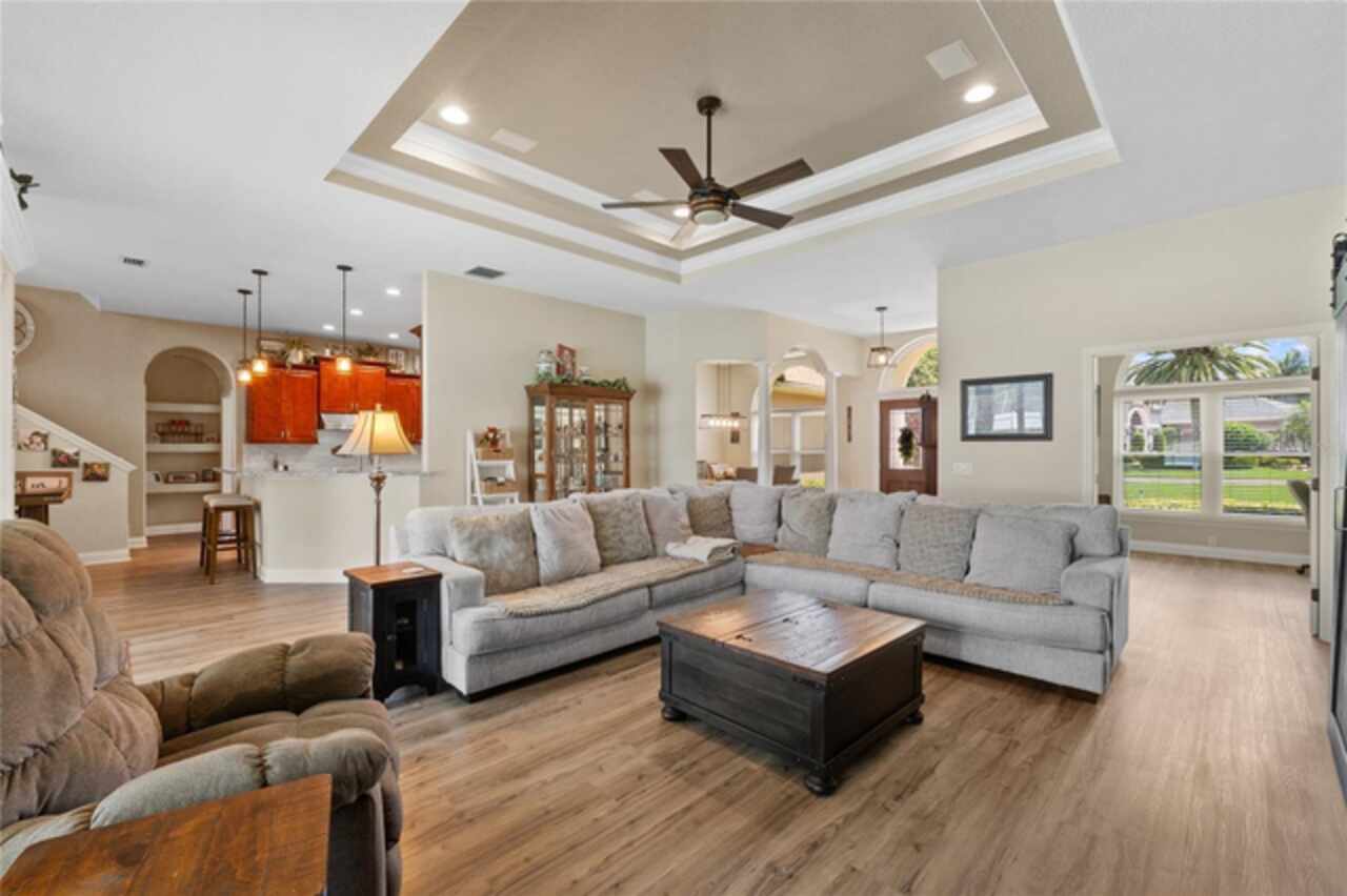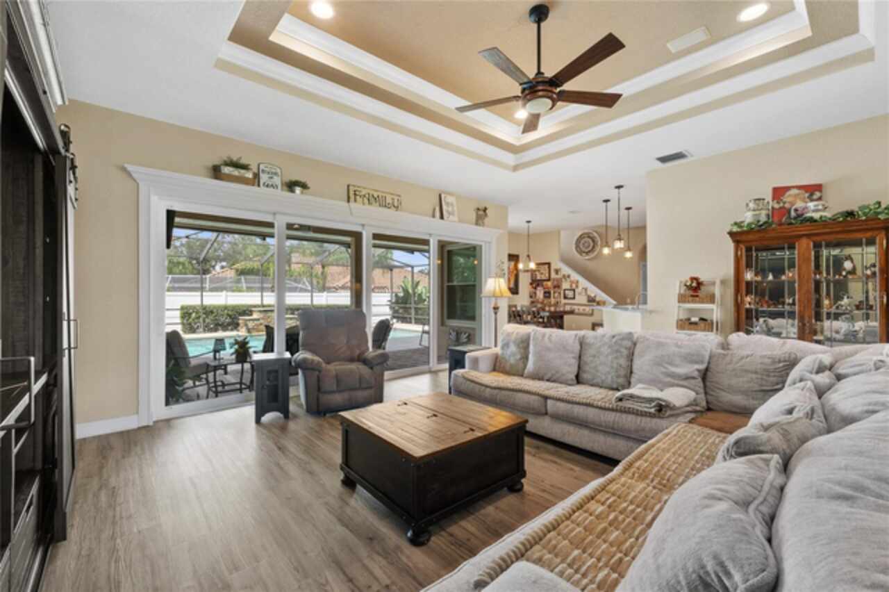 Meticulous pool home located in the gated community of Highlands-By-The-Lake. Set on a manicured half-acre lot, 5195 Highlands Lakeview offers a thoughtful blend of timeless design, quality updates, and a comfortable, functional layout. The home features four bedrooms, three full baths, and a spacious interior designed to accommodate both daily living and gatherings of any size. The entry leads into an inviting interior with elevated ceilings, natural light, and no carpet. The great room includes a double tray ceiling, a wall of sliders, and direct access to the pool lanai. The kitchen, remodeled in 2021, includes custom cabinetry, granite counters, a breakfast bar, double ovens, a wine chiller, and ample prep and storage space. The first-floor primary suite includes a sitting area, pool access, two walk-in closets, and a 2024 remodeled bathroom with handcrafted cabinetry, quartz vanities, a soaking tub, and a walk-in shower. Adjacent to the primary suite is an office/4th bedroom that works well for remote work, guests, or nursery use. A second main-level bedroom sits near the newly remodeled guest bath featuring porcelain tile, a quartz vanity, and a tub/shower combination. Upstairs, a second living area accompanies the third bedroom and another full bath. A walk-in attic with decking offers additional storage and room for possible future expansion. The outdoor area features a private pool with a waterfall, a covered lanai with a TV hookup, and space suited for relaxing or casual gatherings. Recent improvements include new double-paned windows and sliders (2023), a composite front door (2023), two new AC units (2022 & 2023), a new roof (2018), and remodeled bathrooms (2024 and 2025). The home also offers a large laundry room, a side-entry three-car garage with significant storage, generous parking, and a fenced yard. Highlands-By-The-Lake provides gated access along with a clubhouse, tennis and pickleball courts, and a community pool. The Lakeland area offers lakes for fishing and boating, golf courses, parks, trails, well-regarded schools, libraries, boutique shopping, restaurants, breweries, and year-round community events. Travel is convenient with Lakeland Linder International Airport offering commercial service and Tampa and Orlando international airports both less than an hour away.