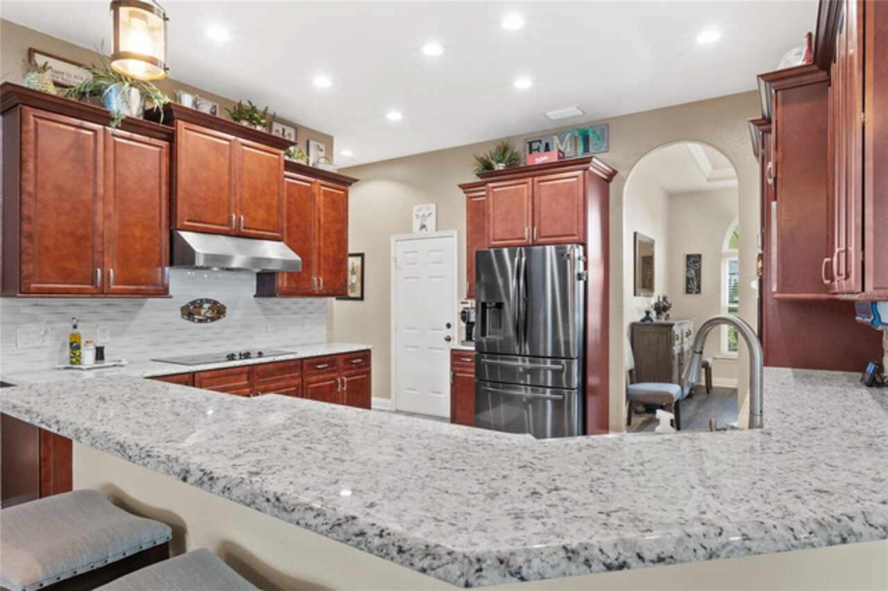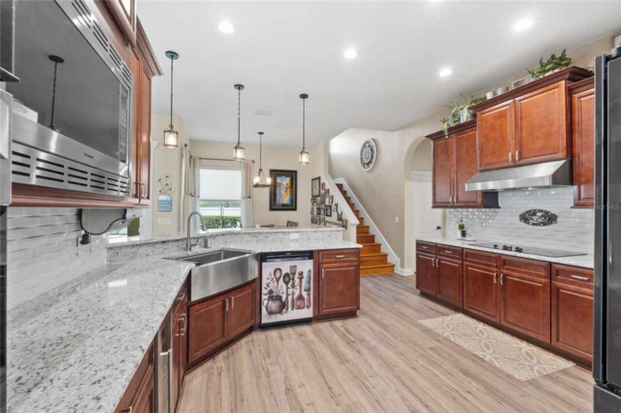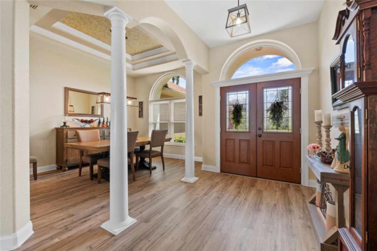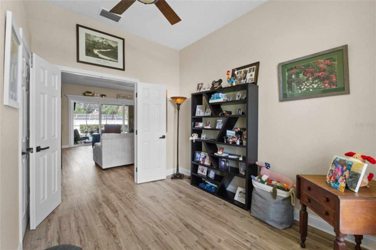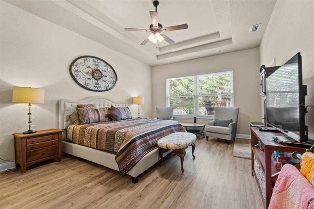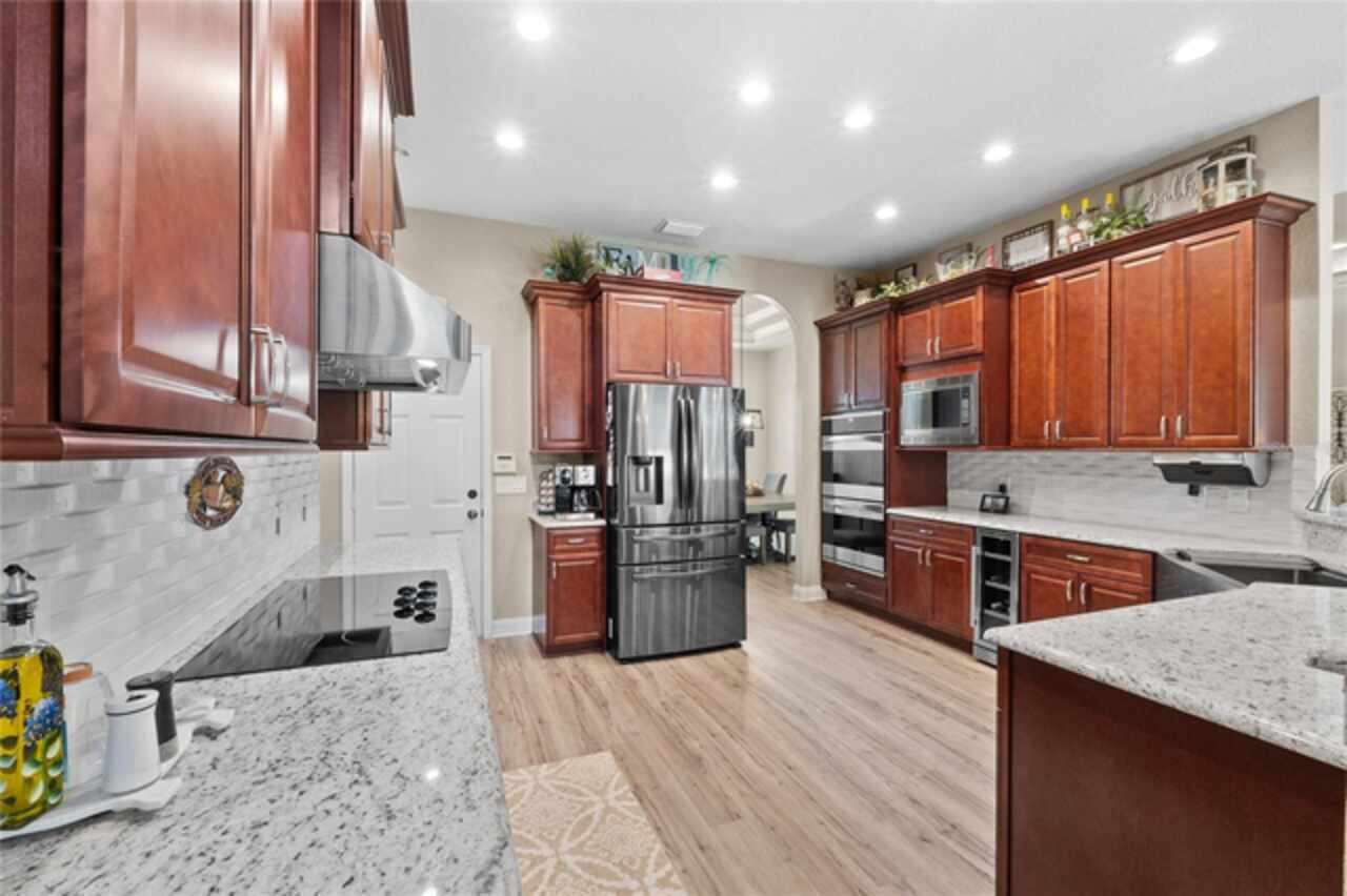 Meticulous pool home located in the gated community of Highlands-By-The-Lake. Set on a manicured half-acre lot, 5195 Highlands Lakeview offers a thoughtful blend of timeless design, quality updates, and a comfortable, functional layout. The home features four bedrooms, three full baths, and a spacious interior designed to accommodate both daily living and gatherings of any size. The entry leads into an inviting interior with elevated ceilings, natural light, and no carpet. The great room includes a double tray ceiling, a wall of sliders, and direct access to the pool lanai. The kitchen, remodeled in 2021, includes custom cabinetry, granite counters, a breakfast bar, double ovens, a wine chiller, and ample prep and storage space. The first-floor primary suite includes a sitting area, pool access, two walk-in closets, and a 2024 remodeled bathroom with handcrafted cabinetry, quartz vanities, a soaking tub, and a walk-in shower. Adjacent to the primary suite is an office/4th bedroom that works well for remote work, guests, or nursery use. A second main-level bedroom sits near the newly remodeled guest bath featuring porcelain tile, a quartz vanity, and a tub/shower combination. Upstairs, a second living area accompanies the third bedroom and another full bath. A walk-in attic with decking offers additional storage and room for possible future expansion. The outdoor area features a private pool with a waterfall, a covered lanai with a TV hookup, and space suited for relaxing or casual gatherings. Recent improvements include new double-paned windows and sliders (2023), a composite front door (2023), two new AC units (2022 & 2023), a new roof (2018), and remodeled bathrooms (2024 and 2025). The home also offers a large laundry room, a side-entry three-car garage with significant storage, generous parking, and a fenced yard. Highlands-By-The-Lake provides gated access along with a clubhouse, tennis and pickleball courts, and a community pool. The Lakeland area offers lakes for fishing and boating, golf courses, parks, trails, well-regarded schools, libraries, boutique shopping, restaurants, breweries, and year-round community events. Travel is convenient with Lakeland Linder International Airport offering commercial service and Tampa and Orlando international airports both less than an hour away.