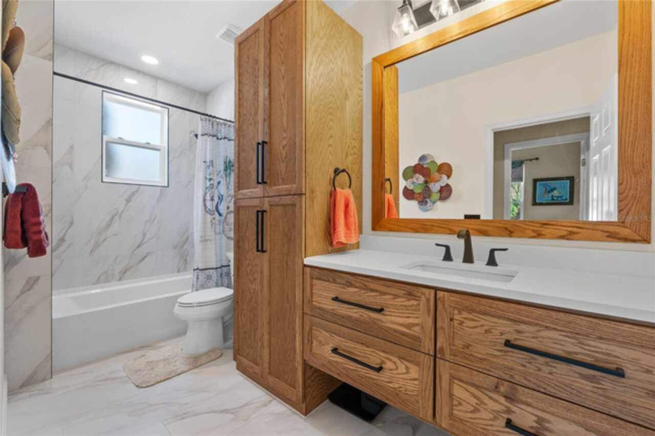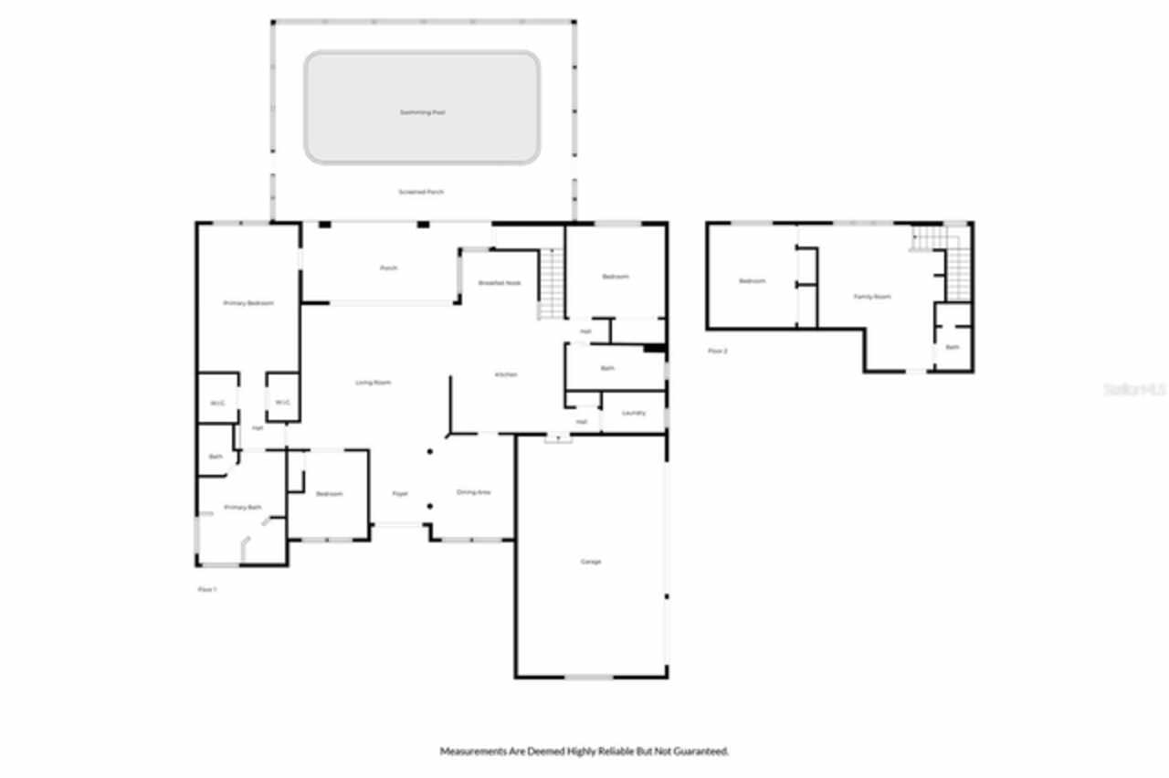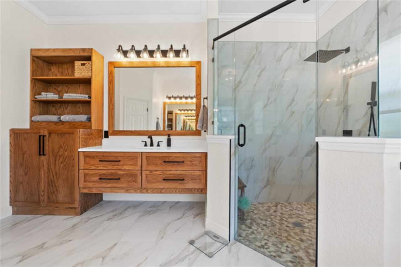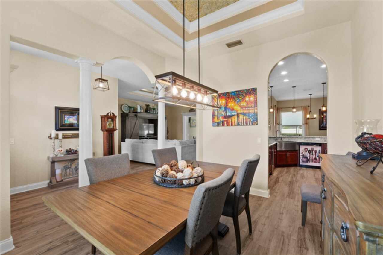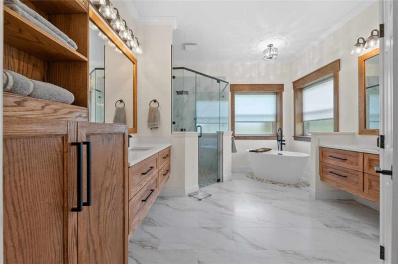 Meticulous pool home located in the gated community of Highlands-By-The-Lake. Set on a manicured half-acre lot, 5195 Highlands Lakeview offers a thoughtful blend of timeless design, quality updates, and a comfortable, functional layout. The home features four bedrooms, three full baths, and a spacious interior designed to accommodate both daily living and gatherings of any size. The entry leads into an inviting interior with elevated ceilings, natural light, and no carpet. The great room includes a double tray ceiling, a wall of sliders, and direct access to the pool lanai. The kitchen, remodeled in 2021, includes custom cabinetry, granite counters, a breakfast bar, double ovens, a wine chiller, and ample prep and storage space. The first-floor primary suite includes a sitting area, pool access, two walk-in closets, and a 2024 remodeled bathroom with handcrafted cabinetry, quartz vanities, a soaking tub, and a walk-in shower. Adjacent to the primary suite is an office/4th bedroom that works well for remote work, guests, or nursery use. A second main-level bedroom sits near the newly remodeled guest bath featuring porcelain tile, a quartz vanity, and a tub/shower combination. Upstairs, a second living area accompanies the third bedroom and another full bath. A walk-in attic with decking offers additional storage and room for possible future expansion. The outdoor area features a private pool with a waterfall, a covered lanai with a TV hookup, and space suited for relaxing or casual gatherings. Recent improvements include new double-paned windows and sliders (2023), a composite front door (2023), two new AC units (2022 & 2023), a new roof (2018), and remodeled bathrooms (2024 and 2025). The home also offers a large laundry room, a side-entry three-car garage with significant storage, generous parking, and a fenced yard. Highlands-By-The-Lake provides gated access along with a clubhouse, tennis and pickleball courts, and a community pool. The Lakeland area offers lakes for fishing and boating, golf courses, parks, trails, well-regarded schools, libraries, boutique shopping, restaurants, breweries, and year-round community events. Travel is convenient with Lakeland Linder International Airport offering commercial service and Tampa and Orlando international airports both less than an hour away.