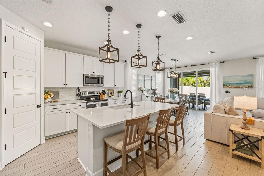 Under contract-accepting backup offers. WELCOME HOME TO 52 LOS LAGOS BLVD-Better than ever now with a PRICE IMPROVEMENT! Nestled in the desirable Los Lagos community at Matanzas Shores, this STUNNING coastal-style PRIVATE POOL home offers the perfect blend of luxury, comfort, and an ACTIVE beachside lifestyle. Built in 2021, this casually elegant 4-bedroom 3-bathroom home is designed with timeless class and modern amenities, making it the ideal retreat for those who appreciate the finer things in life. Boasting an expansive layout and 3-way split floorplan, the primary suite is conveniently located on the first floor, while a spacious LOFT upstairs (along with bedroom #4 and full bath) offers endless possibilities for relaxation or entertainment. Two secondary bedrooms along with a guest bath are conveniently located in the front of the home. The home features a chef’s kitchen with stainless steel appliances, sleek quartz countertops, subway tile backsplash, a large center island, gorgeous hardware finishes and pendant lighting, abundant cabinetry storage with pull-outs and a generously sized pantry – perfect for preparing gourmet meals or spreading out TAILGATE treats for FOOTBALL SEASON! The open-concept living/dining combo GREAT ROOM flows seamlessly onto the covered lanai offering an outdoor POOLSIDE living room, making this home an entertainer’s dream! Custom retractable Maestro Screens and Suntec Shades can enclose the lanai for extra privacy or keep them open to access the Travertine Tile Pool Deck and HEATED SALTWATER POOL complete with a LARGE SUN SHELF, Bubbler and LED-LIGHTS. Additional highlights and upgrades include vinyl privacy fencing surrounding the backyard, french drain system tied into pool drain, luxury wood plank-style tile throughout the downstairs of the home except for the carpeted bedrooms. The SPACIOUS Primary Suite overlooks the backyard and pool area and offers privacy and luxury including dual closets and dual sinks, large walk-in shower and water closet. The tropical landscaping adds an extra touch of beauty to this already impressive property. The community’s incredible amenities include underground utilities, an oceanfront clubhouse with a pool, a large day dock with fishing stations on the Intracoastal Waterway as well as a kayak launch, tennis and pickleball courts, shuffleboard, bocce ball, and direct beach access. LOS LAGOS at MATANZAS SHORES is conveniently located along scenic A1A, giving you easy access to historic St. Augustine, Marineland, Flagler Beach, and local restaurants, grocery stores, parks and the boat launch at Bings Landing. This home truly feels like living on vacation year-round. Don’t miss the opportunity to own your slice of paradise! ** Some furnishings and decor may be negotiated outside of the contract. WHAT ARE YOU WAITING FOR? Your time is NOW!!