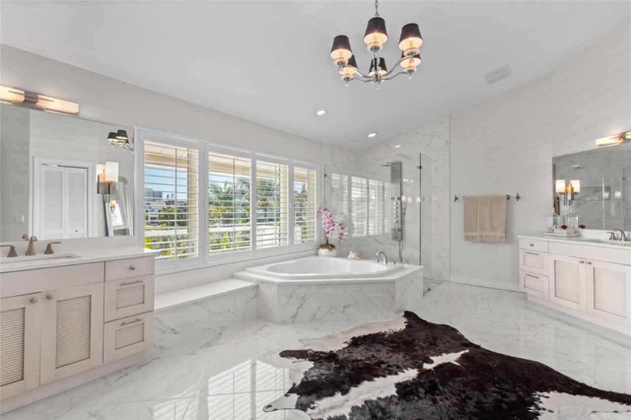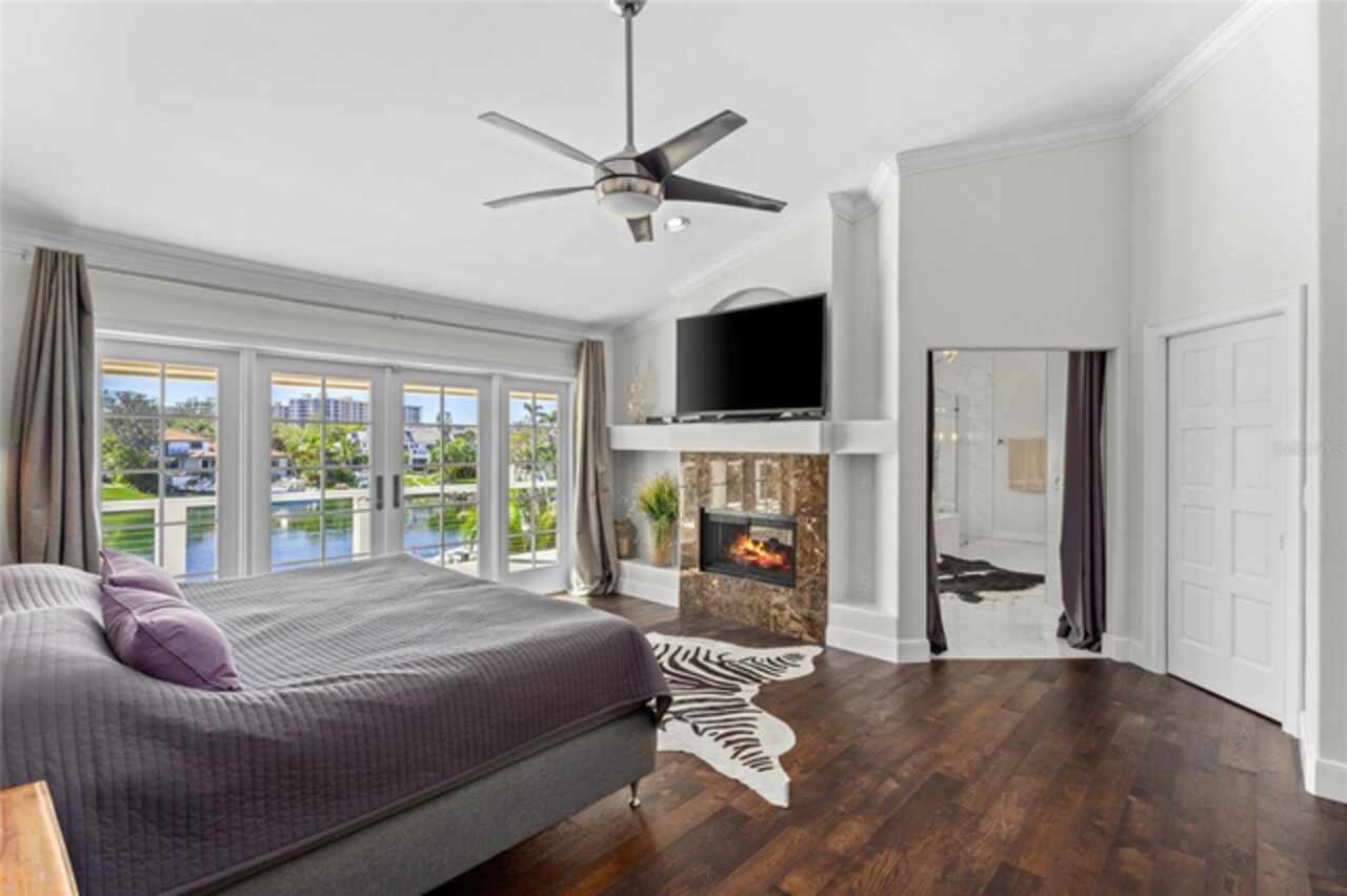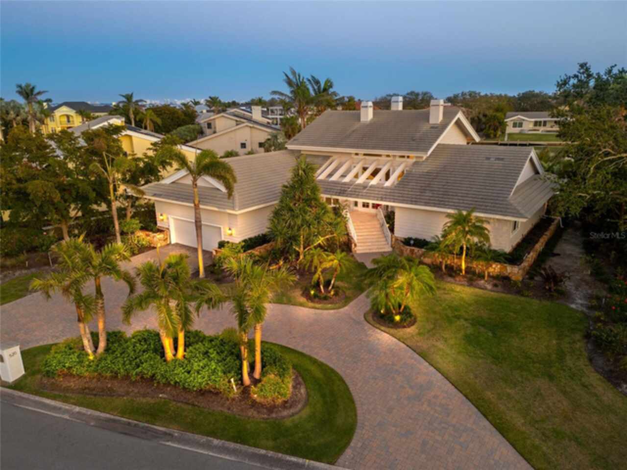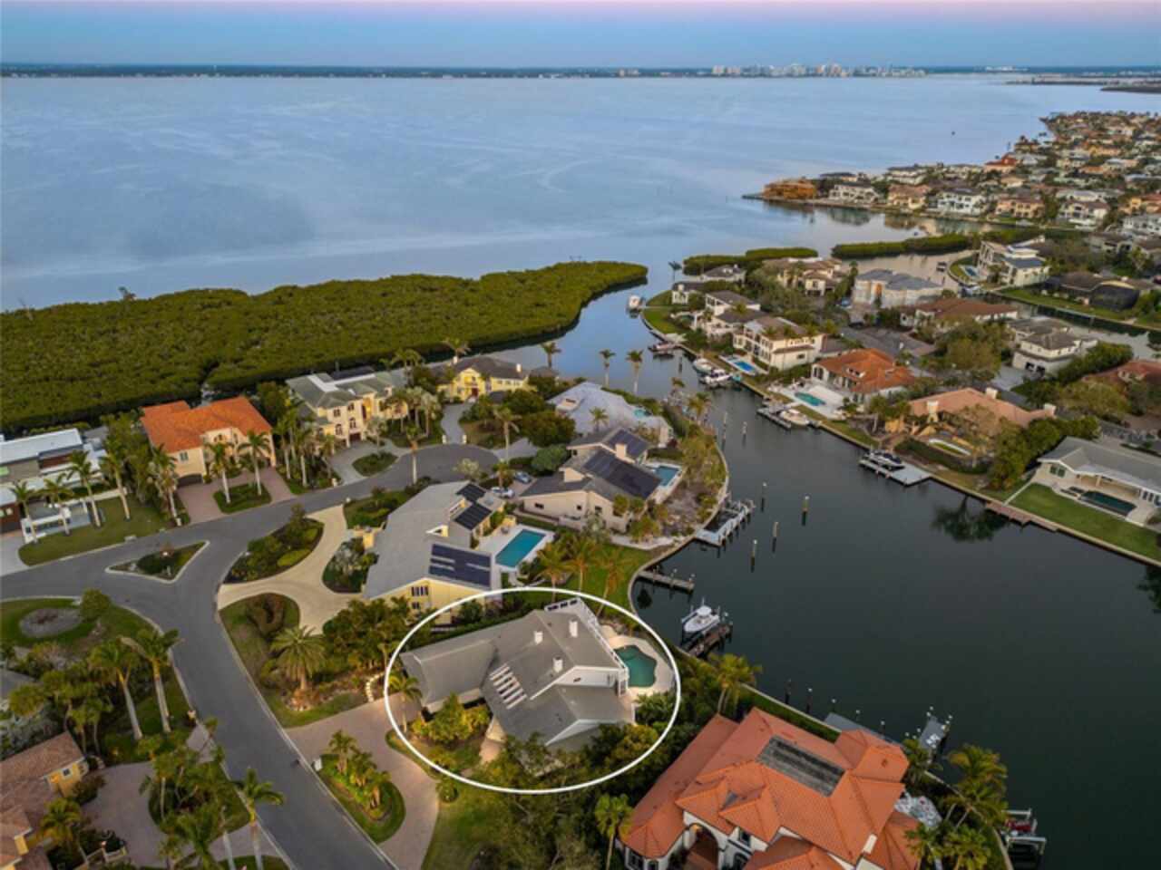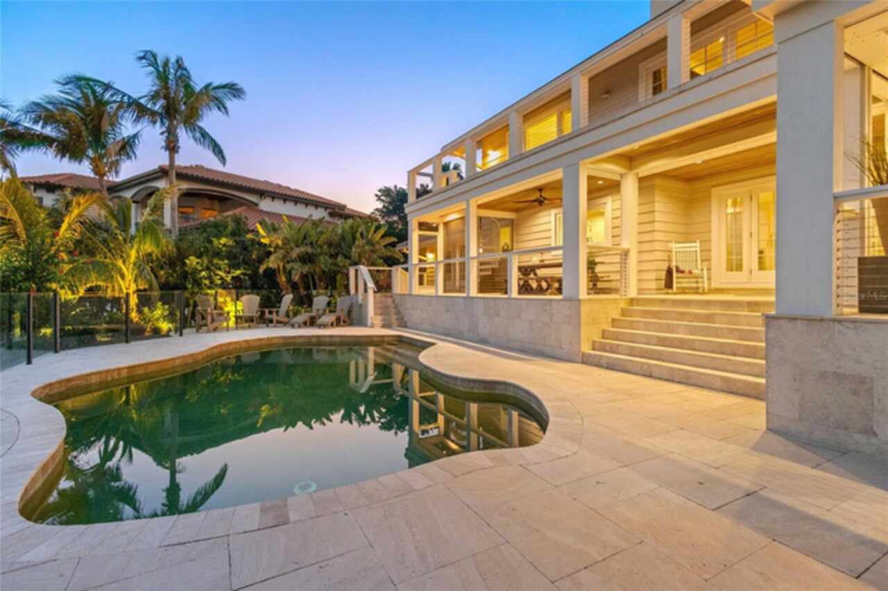 This exquisite two-story waterfront home located in the coveted Harbor section of Bay Isles has been meticulously renovated to embody modern elegance and luxurious coastal living. Surrounded by lush tropical landscaping, the home welcomes you through an elegant French door entrance into the grand foyer, where soaring ceilings, gleaming travertine flooring, and a striking wrought iron floating staircase with rich, dark wood steps set the tone for the refined elegance that unfolds throughout the home. The lower level boasts a bright and airy open space with hardwood floors throughout, creating a welcoming atmosphere that effortlessly combines sophistication with the timeless beauty of natural materials. The spacious family room is anchored by a stunning fireplace with decorative columns and an elegant mantel, complemented by French doors leading to the expansive waterfront lanai, reinforcing the home's seamless connection to its stunning natural surroundings. A culinary enthusiast’s dream, the generously sized kitchen features a large island with a waterfall granite countertop, custom cabinetry, ample storage space, and high-end stainless steel appliances, including a six-burner gas range and double ovens. Adjacent to the kitchen, the dining area and great room spaces flow seamlessly into each other. The great room is both grand and inviting, showcasing a dramatic wood-clad cathedral ceiling that adds warmth and character. A second stone fireplace enhances the ambiance, while three sets of French doors that open onto the lanai offer an effortless transition between indoor and outdoor living. Also on this level are two generous guest suites, each with a full bath, one with direct lanai access, and a den with full bath. Upstairs, the primary suite is a true retreat. Floor-to-ceiling windows illuminate the space, and French doors open to a spacious private balcony, offering captivating water views that create a peaceful escape. A cozy fireplace adds to the intimate atmosphere, while the spa-inspired en-suite bath indulges with marble flooring, soaking tub, dual vanities, frameless glass walk-in shower, and water closet, all overlooking the serene waterway. The outdoor living space is equally spectacular, designed for both relaxation and entertaining. The expansive lanai features multiple covered areas with a rich wood-clad ceiling and retractable screens, a sun-drenched open-air section, and a stunning saltwater pool with travertine decking framed by verdant tropical landscaping. Just beyond the pool, a private dock with a boat lift sits on a deep-water basin and wide canal with no bridges to Sarasota Bay, offering quick and direct access for boating enthusiasts. Bay Isles Beach Club membership is included. This extraordinary home seamlessly blends elegance, comfort, and the unparalleled beauty of waterfront living, creating a sanctuary that is as functional as it is breathtaking.