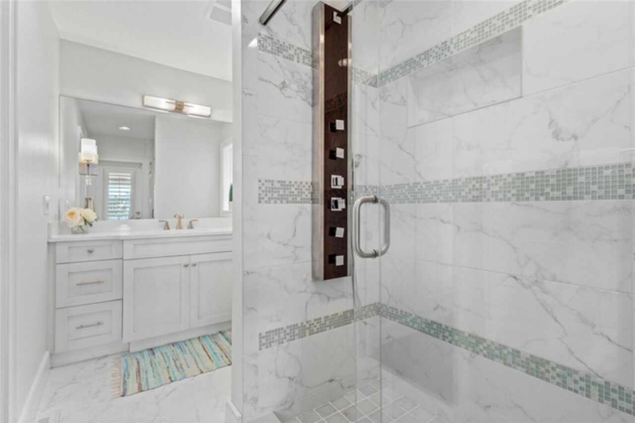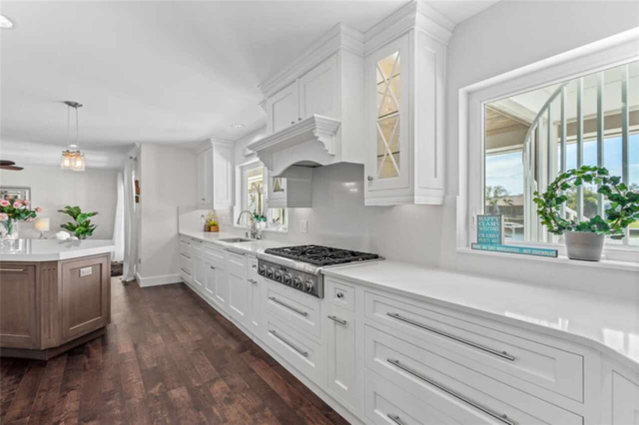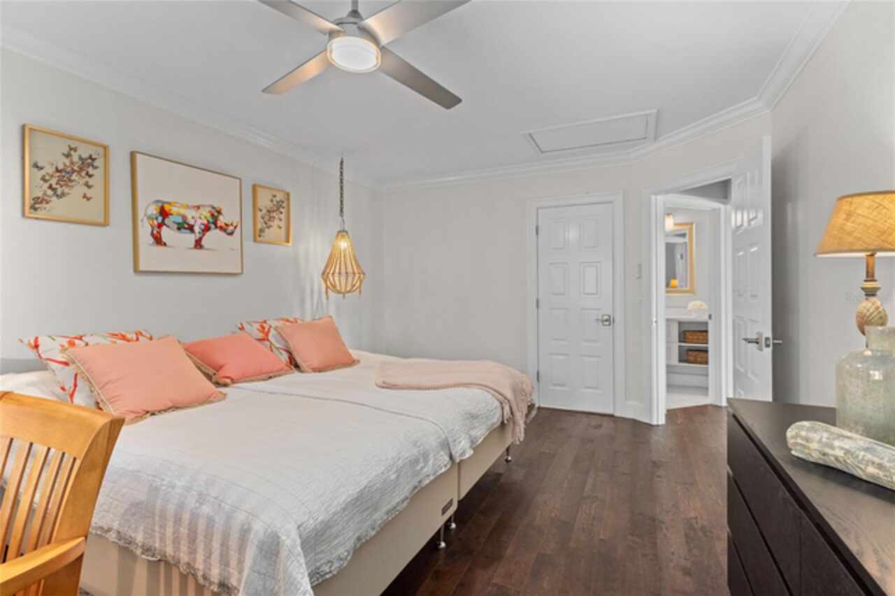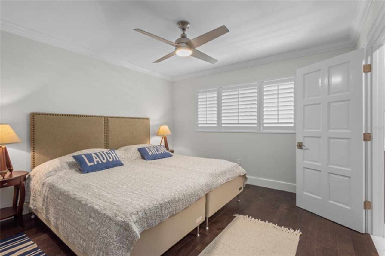 This exquisite two-story waterfront home located in the coveted Harbor section of Bay Isles has been meticulously renovated to embody modern elegance and luxurious coastal living. Surrounded by lush tropical landscaping, the home welcomes you through an elegant French door entrance into the grand foyer, where soaring ceilings, gleaming travertine flooring, and a striking wrought iron floating staircase with rich, dark wood steps set the tone for the refined elegance that unfolds throughout the home. The lower level boasts a bright and airy open space with hardwood floors throughout, creating a welcoming atmosphere that effortlessly combines sophistication with the timeless beauty of natural materials. The spacious family room is anchored by a stunning fireplace with decorative columns and an elegant mantel, complemented by French doors leading to the expansive waterfront lanai, reinforcing the home's seamless connection to its stunning natural surroundings. A culinary enthusiast’s dream, the generously sized kitchen features a large island with a waterfall granite countertop, custom cabinetry, ample storage space, and high-end stainless steel appliances, including a six-burner gas range and double ovens. Adjacent to the kitchen, the dining area and great room spaces flow seamlessly into each other. The great room is both grand and inviting, showcasing a dramatic wood-clad cathedral ceiling that adds warmth and character. A second stone fireplace enhances the ambiance, while three sets of French doors that open onto the lanai offer an effortless transition between indoor and outdoor living. Also on this level are two generous guest suites, each with a full bath, one with direct lanai access, and a den with full bath. Upstairs, the primary suite is a true retreat. Floor-to-ceiling windows illuminate the space, and French doors open to a spacious private balcony, offering captivating water views that create a peaceful escape. A cozy fireplace adds to the intimate atmosphere, while the spa-inspired en-suite bath indulges with marble flooring, soaking tub, dual vanities, frameless glass walk-in shower, and water closet, all overlooking the serene waterway. The outdoor living space is equally spectacular, designed for both relaxation and entertaining. The expansive lanai features multiple covered areas with a rich wood-clad ceiling and retractable screens, a sun-drenched open-air section, and a stunning saltwater pool with travertine decking framed by verdant tropical landscaping. Just beyond the pool, a private dock with a boat lift sits on a deep-water basin and wide canal with no bridges to Sarasota Bay, offering quick and direct access for boating enthusiasts. Bay Isles Beach Club membership is included. This extraordinary home seamlessly blends elegance, comfort, and the unparalleled beauty of waterfront living, creating a sanctuary that is as functional as it is breathtaking.