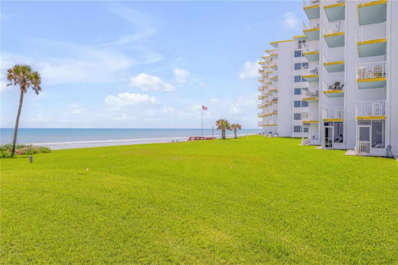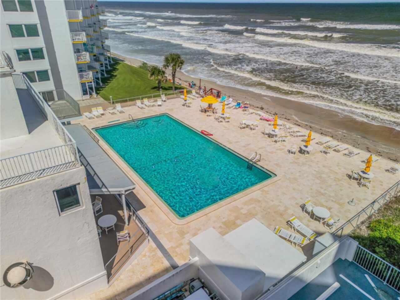 This direct oceanfront 2-bedroom, 2-bath condo is located on the no-drive beach in a gated community. Enjoy unobstructed ocean views that greet you every day. This fully furnished New Smyrna Beach condo comes with a range of community amenities, including tennis and pickleball courts, shuffleboard, a dog run, and a large seasonally heated pool with a clubhouse. Plus, you'll be just moments away from the shops and restaurants of historic Flagler Avenue and a nearby Publix shopping center.