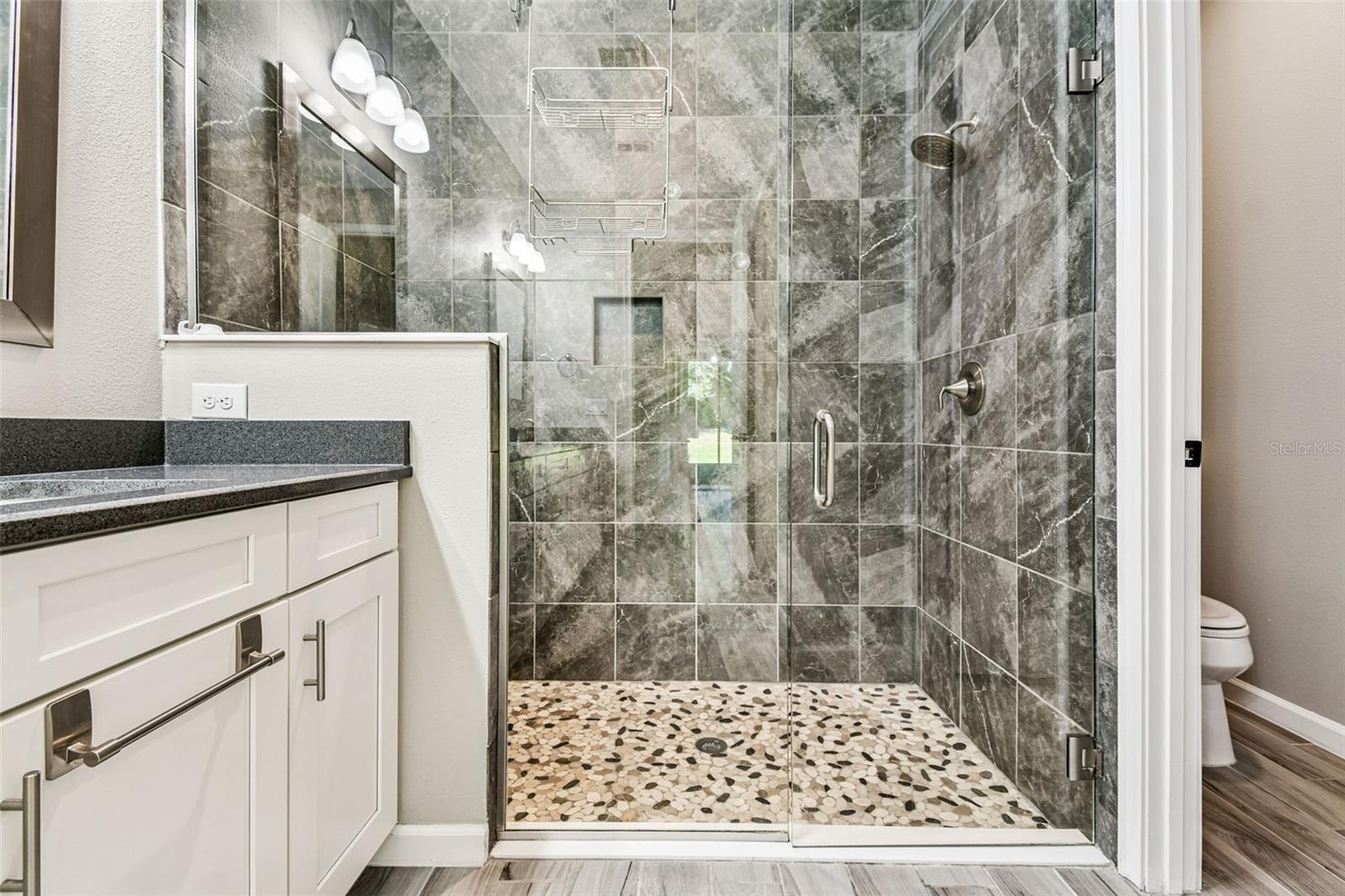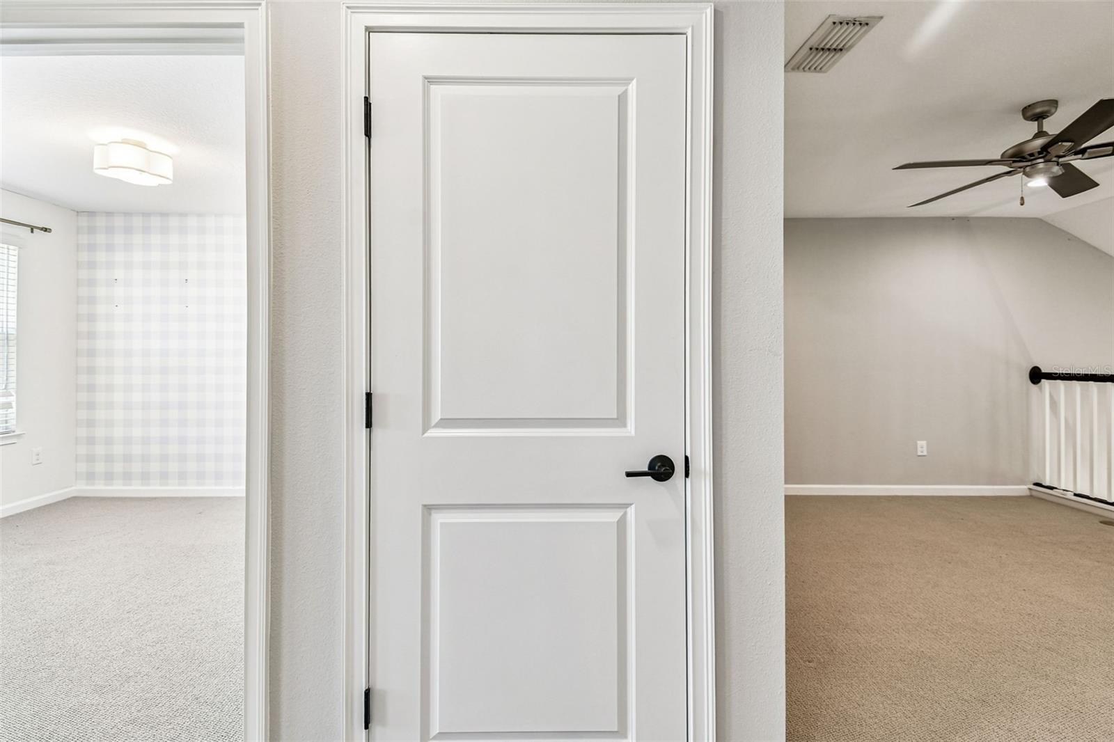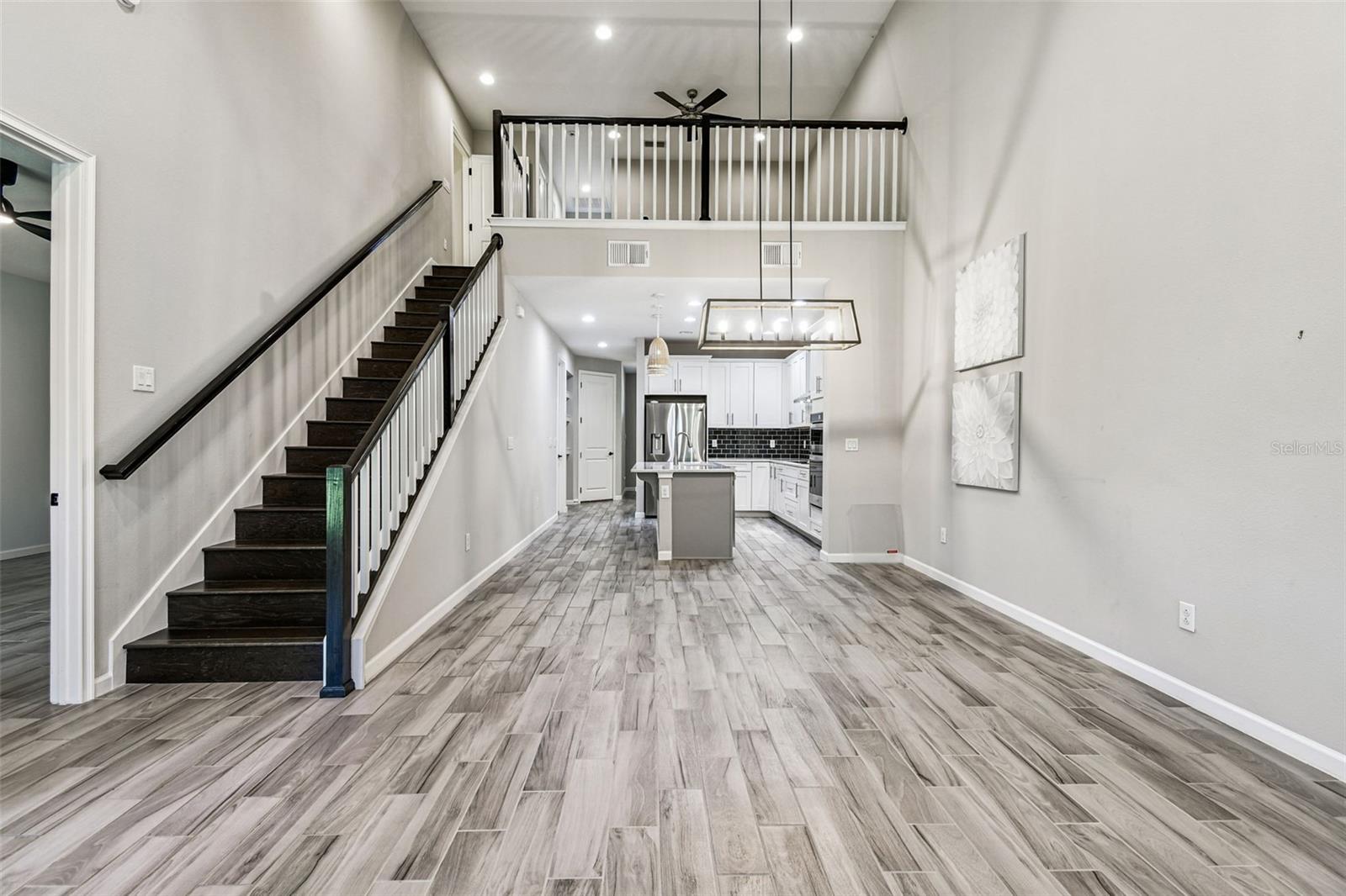 Luxurious and inviting, this Harmony at Lakewood Ranch residence blends contemporary design with effortless comfort. Featuring three elegant bedrooms, two and a half designer baths, and an expansive loft/bonus area with an enclosed storage room, this home was crafted for those who appreciate style and substance in every detail. Impeccable upgrades and refined finishes are found throughout. Soft grey tile flooring flows seamlessly through the open-concept main level, complemented by sleek quartz countertops, bright, custom cabinetry with soft-close drawers, and a timeless subway tile backsplash. The island kitchen is both functional and beautiful, offering the perfect space for casual dining or elegant entertaining. Striking two-story ceilings enhance the airy, light-filled living spaces, while modern fixtures and stainless-steel appliances add a touch of sophistication. The primary suite, conveniently located on the first floor, provides a private retreat with a spa-inspired bath, dual vanities, and a large walk-in shower with designer tilework. Upstairs, a spacious loft offers flexibility for a media lounge, home office, or fitness area, alongside two generously sized bedrooms and a full bath. Additional features include a hardwood staircase, epoxy-coated garage flooring, and a screened paver lanai—perfect for enjoying serene evenings outdoors. Set within the sought-after community of Harmony at Lakewood Ranch, residents enjoy resort-style amenities including a sparkling pool, fitness center, clubhouse, and playground. With beautifully maintained landscaping, affordable HOA dues, and proximity to premier dining, shopping, parks, and top-rated schools, this home captures the essence of modern luxury living in Lakewood Ranch.