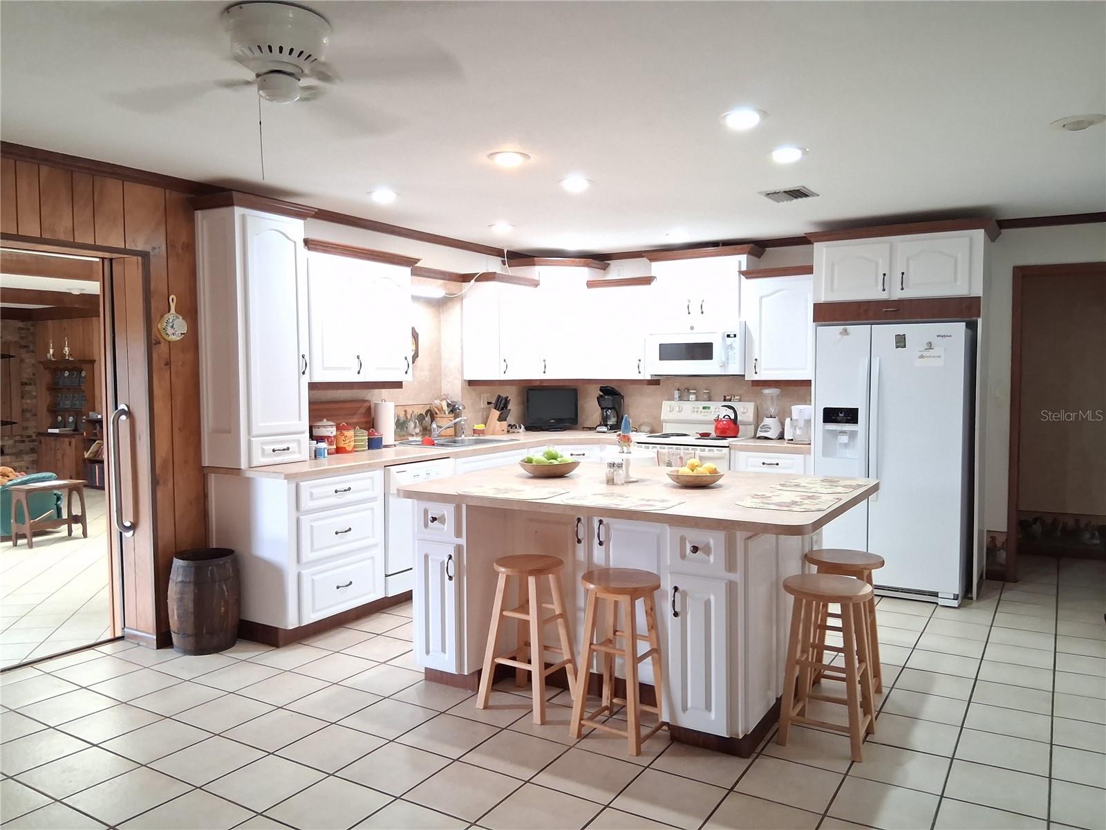 NO HOA, 2512 Sq Ft Block and Brick home with 4 Bedrooms and 2 Bath, has Wood Burning Fireplace in Great Room. Room for RV / Boat large Double Gated Fenced entry to paved driveway that goes back to Detached Garage. Detached Block Workshop / Master Garage 27' x 36' with double garage doors, great for small business or workshop with Attached 2 car carport. Generator included with hook up to main home electrical panel to power need items during outage. Home also has two Central A/C 1 for main part of home and 1 for 26 x 32 Great room. Great Room has wood burning fireplace sliding door to patio and exterior door to driveway. There is a 3rd A/C unit behind the Workshop used by previous owners. Master Bedroom has attached Master Bath with walk-in shower and sliding doors to outside screen room. Screen room has a pet door to fenced pet kennel / dog run. Updated Kitchen with large center island w/breakfast bar, lots of counters and cabinet space. Kitchen has sliding glass pocket door into Great Room. New side-by-side refrigerator and new over stove microwave. Extra Storage Shed, Fire Pit, Roof 7 years old, Septic cleaned out 2024.
