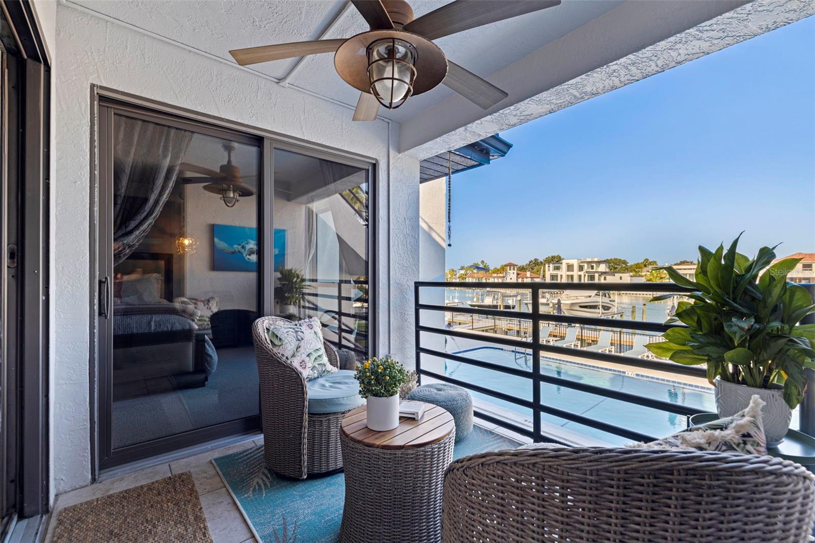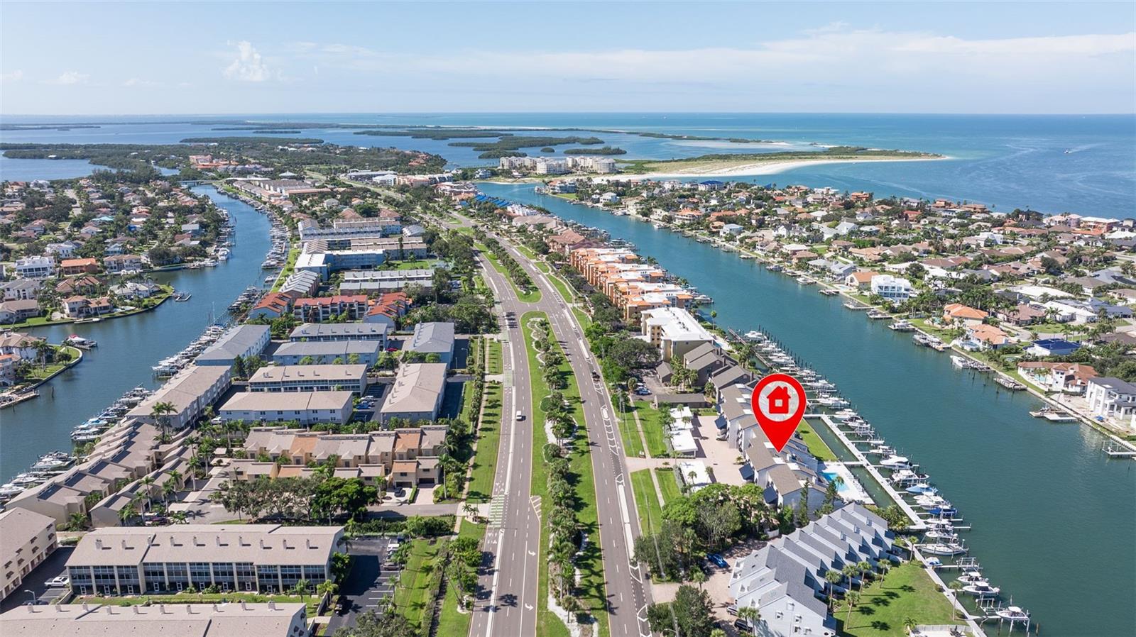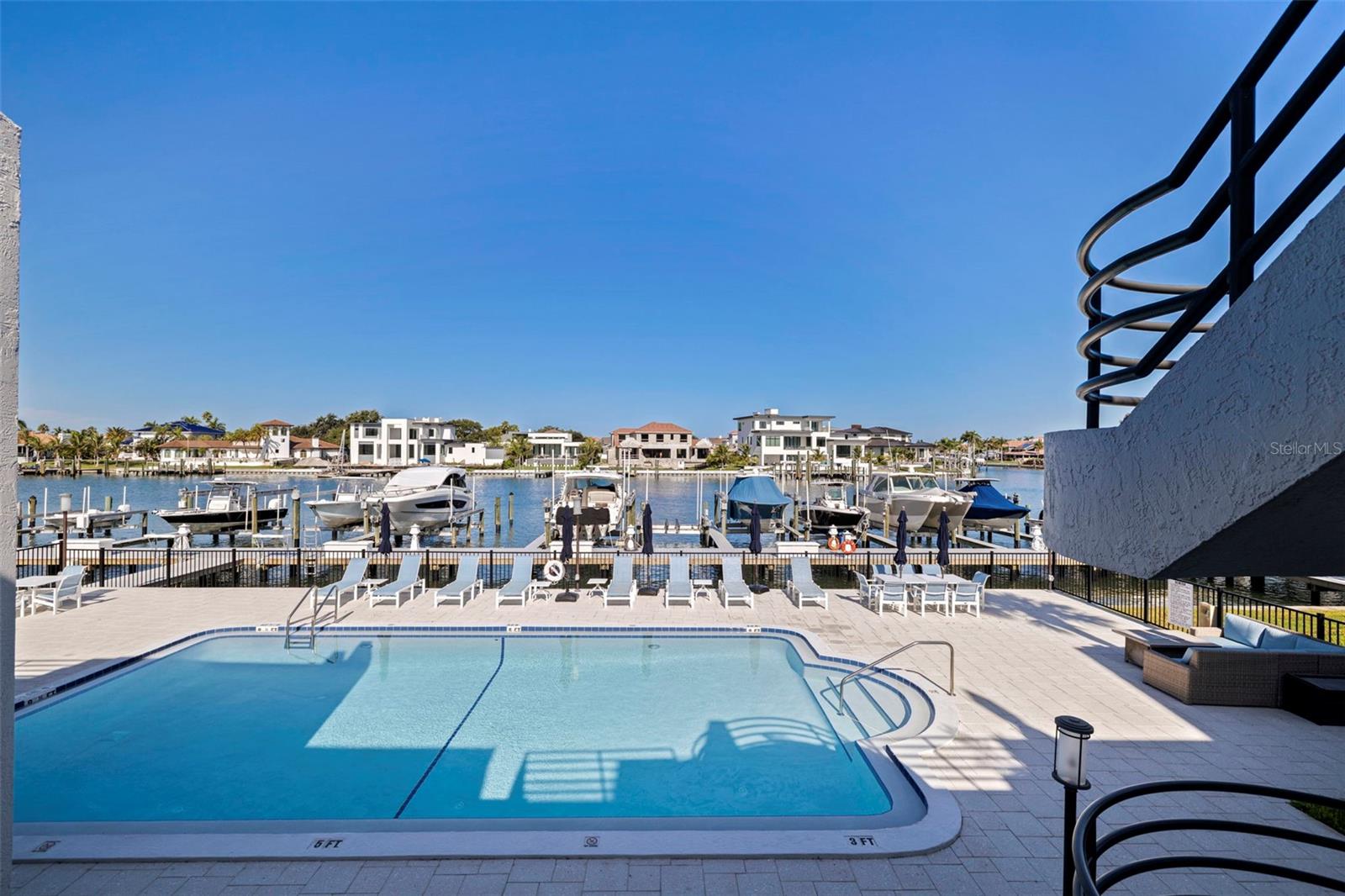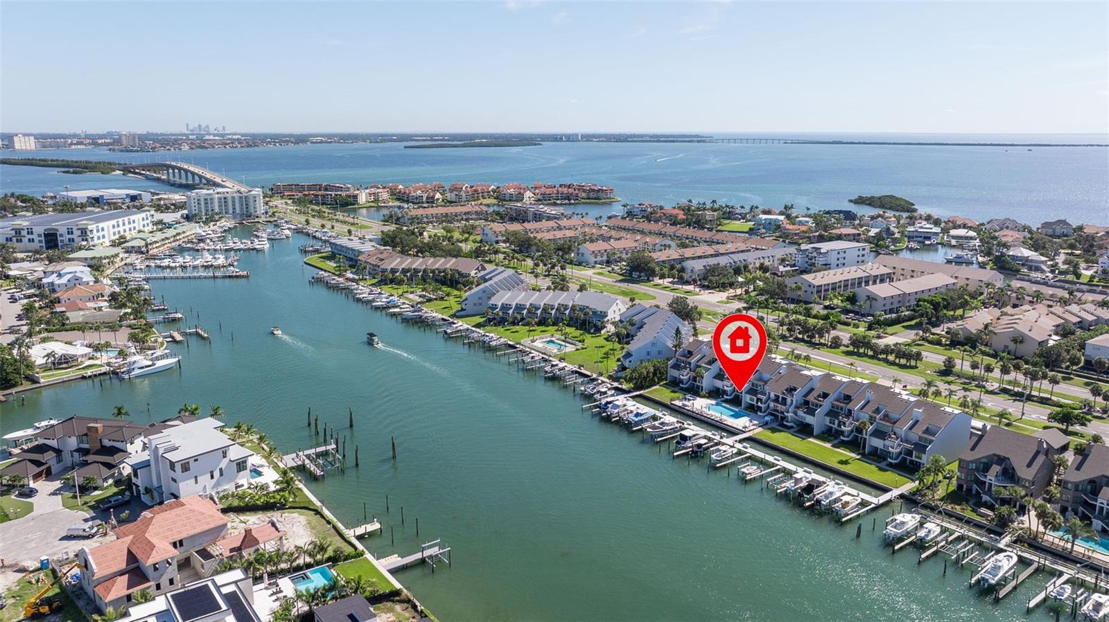 Coming home every evening to magical sunsets over Tierra Verde’s Grand Canal — this is the waterfront lifestyle you’ve been dreaming about. Spacious, open, and thoughtfully designed, this 2-bedroom, 2-bath condo offers effortless coastal living in a vibrant, welcoming community. The friendly entry with inviting porch greets you even before you step inside, showcasing the warmth of island life. As you enter, the elegant coastal-inspired kitchen on your right features soft blue cabinetry, quartz counters, and a breakfast bar with seating for casual dining. On the left, the dining area includes a custom built-in wood bar and beverage fridge — perfect for serving to the dining table next to and entertaining guests. The tiled living area flows naturally with space for your sofa and TV while overlooking the balcony and sparkling Grand Canal, with a private back door entry staircase down to the heated pool for added convenience. The primary suite is a true resort-style retreat with sweeping water views, custom lighting, an oversized walk-in closet, two separate vanities, and a fabulous spa-like walk-in shower. The guest bedroom, enjoys ample daylight, a spacious walk-in closet, and an updated bath. Full-size side-by-side washer and dryer plus additional large storage room downstairs with new water softener to complete the unit. Easy to maintain and lock-and-leave, it’s perfect for full-time living or as a second home. 2 assigned parking spots plus available guest parking spots in this waterfront, pet friendly, freshly painted and landscaped community. Featured amenities include a recently updated pool and fitness center. Enjoy waking or biking: designated bike and walk trail along Pinellas Bayway or downtown Tierra Verde, which offers several island restaurants. Scenic walk or ride across the bridge brings you to Isla del Sol Golf and Country Club. with close proximity to Fort De Soto Park and best local beaches, only 10 mins to Downtown St. Pete, and 40 mins to Tampa International Airport. Complete your lifestyle package with the deeded boat slip and 13, 000 lb lift. Furniture is optional, and the boat can be included— simply make an offer.