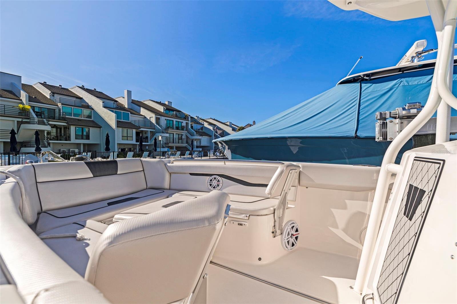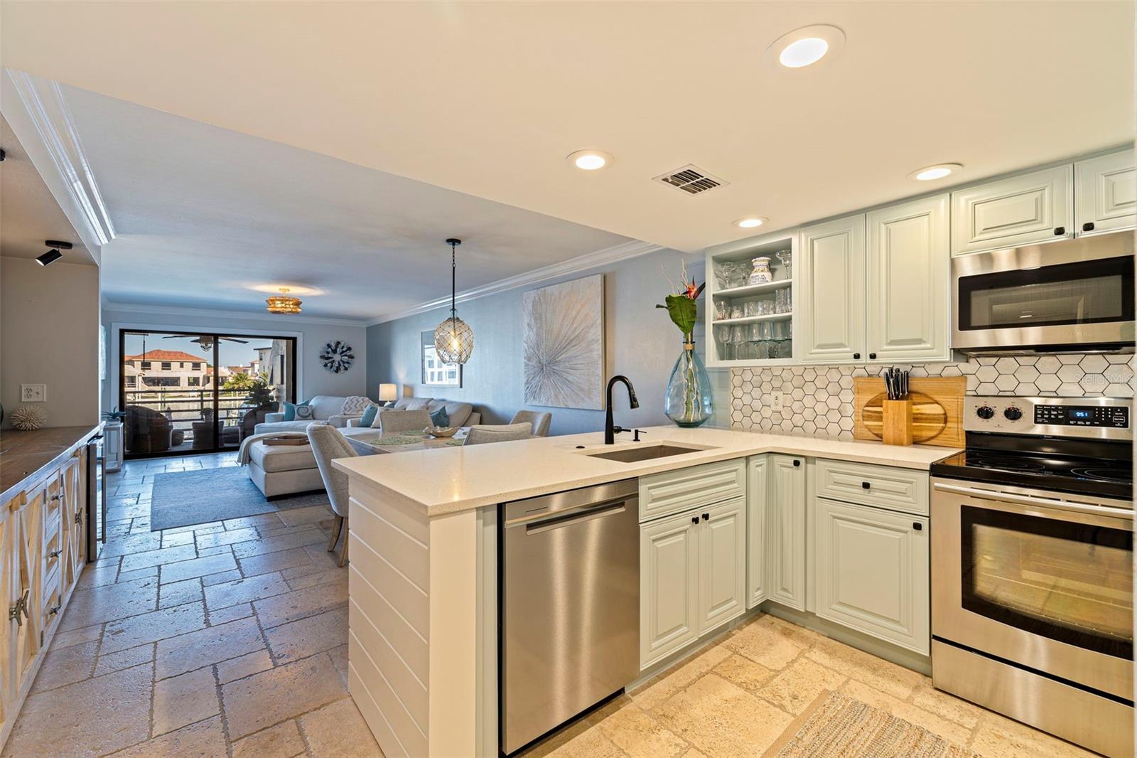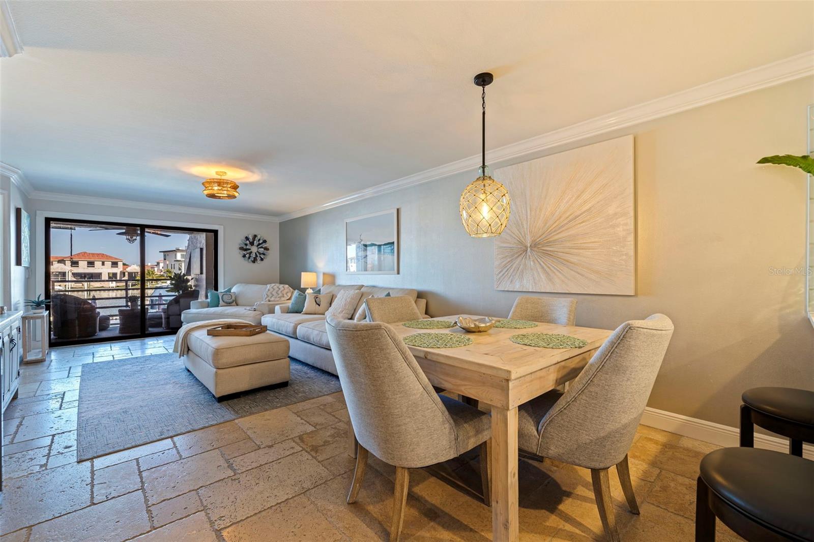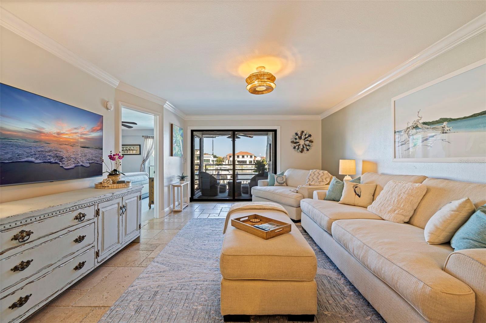 Coming home every evening to magical sunsets over Tierra Verde’s Grand Canal — this is the waterfront lifestyle you’ve been dreaming about. Spacious, open, and thoughtfully designed, this 2-bedroom, 2-bath condo offers effortless coastal living in a vibrant, welcoming community. The friendly entry with inviting porch greets you even before you step inside, showcasing the warmth of island life. As you enter, the elegant coastal-inspired kitchen on your right features soft blue cabinetry, quartz counters, and a breakfast bar with seating for casual dining. On the left, the dining area includes a custom built-in wood bar and beverage fridge — perfect for serving to the dining table next to and entertaining guests. The tiled living area flows naturally with space for your sofa and TV while overlooking the balcony and sparkling Grand Canal, with a private back door entry staircase down to the heated pool for added convenience. The primary suite is a true resort-style retreat with sweeping water views, custom lighting, an oversized walk-in closet, two separate vanities, and a fabulous spa-like walk-in shower. The guest bedroom, enjoys ample daylight, a spacious walk-in closet, and an updated bath. Full-size side-by-side washer and dryer plus additional large storage room downstairs with new water softener to complete the unit. Easy to maintain and lock-and-leave, it’s perfect for full-time living or as a second home. 2 assigned parking spots plus available guest parking spots in this waterfront, pet friendly, freshly painted and landscaped community. Featured amenities include a recently updated pool and fitness center. Enjoy waking or biking: designated bike and walk trail along Pinellas Bayway or downtown Tierra Verde, which offers several island restaurants. Scenic walk or ride across the bridge brings you to Isla del Sol Golf and Country Club. with close proximity to Fort De Soto Park and best local beaches, only 10 mins to Downtown St. Pete, and 40 mins to Tampa International Airport. Complete your lifestyle package with the deeded boat slip and 13, 000 lb lift. Furniture is optional, and the boat can be included— simply make an offer.