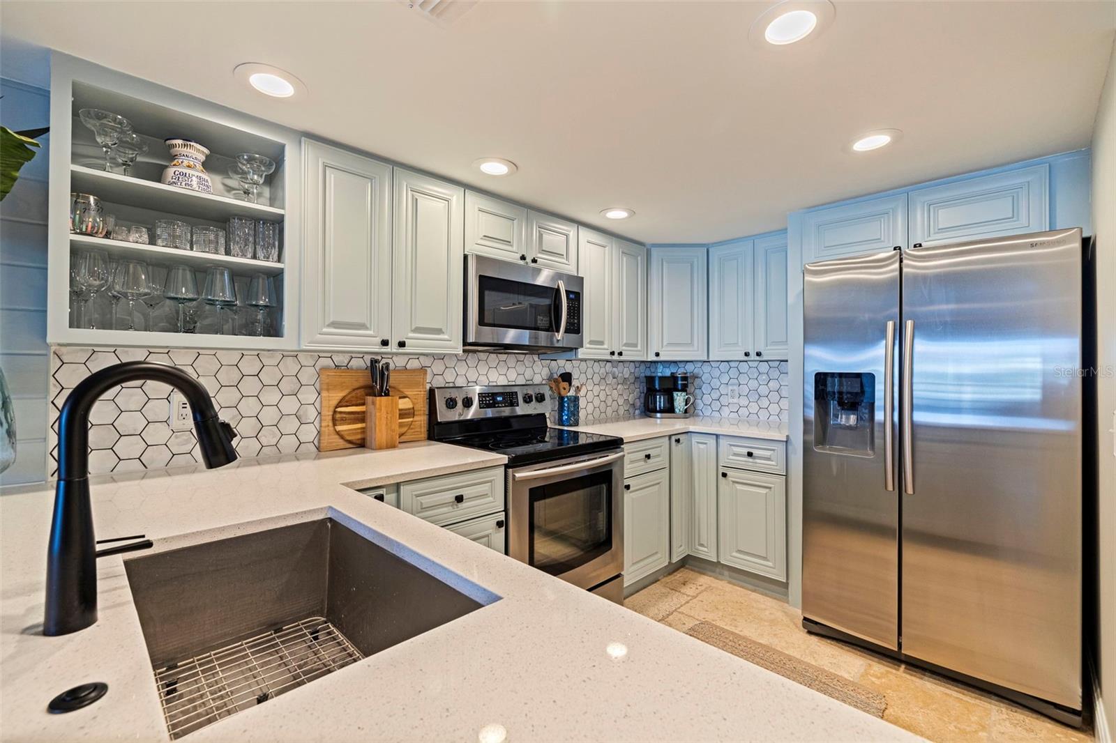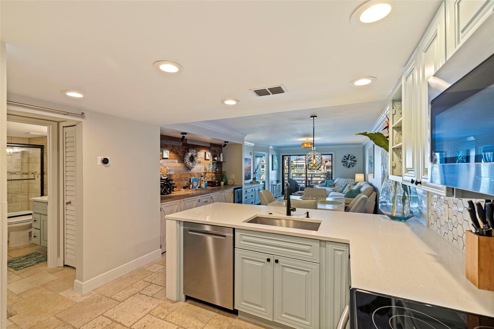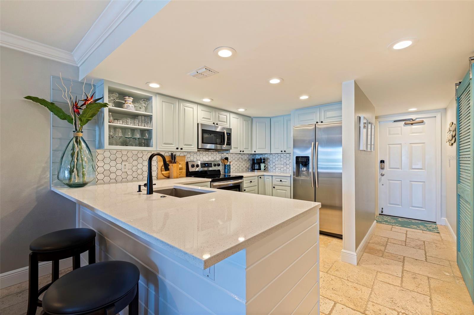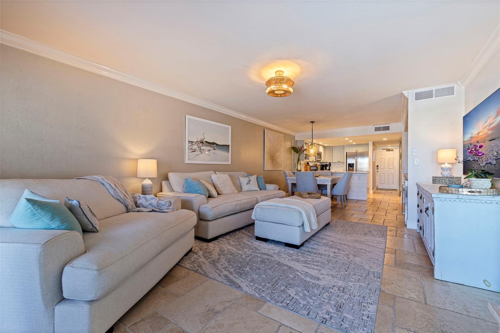 Coming home every evening to magical sunsets over Tierra Verde’s Grand Canal — this is the waterfront lifestyle you’ve been dreaming about. Spacious, open, and thoughtfully designed, this 2-bedroom, 2-bath condo offers effortless coastal living in a vibrant, welcoming community. The friendly entry with inviting porch greets you even before you step inside, showcasing the warmth of island life. As you enter, the elegant coastal-inspired kitchen on your right features soft blue cabinetry, quartz counters, and a breakfast bar with seating for casual dining. On the left, the dining area includes a custom built-in wood bar and beverage fridge — perfect for serving to the dining table next to and entertaining guests. The tiled living area flows naturally with space for your sofa and TV while overlooking the balcony and sparkling Grand Canal, with a private back door entry staircase down to the heated pool for added convenience. The primary suite is a true resort-style retreat with sweeping water views, custom lighting, an oversized walk-in closet, two separate vanities, and a fabulous spa-like walk-in shower. The guest bedroom, enjoys ample daylight, a spacious walk-in closet, and an updated bath. Full-size side-by-side washer and dryer plus additional large storage room downstairs with new water softener to complete the unit. Easy to maintain and lock-and-leave, it’s perfect for full-time living or as a second home. 2 assigned parking spots plus available guest parking spots in this waterfront, pet friendly, freshly painted and landscaped community. Featured amenities include a recently updated pool and fitness center. Enjoy waking or biking: designated bike and walk trail along Pinellas Bayway or downtown Tierra Verde, which offers several island restaurants. Scenic walk or ride across the bridge brings you to Isla del Sol Golf and Country Club. with close proximity to Fort De Soto Park and best local beaches, only 10 mins to Downtown St. Pete, and 40 mins to Tampa International Airport. Complete your lifestyle package with the deeded boat slip and 13, 000 lb lift. Furniture is optional, and the boat can be included— simply make an offer.