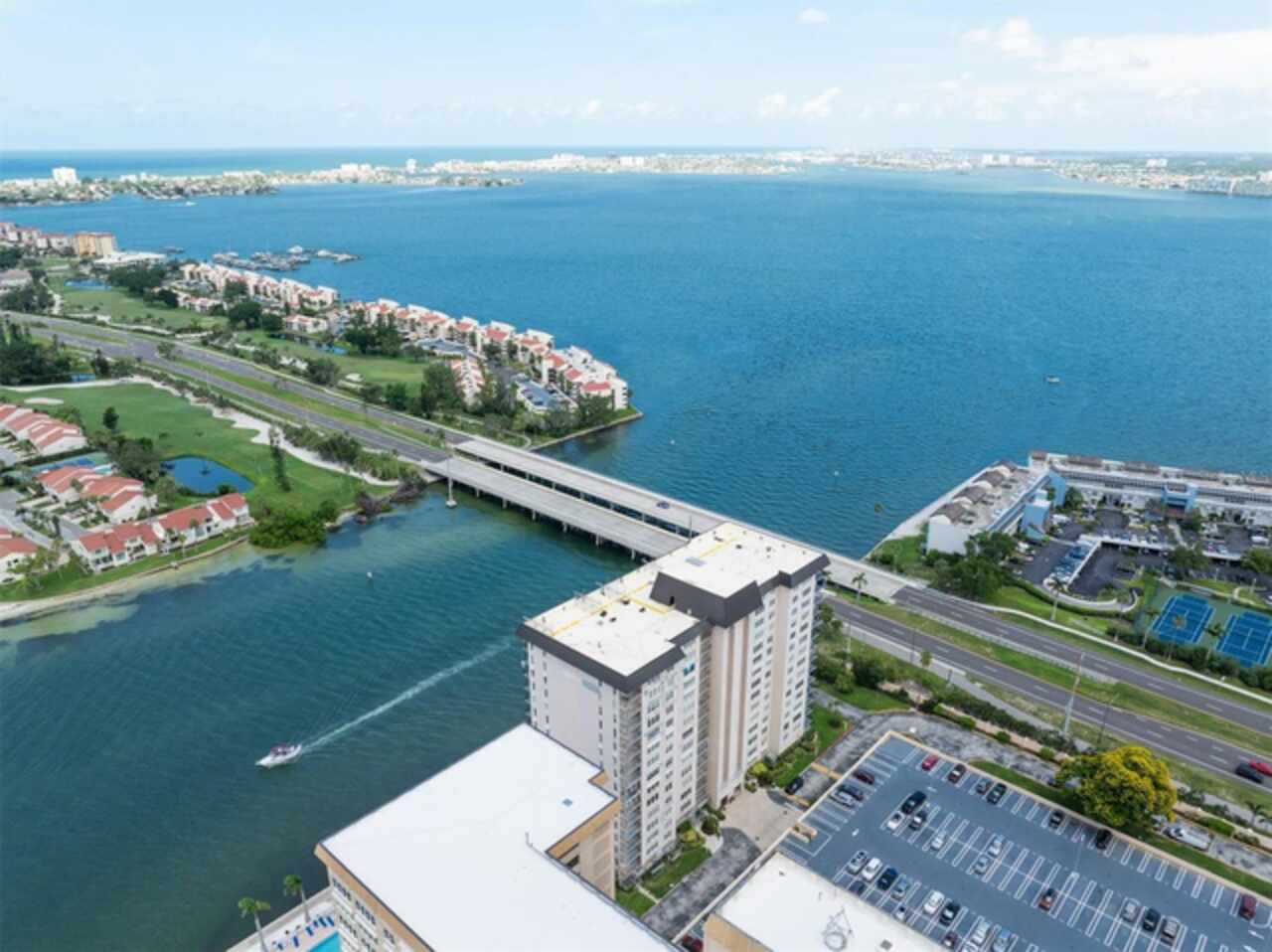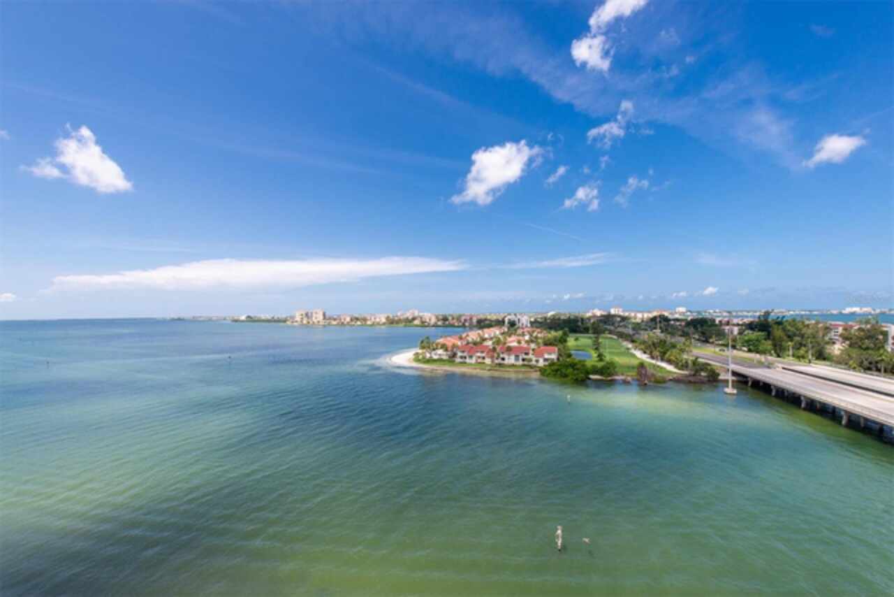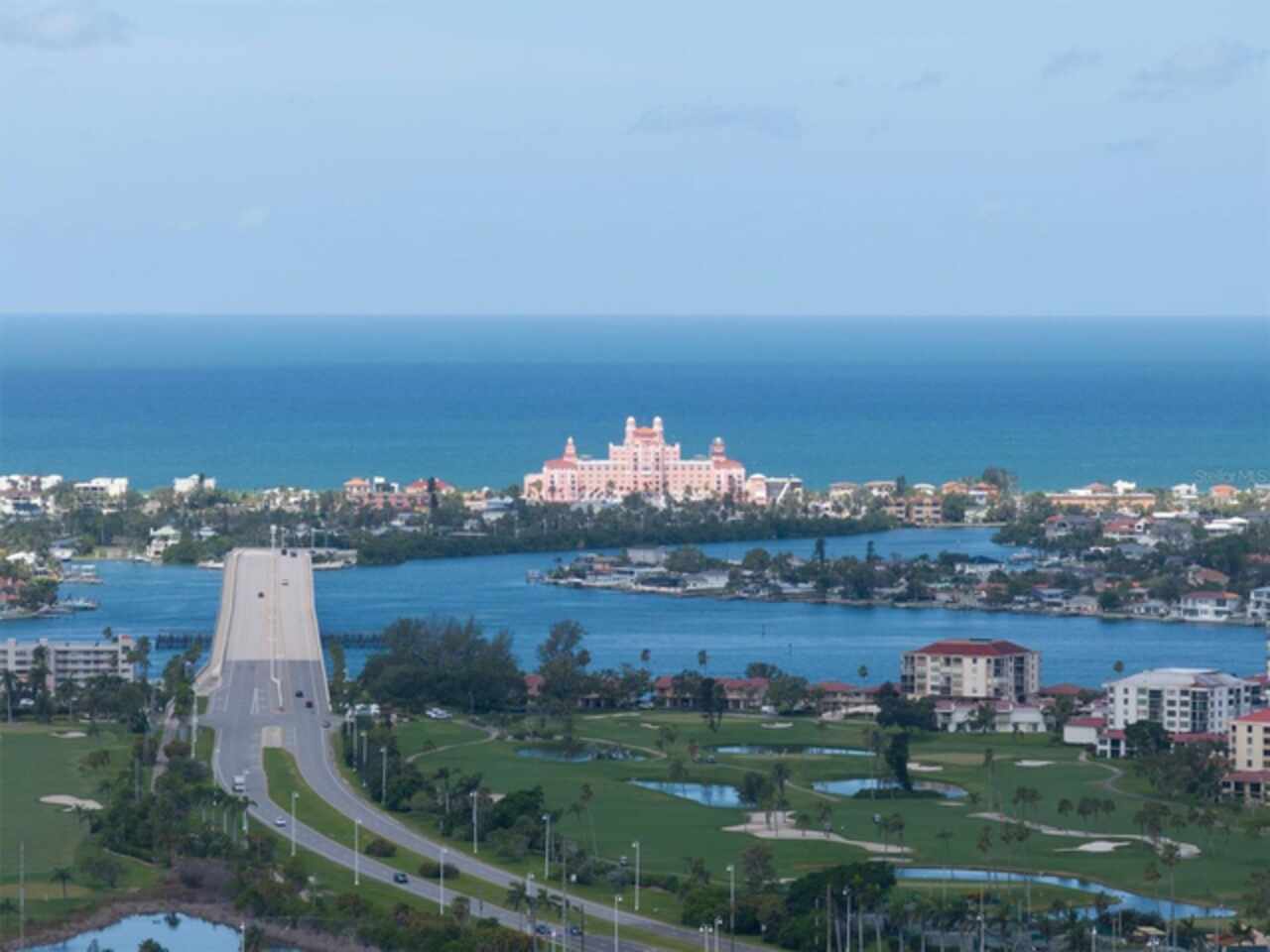 Under contract-accepting backup offers. An immaculately remodeled 2/2 condo with breath taking views in the highly desirable Bayway Isles of Point Brittany. Bayway Isles is one of the top 55+ waterfront communities in the bay area in a perfect location. Stunning water views from your private balcony, both bedrooms and the living room. Water views of the Intracoastal, Boca Ciega Bay, the Don Cesar and the Gulf. Very peaceful with picturesque sunsets facing west. The unit also overlooks Isla Del Sol Yacht & Country Club. Isla is a first class golf club and course with stunning water views throughout your round. This is an open concept condo with living, dining, and kitchen completely opened up with split bedrooms on each side of the unit. A beautifully remodeled condo with new gorgeous marble flooring throughout. The kitchen was updated with scratch resistant quartz countertops and island with black splash and all new appliances including built in microwave, range, and refrigerator. New shaker cabinets in kitchen and bathrooms. Both bedrooms have walk in closets providing lots of storage in the condo, there is also an additional storage space in the storage room that comes with the unit. The bathrooms are exquisitely done with new vanities, marble floors, showers and tiling with all new fixtures and toilets. New touch mirrors with led lights help illuminate the area, especially great for applying makeup. A superior soundproofing underlayment was used for all flooring to limit any noise within your unit and your neighbors below. There are new fans and light fixtures throughout the condo giving a sleek feel to all of the upgrades that were utilized. You truly don’t need to do a thing for this unit. This is resort living at its finest with endless amenities and views. Beautiful walking trail on the intracoastal with fishing piers and boat slips if available on a first come first serve basis. Many social activities with the clubhouse, an impressive fitness room, yoga studio, poker, billiards, arts and craft room with classes, and a library. There are multiple impressive rooms available to host parties and functions. Outdoor activities include waterfront pools with access to all four of them and hot tubs. Heated pools give access year round to enjoy. Separate saunas are available for men and women. Scenic community pavilion on the water with grills and plenty of space to soak everything in. There are tennis courts, pickleball, and shuffleboard courts to keep you active as well. There is even a kayak storage and launch area to fully immerse yourself in the waterfront community. Monthly fees include everything and I mean everything in this well run and funded building. Escrow Reserves Fund, Fidelity Bond, Insurance, Cable TV and internet, sewer, trash and water, common area taxes, community pool, pool maintenance, common area taxes, maintenance grounds, maintenance exterior, maintenance repairs, pest control, security, and recreational facilities. The location is perfect with easy access to Ft. Desoto, St. Pete Beach and within 10 minutes of downtown St. Pete. The highway is only 1 mile away which gives you easy access to get to anywhere in the bay area. The area is surrounded by shops and professional services. Have the best of all worlds in our area from the beaches to the vibrant downtown packed with restaurants, museums, the pier and ongoing activities. When you go out to eat you only have to choose which view of water you want, the Gulf or The Bay.