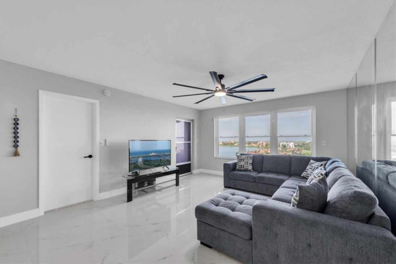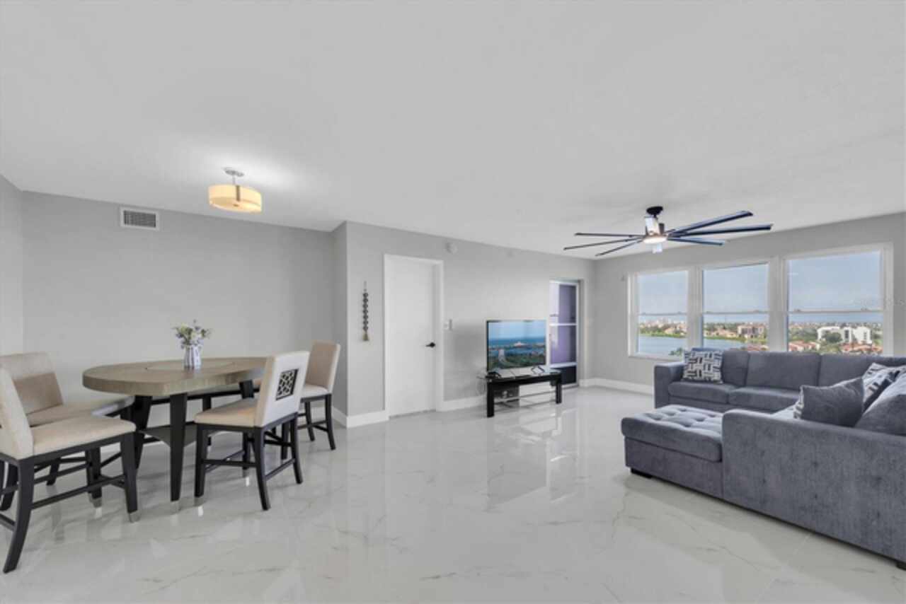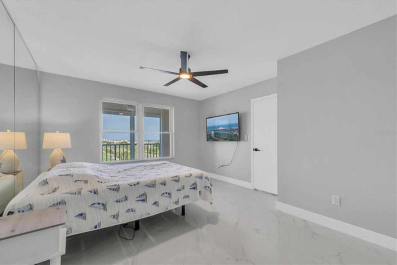 Under contract-accepting backup offers. An immaculately remodeled 2/2 condo with breath taking views in the highly desirable Bayway Isles of Point Brittany. Bayway Isles is one of the top 55+ waterfront communities in the bay area in a perfect location. Stunning water views from your private balcony, both bedrooms and the living room. Water views of the Intracoastal, Boca Ciega Bay, the Don Cesar and the Gulf. Very peaceful with picturesque sunsets facing west. The unit also overlooks Isla Del Sol Yacht & Country Club. Isla is a first class golf club and course with stunning water views throughout your round. This is an open concept condo with living, dining, and kitchen completely opened up with split bedrooms on each side of the unit. A beautifully remodeled condo with new gorgeous marble flooring throughout. The kitchen was updated with scratch resistant quartz countertops and island with black splash and all new appliances including built in microwave, range, and refrigerator. New shaker cabinets in kitchen and bathrooms. Both bedrooms have walk in closets providing lots of storage in the condo, there is also an additional storage space in the storage room that comes with the unit. The bathrooms are exquisitely done with new vanities, marble floors, showers and tiling with all new fixtures and toilets. New touch mirrors with led lights help illuminate the area, especially great for applying makeup. A superior soundproofing underlayment was used for all flooring to limit any noise within your unit and your neighbors below. There are new fans and light fixtures throughout the condo giving a sleek feel to all of the upgrades that were utilized. You truly don’t need to do a thing for this unit. This is resort living at its finest with endless amenities and views. Beautiful walking trail on the intracoastal with fishing piers and boat slips if available on a first come first serve basis. Many social activities with the clubhouse, an impressive fitness room, yoga studio, poker, billiards, arts and craft room with classes, and a library. There are multiple impressive rooms available to host parties and functions. Outdoor activities include waterfront pools with access to all four of them and hot tubs. Heated pools give access year round to enjoy. Separate saunas are available for men and women. Scenic community pavilion on the water with grills and plenty of space to soak everything in. There are tennis courts, pickleball, and shuffleboard courts to keep you active as well. There is even a kayak storage and launch area to fully immerse yourself in the waterfront community. Monthly fees include everything and I mean everything in this well run and funded building. Escrow Reserves Fund, Fidelity Bond, Insurance, Cable TV and internet, sewer, trash and water, common area taxes, community pool, pool maintenance, common area taxes, maintenance grounds, maintenance exterior, maintenance repairs, pest control, security, and recreational facilities. The location is perfect with easy access to Ft. Desoto, St. Pete Beach and within 10 minutes of downtown St. Pete. The highway is only 1 mile away which gives you easy access to get to anywhere in the bay area. The area is surrounded by shops and professional services. Have the best of all worlds in our area from the beaches to the vibrant downtown packed with restaurants, museums, the pier and ongoing activities. When you go out to eat you only have to choose which view of water you want, the Gulf or The Bay.