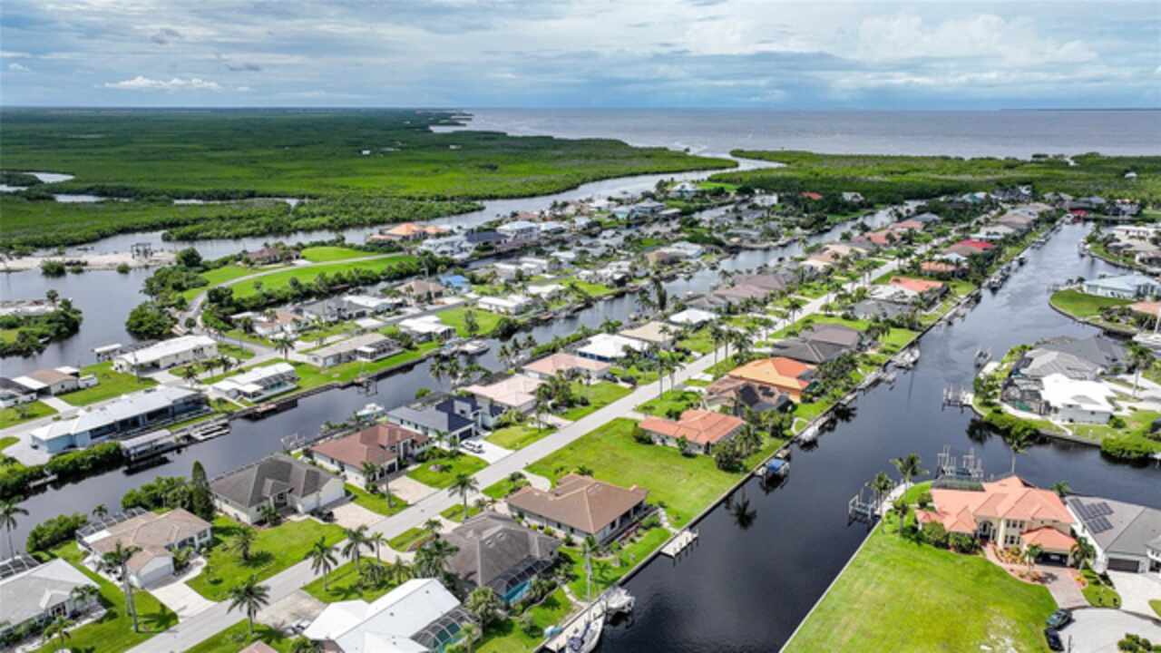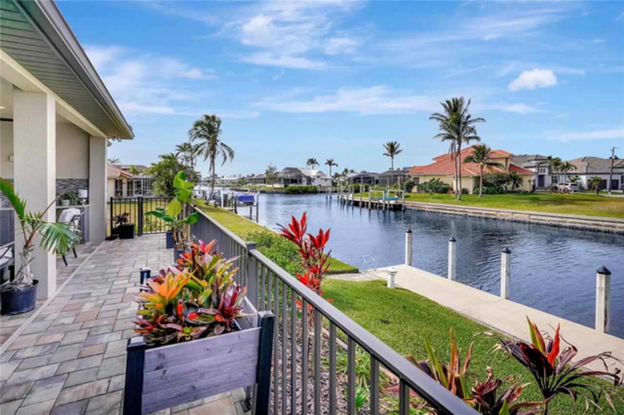 Waterfront living meets modern Florida design in this Gulf-access home in Punta Gorda Isles with no bridges and quick access to Charlotte Harbor and the Gulf of Mexico. Built in 2021, this 3-bedroom, 3-bath property features a bright open floor plan, high ceilings, impact-resistant windows and doors, and elegant finishes throughout. The chef-style kitchen opens to the great room with pocketing sliding glass doors that create seamless indoor-outdoor living. Enjoy year-round entertaining on the 57-foot screened lanai with wet bar plumbing, roll-down privacy shades, designer lighting, and wiring for a jacuzzi or outdoor kitchen. The home sits on an 80-foot seawall and includes a 30' x 10' concrete dock, making it ideal for fishing, boating, and sunset cruising. The luxury primary suite offers long water views, a walk-in closet, and double-sink vanity bath. Additional features include energy-efficient construction, tile roof, oversized garage storage, and tropical landscaping. Located PGI, this home offers direct boating access, no HOA fees, and convenient proximity to downtown Punta Gorda, Fishermen’s Village, waterfront parks, and dining. Experience waterfront living with comfort, quality, and style—this is where Florida lifestyle begins.