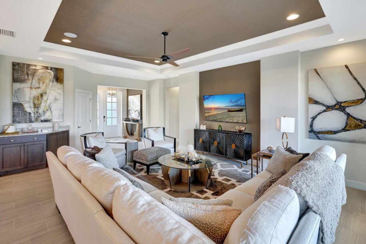 Ceiling Fans(s), High Ceilings, Open Floorplan, Primary Bedroom Main Floor, Split Bedroom, Stone Counters, Thermostat, Tray Ceiling(s), Walk-In Closet(s), Window Treatments