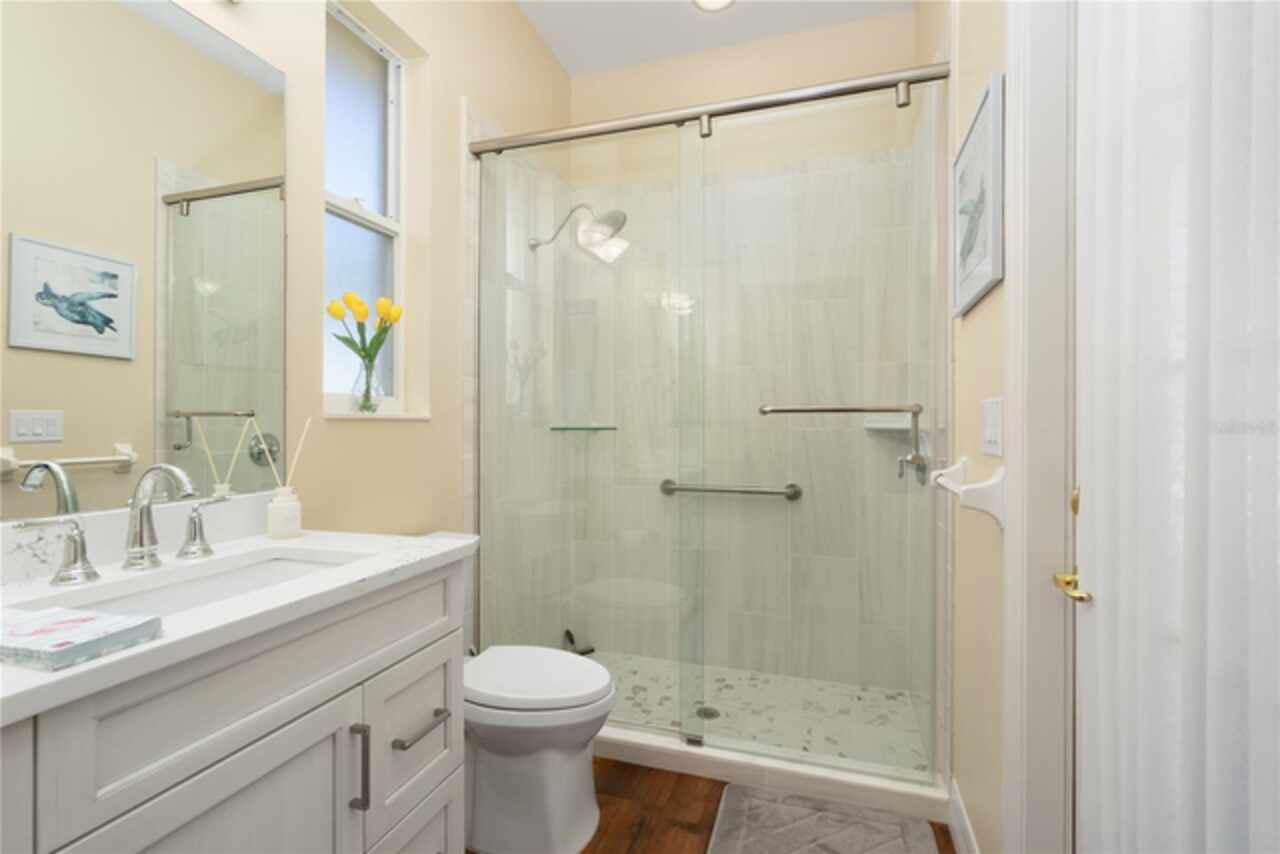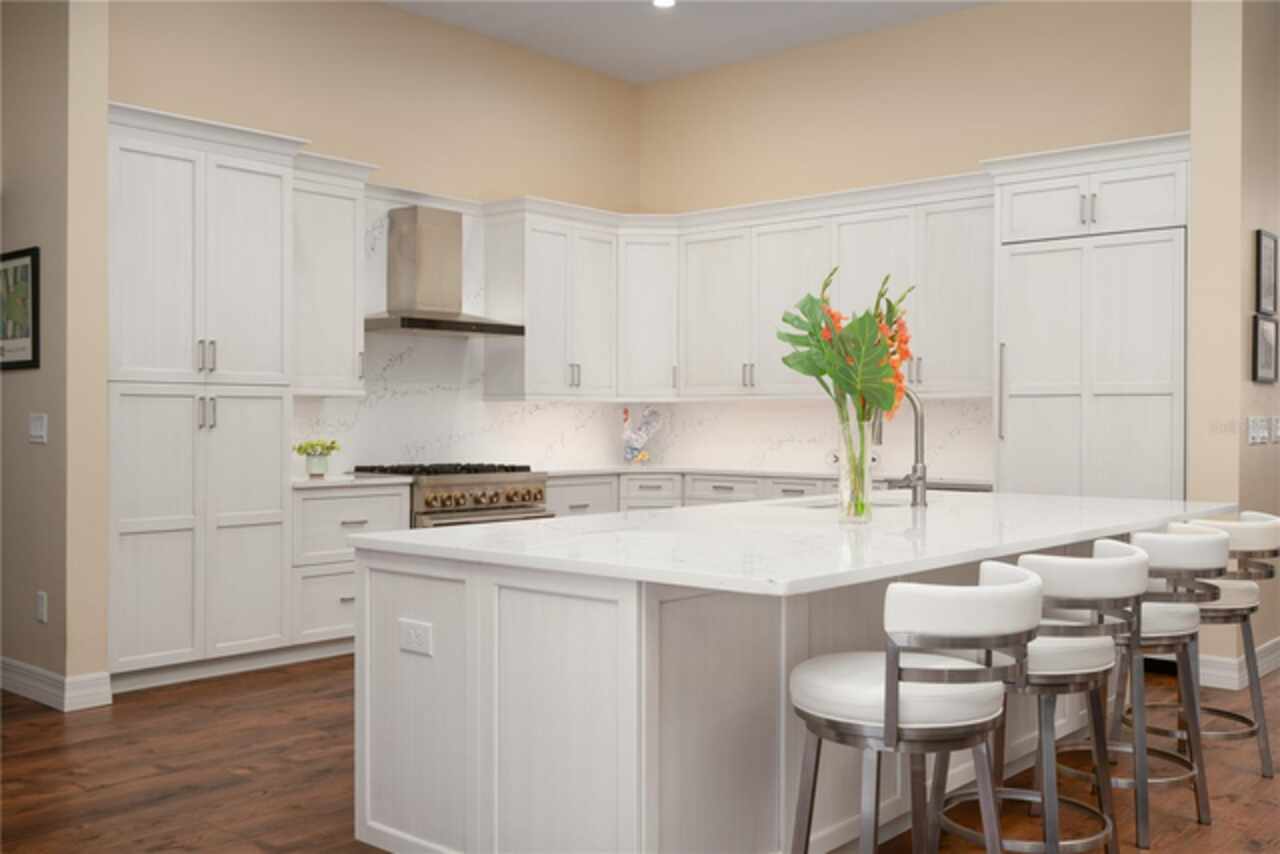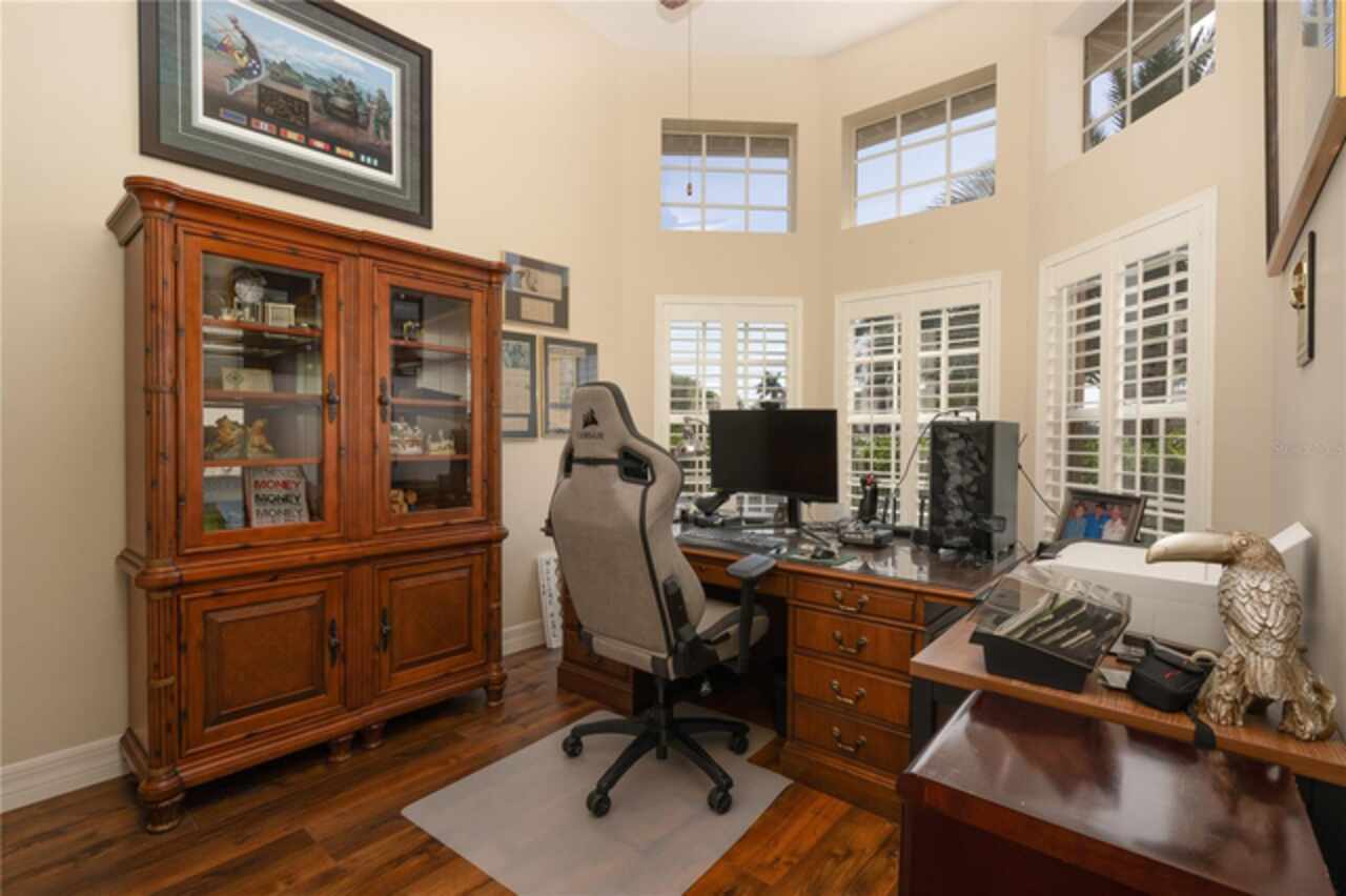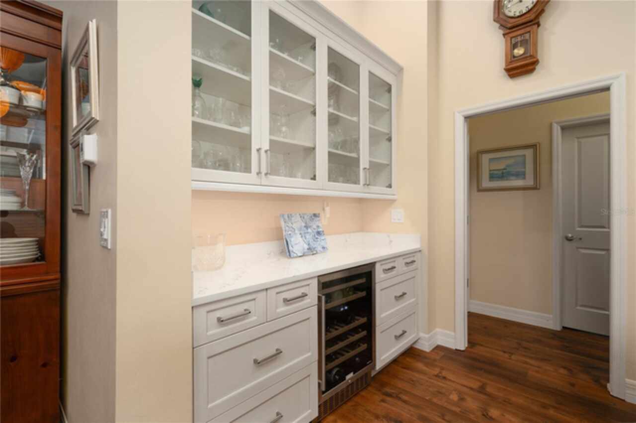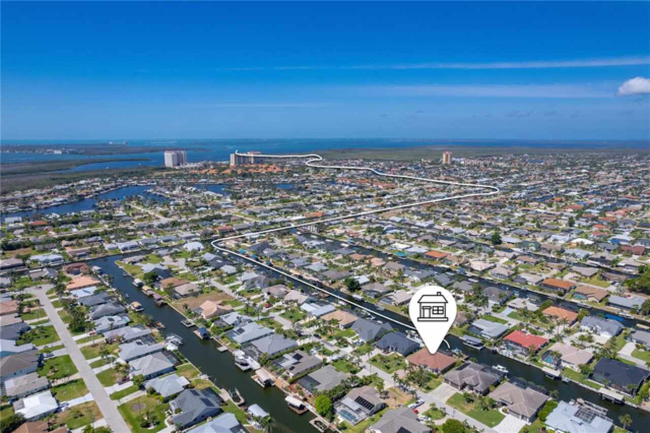 Welcome to your waterfront oasis with Gulf access and no bridges, offering the perfect blend of luxury, functionality, and outdoor living. This 3-bedroom plus den, 3-bath home is nestled on a wide canal and boasts a private boat dock and lift, making it a dream for boaters. Enjoy unforgettable sunsets from your beautiful saltwater pool and spa, all enclosed within a screened lanai for year-round enjoyment. Step inside and be captivated by the open-concept layout and rich wood laminate floors that flow throughout the home (bathrooms feature tile). The split-bedroom floor plan with volume ceilings creates privacy and openness all at once, perfect for both entertaining and everyday living. Plantation shutters throughout the home add timeless elegance and light control. The heart of the home is a spacious kitchen designed for both style and performance. Featuring cabinetry with crown molding, Quartz countertops, a large cook island with seating, and a high-end gas range, it’s a culinary dream. There’s even a dedicated bar area with glass cabinets and a beverage refrigerator, ideal for entertaining. The primary suite is a true retreat with a walk-in closet, a spa-inspired bathroom featuring a deep soaking tub, an expansive Quartz vanity, and a frameless glass walk-in shower. Two additional bedrooms, three full baths, and a flexible den with ample space for guests, hobbies, or a home office. Additional updates include a new roof (2018), AC unit (2019), and appliances (2021). What truly sets this home apart is the rare 500-gallon propane tank that fuels the gas range and is available for other uses as desired—adding convenience and value. Step out to the covered patio with paver flooring and ceiling fans, the perfect setting for poolside dining or relaxing while taking in tranquil sunset views over the canal. Whether you're boating, entertaining, or simply enjoying the serenity of waterfront living, this home offers the ultimate Florida lifestyle.
