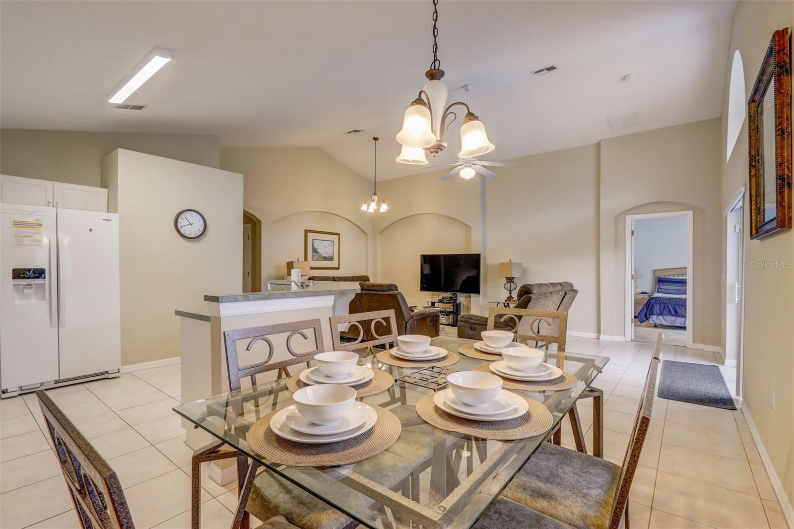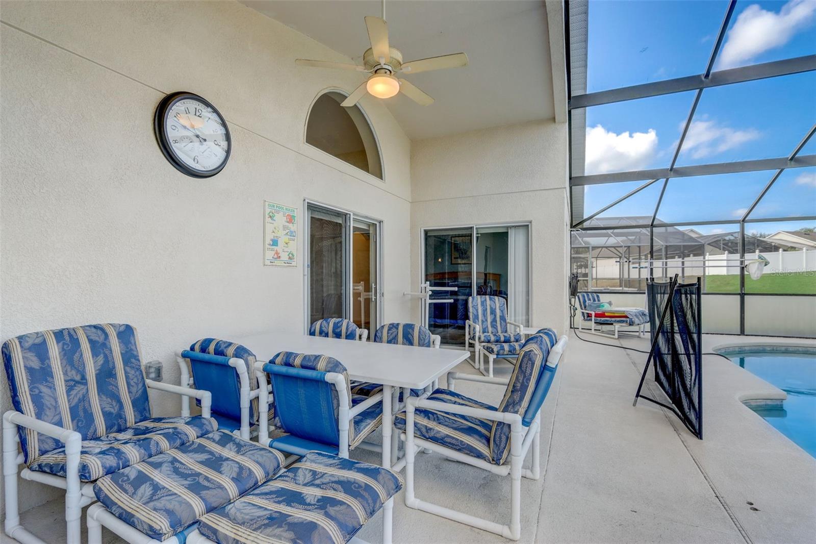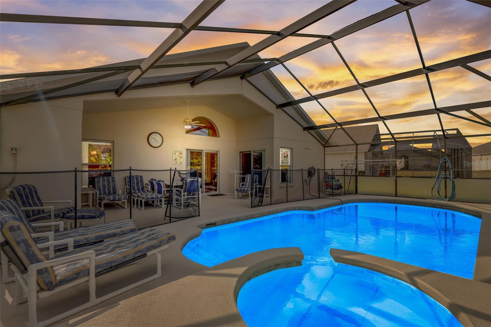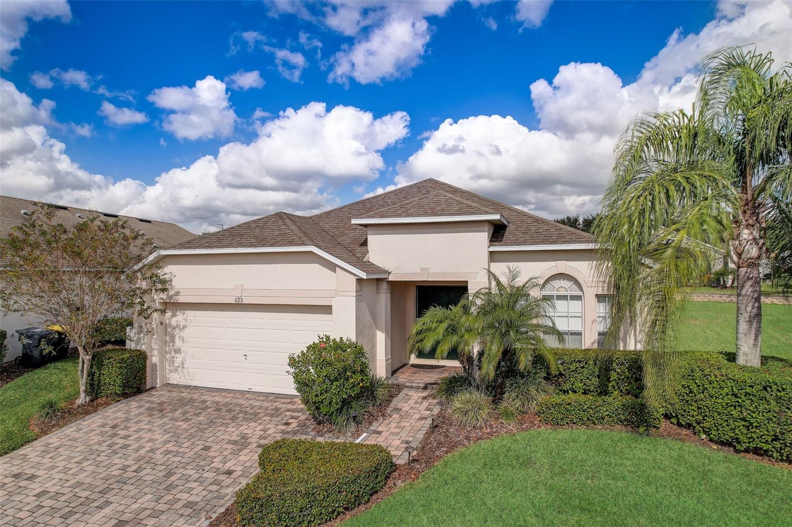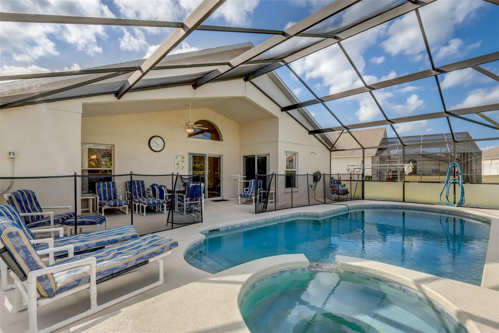 Experience the best of Florida living in this fully furnished pool home in the Sanctuary at West Haven. The open layout and vaulted ceilings create a bright, welcoming atmosphere from the moment you walk in. The kitchen features a large center island, ample storage, and direct access to the dining and living areas—perfect for entertaining family and friends. The primary suite offers a relaxing retreat with sliding doors to the pool and a spacious ensuite with dual vanities, a garden tub, and a separate shower. The garage has been converted into a game room, adding extra space for fun and entertainment. Step outside to your private backyard oasis with a screened-in heated pool and spa, outdoor shower, and a generous pool deck ideal for lounging or hosting gatherings. The home backs onto open green space, providing added privacy and a tranquil view. A new roof (2024) offers peace of mind and lasting value. Conveniently located near theme parks, shopping, and dining, this property is perfect as a full-time residence, vacation home, or short-term rental.