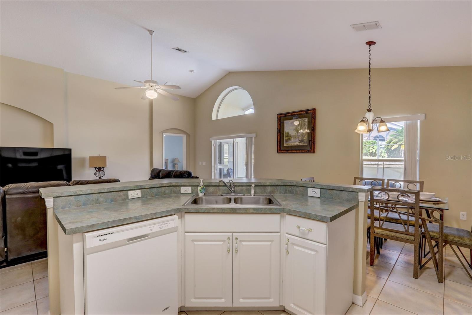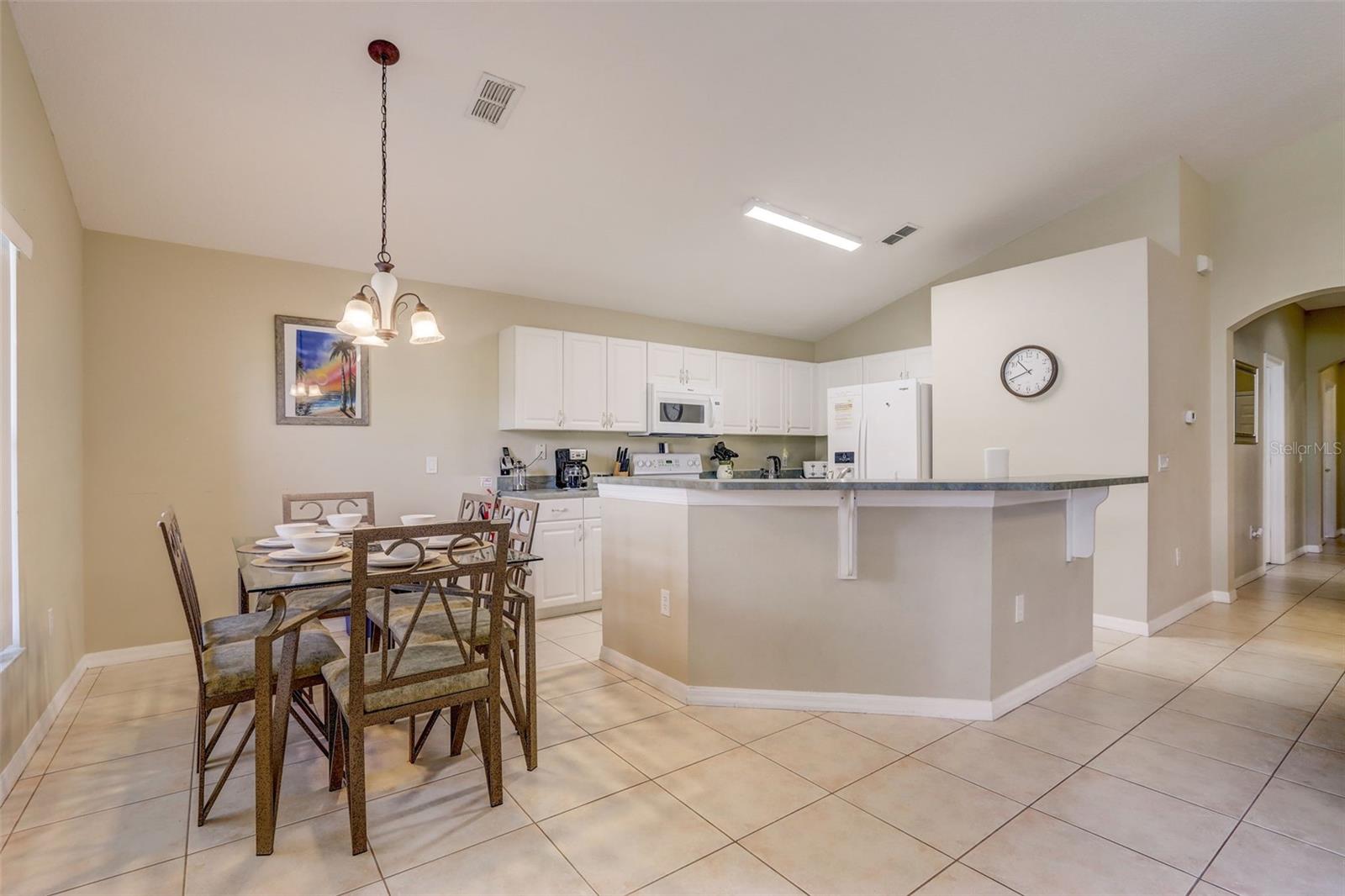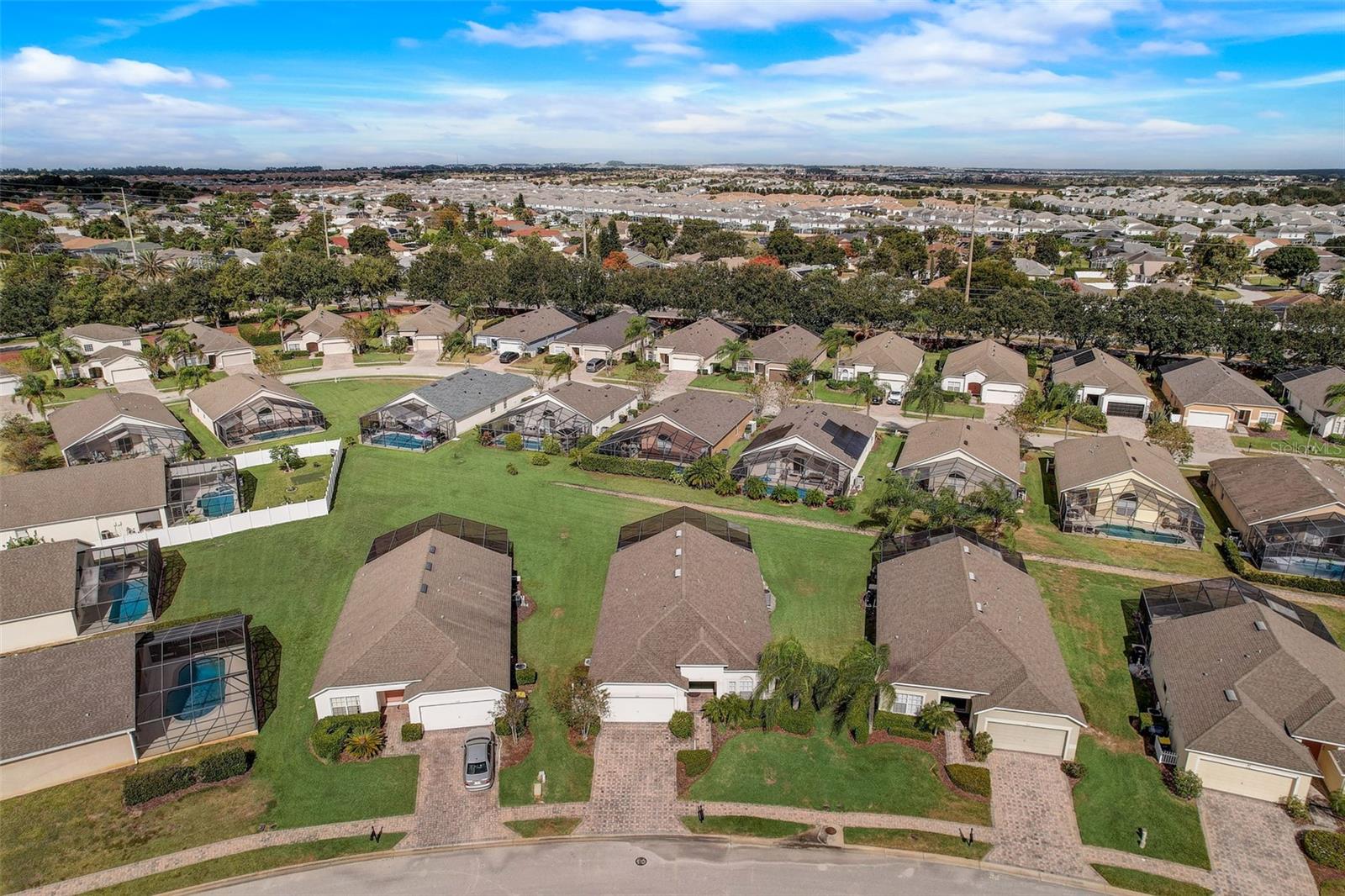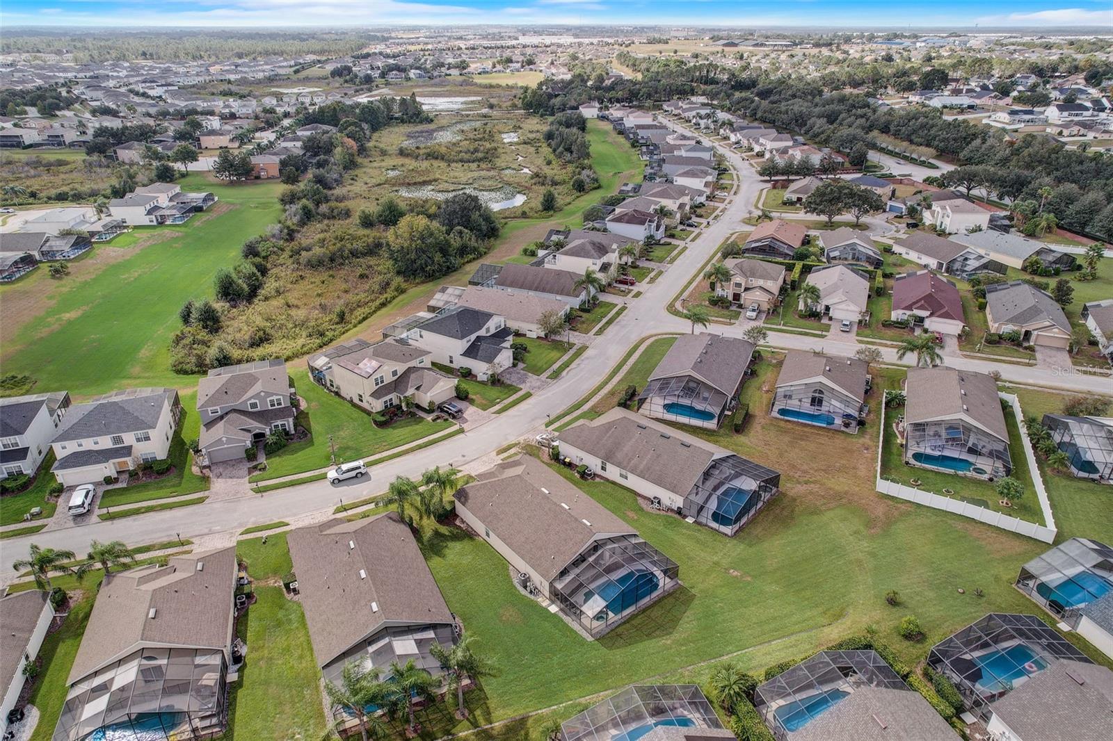 Experience the best of Florida living in this fully furnished pool home in the Sanctuary at West Haven. The open layout and vaulted ceilings create a bright, welcoming atmosphere from the moment you walk in. The kitchen features a large center island, ample storage, and direct access to the dining and living areas—perfect for entertaining family and friends. The primary suite offers a relaxing retreat with sliding doors to the pool and a spacious ensuite with dual vanities, a garden tub, and a separate shower. The garage has been converted into a game room, adding extra space for fun and entertainment. Step outside to your private backyard oasis with a screened-in heated pool and spa, outdoor shower, and a generous pool deck ideal for lounging or hosting gatherings. The home backs onto open green space, providing added privacy and a tranquil view. A new roof (2024) offers peace of mind and lasting value. Conveniently located near theme parks, shopping, and dining, this property is perfect as a full-time residence, vacation home, or short-term rental.