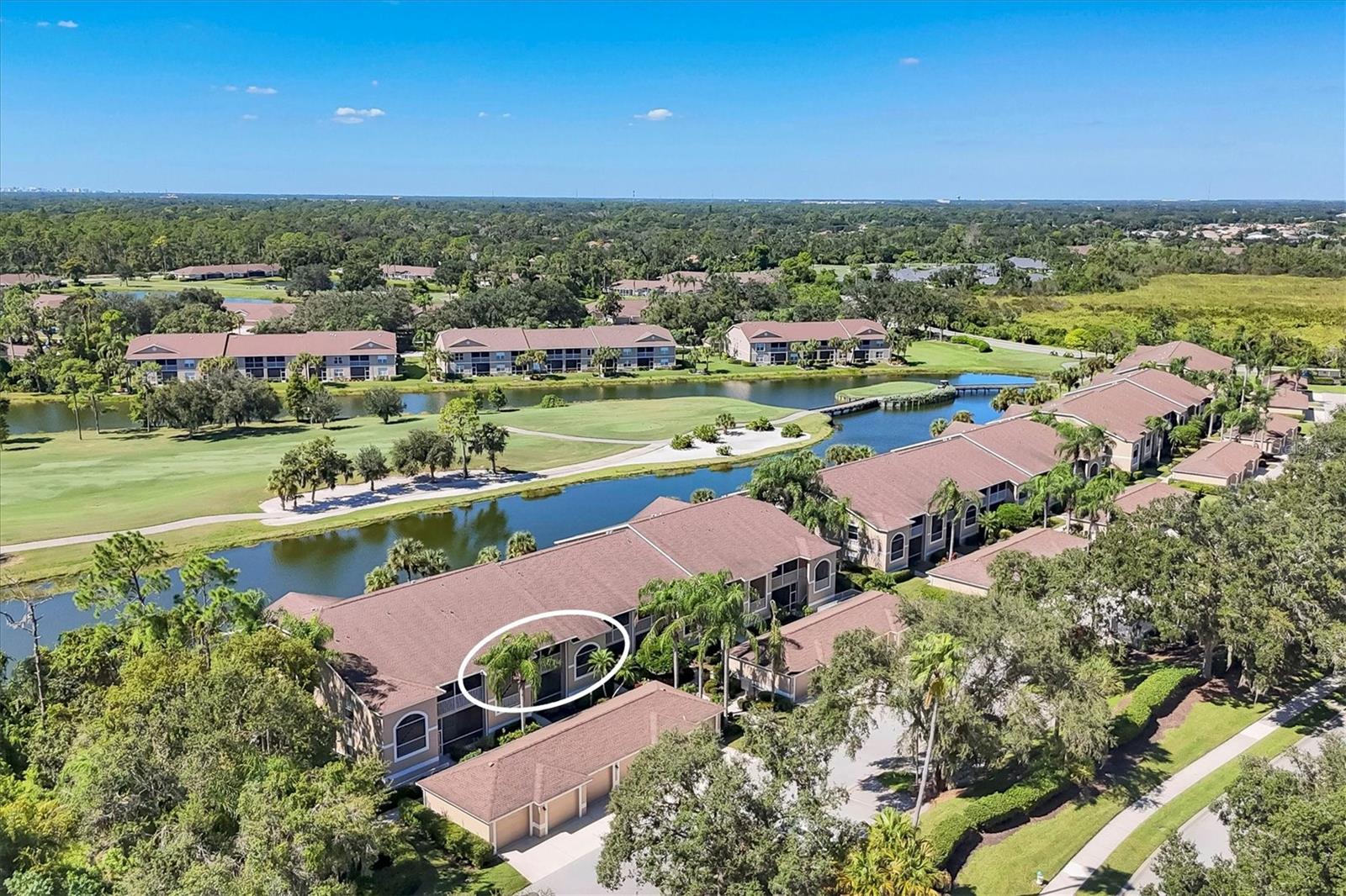Welcome to Heritage Oaks Golf & Country Club—second floor, end-unit offering exceptional space, natural light, and turnkey furnishings for a seamless move-in experience. Step inside to discover updated luxury flooring throughout the living areas, bedrooms, and den. The bright, open-concept design seamlessly connects the kitchen, dining, and living spaces, making it perfect for both relaxation and entertaining. The primary suite has two walk-in closets and an en-suite bath featuring a soaking tub, walk-in shower, and oversized vanity. The guest bedroom has a walk-in closet, while the den/office offers flexibility as a third bedroom or a home office. Step onto the back screened lanai with lake views overlooking hole #14 of a championship golf course and unwind and enjoy the Florida lifestyle. Private one-car garage with storage. Heritage Oaks is a private, gated golf community located on over 500 acres with a redesigned championship golf course, pro shop, and practice areas. Enjoy five heated community pools, a top-tier fitness center with full-time director, four tennis courts, scenic walking trails. The full-service clubhouse offers fine and casual dining options as well as convenient takeout. Located near I-75, University Town Center. Within a short drive, residents can access world-class beaches, downtown Sarasota, Lakewood Ranch, and more.