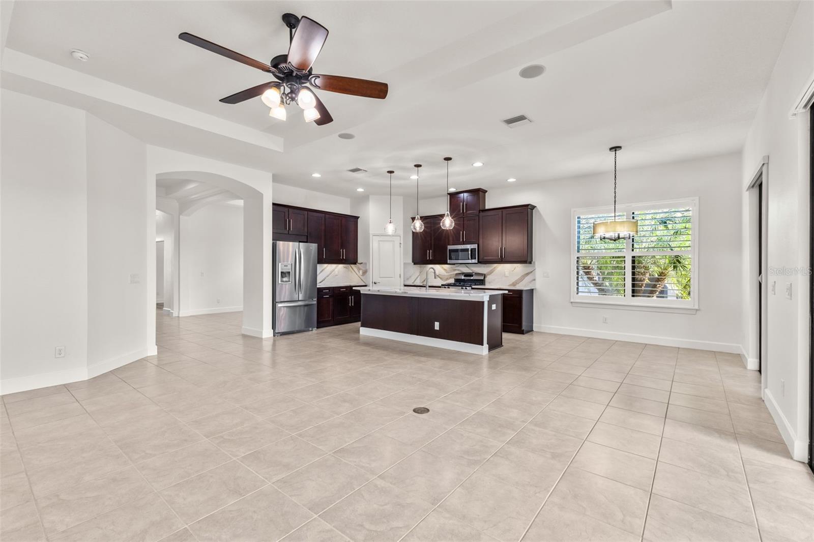 Ceiling Fans(s), Coffered Ceiling(s), Eat-in Kitchen, High Ceilings, Kitchen/Family Room Combo, Open Floorplan, Primary Bedroom Main Floor, Solid Wood Cabinets, Stone Counters, Walk-In Closet(s), Window Treatments