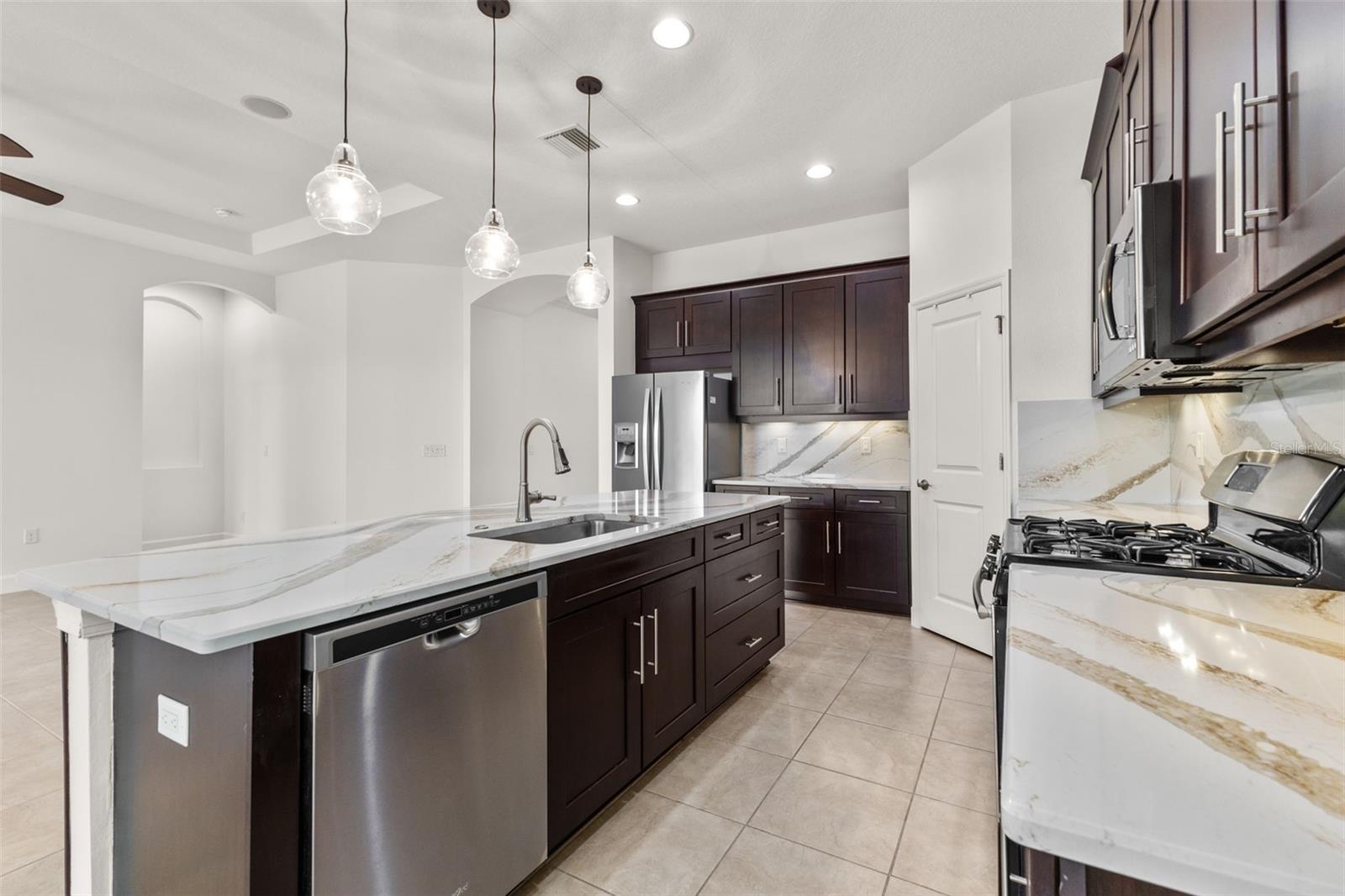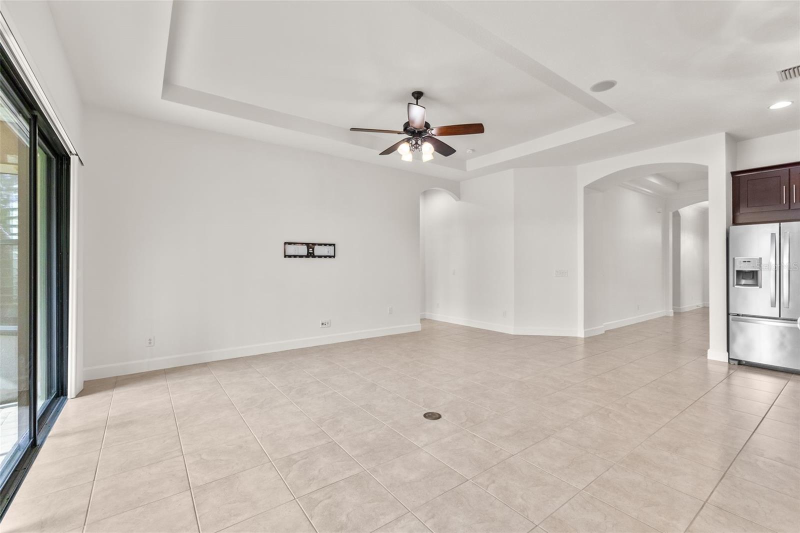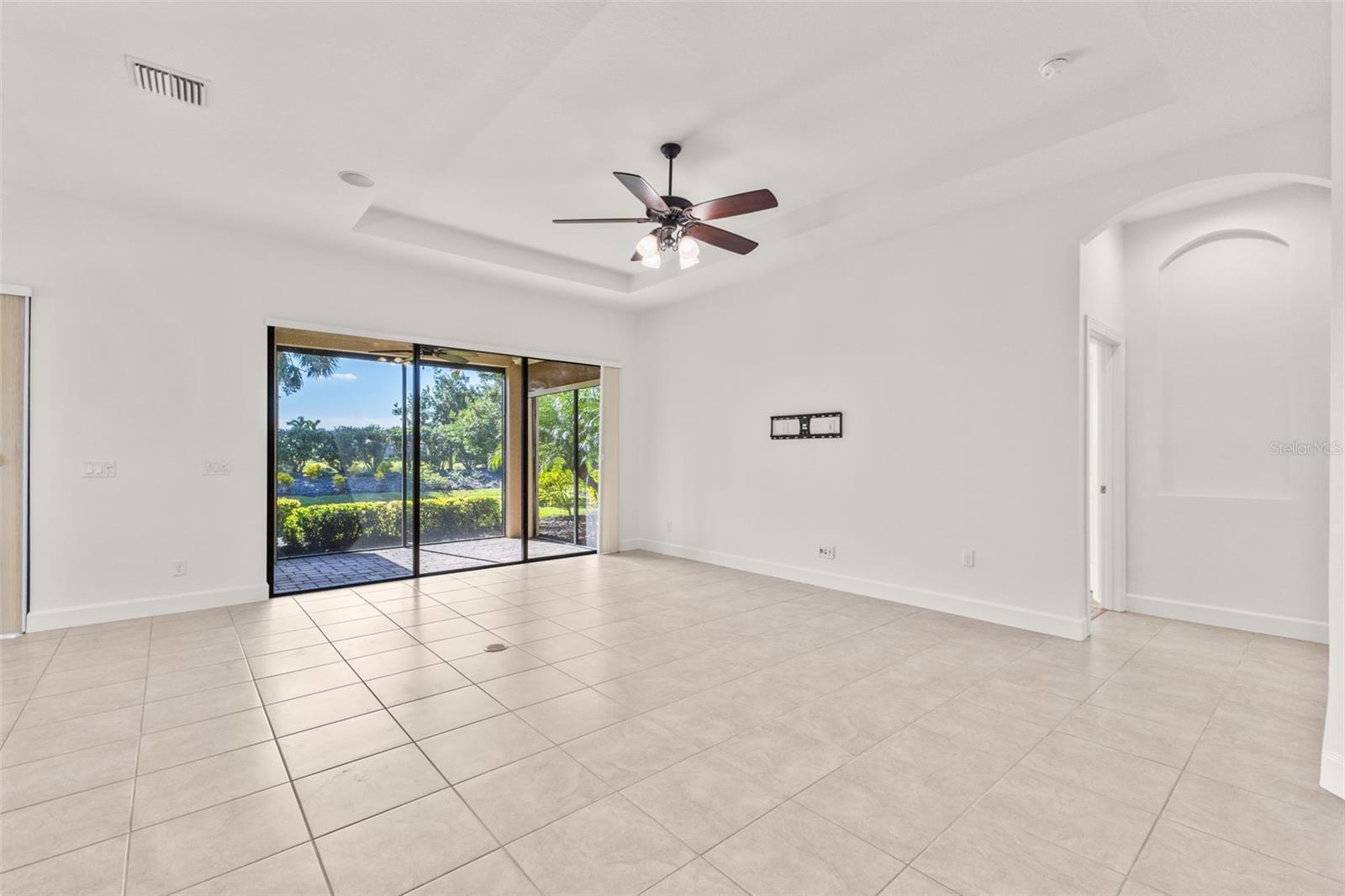 Welcome to 5242 Napoli Run, an exceptional residence located in the highly desirable Esplanade Golf & Country Club in Lakewood Ranch. This beautifully upgraded 2-bedroom plus den/office, 2.5-bath home offers 2, 053 sq. ft. of elegant living space and includes a golf-deeded homesite, providing golf membership for two—all included in the HOA fees. Step inside to discover a thoughtfully designed floor plan enhanced by premium upgrades throughout, including stylish flooring, upgraded bathrooms, and custom closets that elevate both comfort and functionality. The spacious gourmet kitchen and open-concept living areas make this home ideal for entertaining or enjoying quiet evenings in. One of the standout features of this property is its expansive screened-in back porch, complete with a built-in outdoor gas fireplace—perfect for year-round relaxation. The backyard offers exceptional privacy with lush landscaping and a tranquil pond view just beyond, creating a serene outdoor retreat. Esplanade is renowned for its amenity-rich lifestyle, featuring a resort-style community pool, tennis courts, pickleball courts, a state-of-the-art fitness center, on-site restaurant, Tiki bar, and beautifully maintained walking paths. With its vibrant community atmosphere and unparalleled amenities, Esplanade remains one of Lakewood Ranch’s most sought-after neighborhoods. Updates completed recently in this home include: New quartz countertops, new showers, LVP flooring in bedrooms and office, custom closets, new light in kitchen/foyer, plantation shutters, new hot water heater (2025) and hurricane screens on all Lanai/porch openings. **Some photos have been virtually staged.