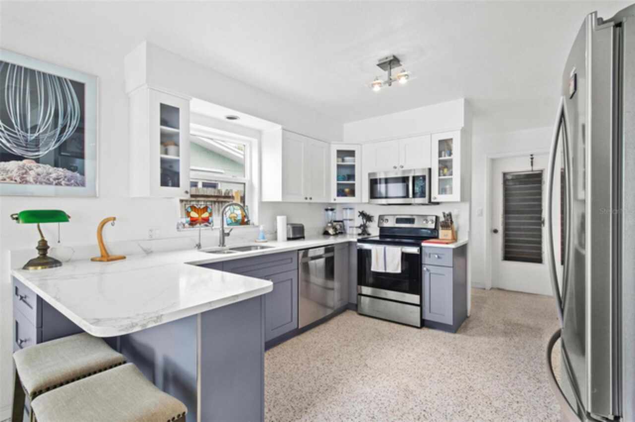 Welcome to your coastal home in the highly sought-after Crystal Island neighborhood of Madeira Beach. This waterfront residence offers the perfect blend of Florida charm and modern updates. Waterfront Living at Its Finest: Situated on a 60' x 115' waterfront lot, this home offers wide canal views and provides quick access to both the Intracoastal Waterway and the Gulf. The home sits a few feet higher than others, and has proven its resilience during Hurricane Helene with very minimal impact. A new seawall and dock (2023) accommodate large vessels, including sailboats, making this an ideal home for boating enthusiasts. Bright, Updated Interiors: Step inside to discover gleaming refinished terrazzo floors throughout, creating a seamless flow between spaces. The bright Florida room serves as a perfect retreat, offering great water views and abundant natural light. The updated kitchen showcases modern quartz countertops, raised-panel cabinetry, stainless steel appliances and a convenient dining peninsula. Recent Upgrades for Peace of Mind: All new impact windows and doors (2023-2025); new shingle roof (2023); updated HVAC system (2021); and new impact-rated garage door (2025). Additional Features: Convenient inside laundry room and included washer/dryer; a spacious two-car garage; and a generous back yard with awning covered patio. This turnkey waterfront property offers the perfect combination of coastal living, modern updates, and boating accessibility. Don't miss this opportunity to own your piece of paradise.