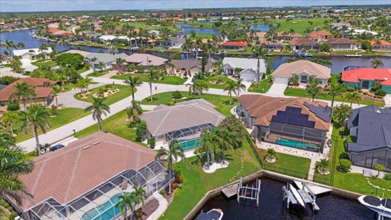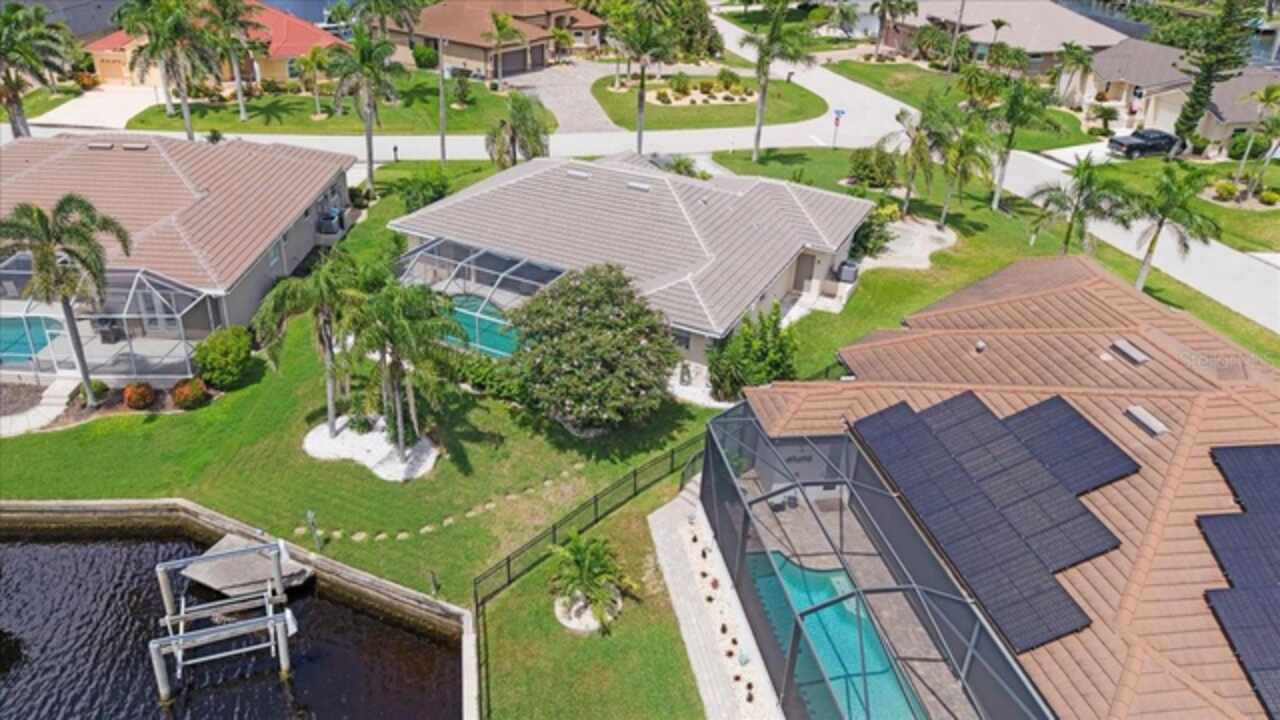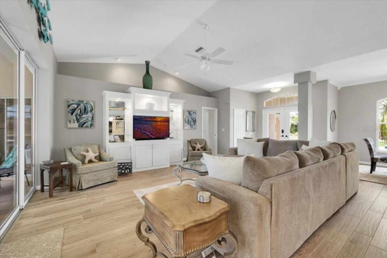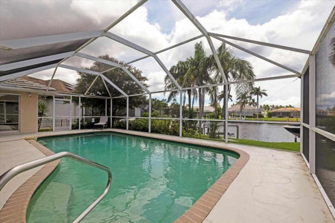 Welcome to this beautifully maintained 3-bedroom, 2-bathroom home located in the waterfront community of Burnt Store Isles. Perfectly designed for comfort, style, and Florida living, this residence comes fully furnished and truly turn-key. From the extended driveway to the oversized 2.5-car garage, there’s plenty of room for vehicles, hobbies, or a workshop. Step through the French doors into a bright, open floor plan filled with natural light. The kitchen is a chef’s delight with granite counters, stainless steel appliances, and a breakfast bar. A cozy breakfast nook overlooks the pool, screened lanai, and canal, while a more spacious dining area is ideal for entertaining. The primary suite is thoughtfully placed on its own side of the home for added privacy and includes direct access to the lanai and pool. It features a walk-in closet and en-suite bathroom with dual sinks, a garden tub, and a separate shower. On the opposite side of the home, two guest bedrooms share a full bathroom—the larger guest room also opens to the pool and lanai. The laundry room is well-equipped with built-in cabinets, ample counter space, and a sink for convenience. Outdoor living is at its finest here. The expansive screened lanai provides plenty of space for dining, barbecues, or simply lounging by the sparkling pool. Accordion shutters on the lanai and manual shutters on windows and doors offer extra hurricane protection. Beyond the pool lies a concrete seawall and city-maintained canal, complete with a private dock featuring water, electric, and a 4, 000-pound boat lift. From here, enjoy direct boating access to Charlotte Harbor via Alligator Creek. Residents of Burnt Store Isles enjoy optional memberships to the Burnt Store Isles Association and the Burnt Store Isles Boat Club for enhanced social and boating activities. At the heart of the community, Twin Isles Country Club offers golf, tennis, and dining with membership options. The location is also ideal—close to highways, airports, and historic downtown Punta Gorda’s dining, shopping, and entertainment. This home is the perfect blend of luxury, convenience, and waterfront lifestyle—ready for you to move in and start living your Florida dream.