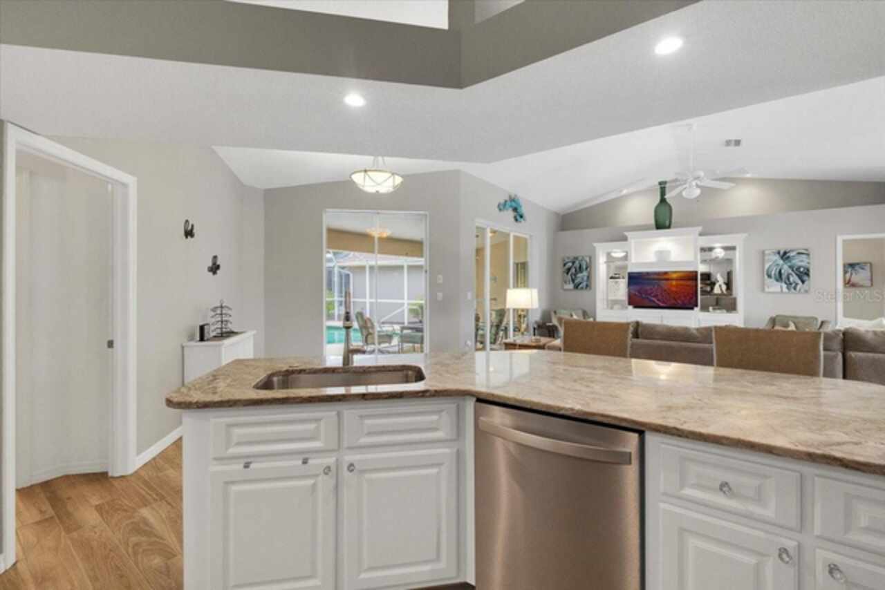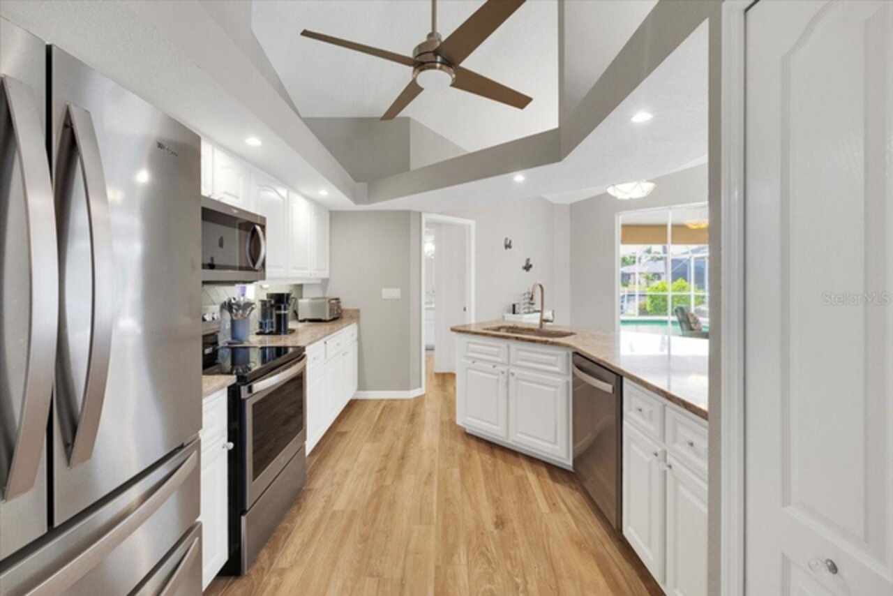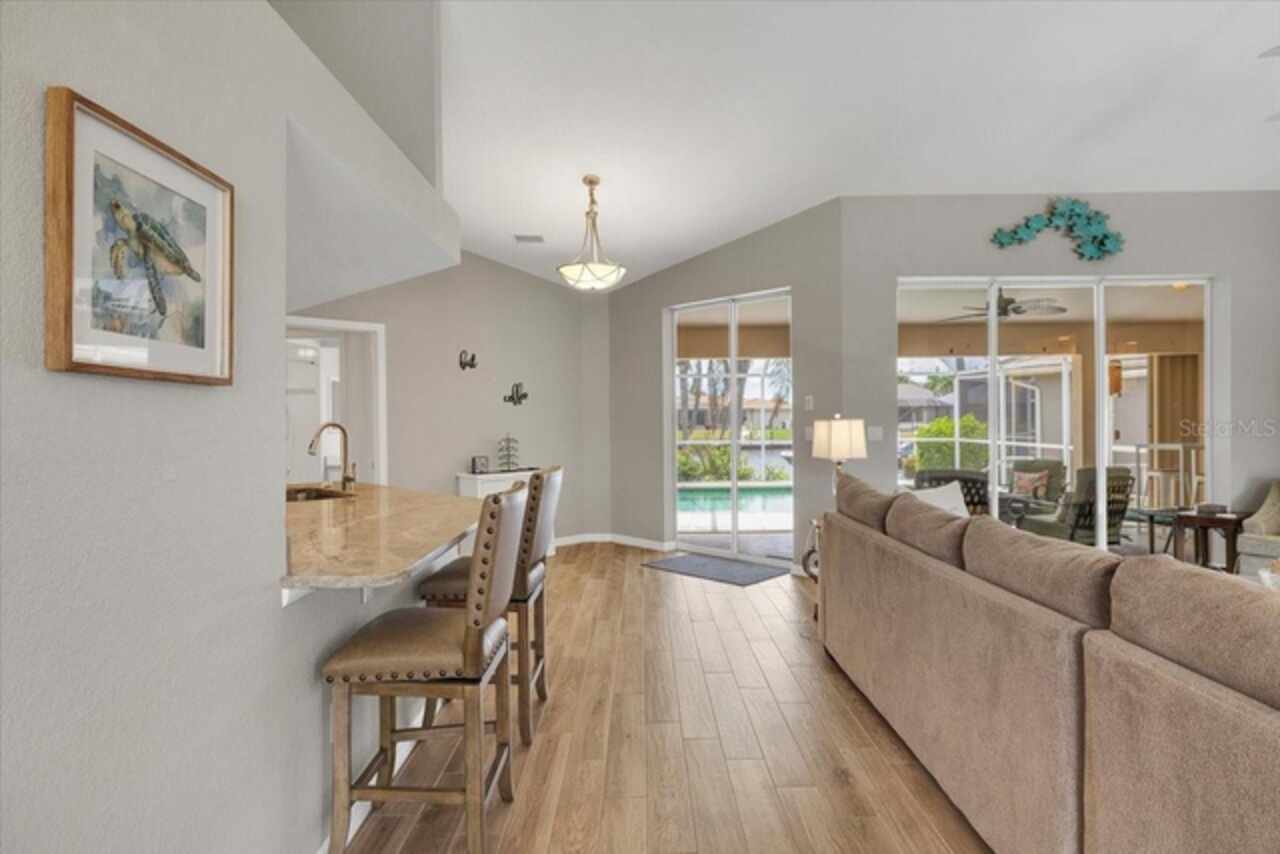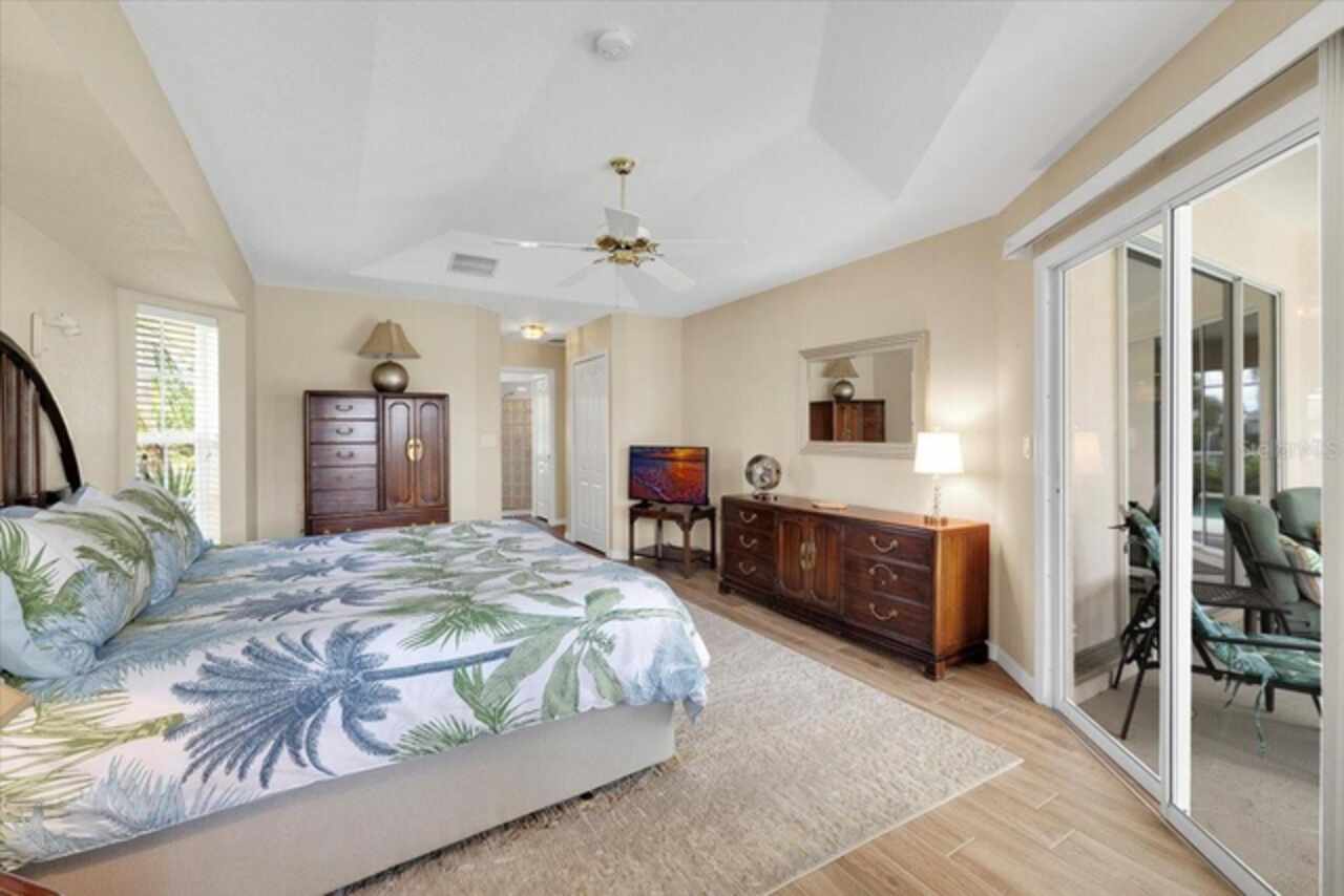 Welcome to this beautifully maintained 3-bedroom, 2-bathroom home located in the waterfront community of Burnt Store Isles. Perfectly designed for comfort, style, and Florida living, this residence comes fully furnished and truly turn-key. From the extended driveway to the oversized 2.5-car garage, there’s plenty of room for vehicles, hobbies, or a workshop. Step through the French doors into a bright, open floor plan filled with natural light. The kitchen is a chef’s delight with granite counters, stainless steel appliances, and a breakfast bar. A cozy breakfast nook overlooks the pool, screened lanai, and canal, while a more spacious dining area is ideal for entertaining. The primary suite is thoughtfully placed on its own side of the home for added privacy and includes direct access to the lanai and pool. It features a walk-in closet and en-suite bathroom with dual sinks, a garden tub, and a separate shower. On the opposite side of the home, two guest bedrooms share a full bathroom—the larger guest room also opens to the pool and lanai. The laundry room is well-equipped with built-in cabinets, ample counter space, and a sink for convenience. Outdoor living is at its finest here. The expansive screened lanai provides plenty of space for dining, barbecues, or simply lounging by the sparkling pool. Accordion shutters on the lanai and manual shutters on windows and doors offer extra hurricane protection. Beyond the pool lies a concrete seawall and city-maintained canal, complete with a private dock featuring water, electric, and a 4, 000-pound boat lift. From here, enjoy direct boating access to Charlotte Harbor via Alligator Creek. Residents of Burnt Store Isles enjoy optional memberships to the Burnt Store Isles Association and the Burnt Store Isles Boat Club for enhanced social and boating activities. At the heart of the community, Twin Isles Country Club offers golf, tennis, and dining with membership options. The location is also ideal—close to highways, airports, and historic downtown Punta Gorda’s dining, shopping, and entertainment. This home is the perfect blend of luxury, convenience, and waterfront lifestyle—ready for you to move in and start living your Florida dream.