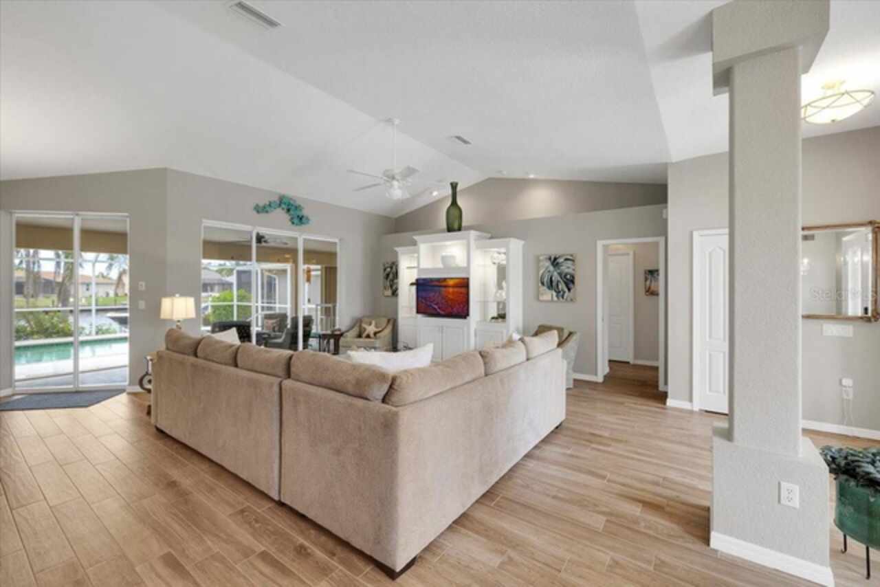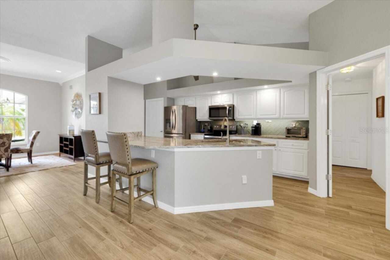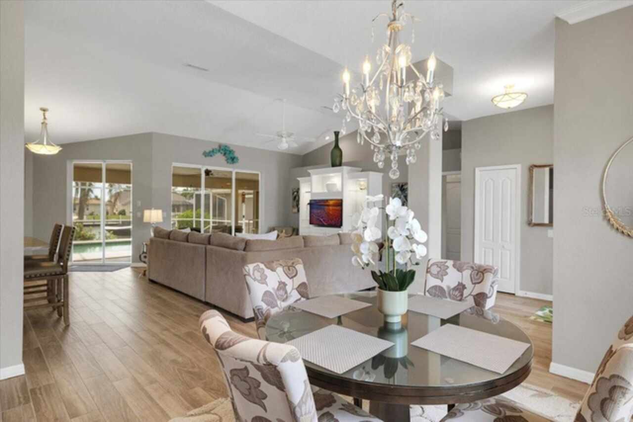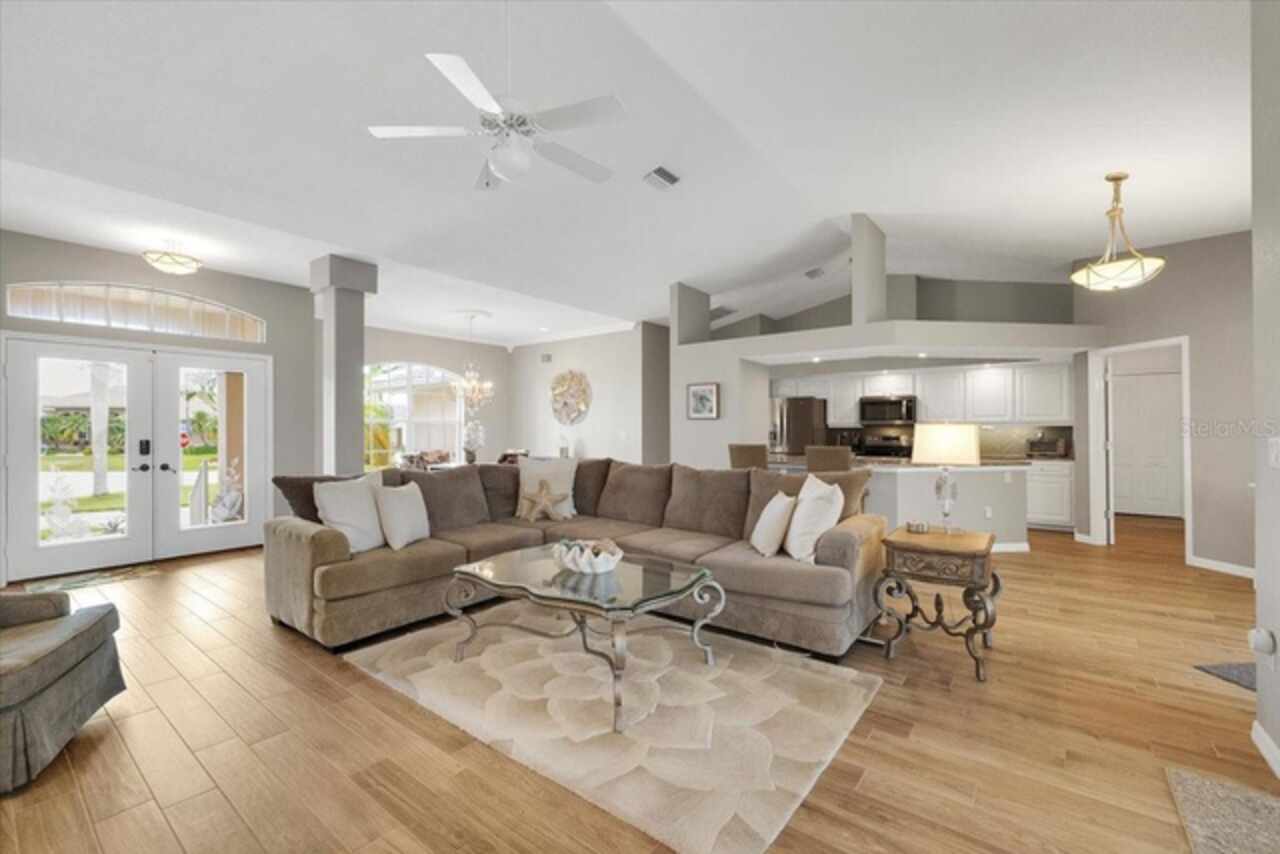 Welcome to this beautifully maintained 3-bedroom, 2-bathroom home located in the waterfront community of Burnt Store Isles. Perfectly designed for comfort, style, and Florida living, this residence comes fully furnished and truly turn-key. From the extended driveway to the oversized 2.5-car garage, there’s plenty of room for vehicles, hobbies, or a workshop. Step through the French doors into a bright, open floor plan filled with natural light. The kitchen is a chef’s delight with granite counters, stainless steel appliances, and a breakfast bar. A cozy breakfast nook overlooks the pool, screened lanai, and canal, while a more spacious dining area is ideal for entertaining. The primary suite is thoughtfully placed on its own side of the home for added privacy and includes direct access to the lanai and pool. It features a walk-in closet and en-suite bathroom with dual sinks, a garden tub, and a separate shower. On the opposite side of the home, two guest bedrooms share a full bathroom—the larger guest room also opens to the pool and lanai. The laundry room is well-equipped with built-in cabinets, ample counter space, and a sink for convenience. Outdoor living is at its finest here. The expansive screened lanai provides plenty of space for dining, barbecues, or simply lounging by the sparkling pool. Accordion shutters on the lanai and manual shutters on windows and doors offer extra hurricane protection. Beyond the pool lies a concrete seawall and city-maintained canal, complete with a private dock featuring water, electric, and a 4, 000-pound boat lift. From here, enjoy direct boating access to Charlotte Harbor via Alligator Creek. Residents of Burnt Store Isles enjoy optional memberships to the Burnt Store Isles Association and the Burnt Store Isles Boat Club for enhanced social and boating activities. At the heart of the community, Twin Isles Country Club offers golf, tennis, and dining with membership options. The location is also ideal—close to highways, airports, and historic downtown Punta Gorda’s dining, shopping, and entertainment. This home is the perfect blend of luxury, convenience, and waterfront lifestyle—ready for you to move in and start living your Florida dream.