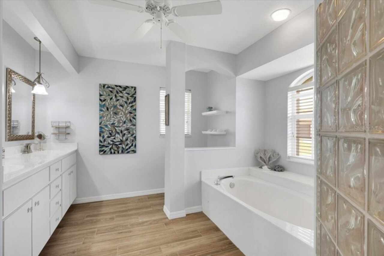Built-in Features, Ceiling Fans(s), High Ceilings, Open Floorplan, Split Bedroom, Stone Counters, Walk-In Closet(s), Window Treatments