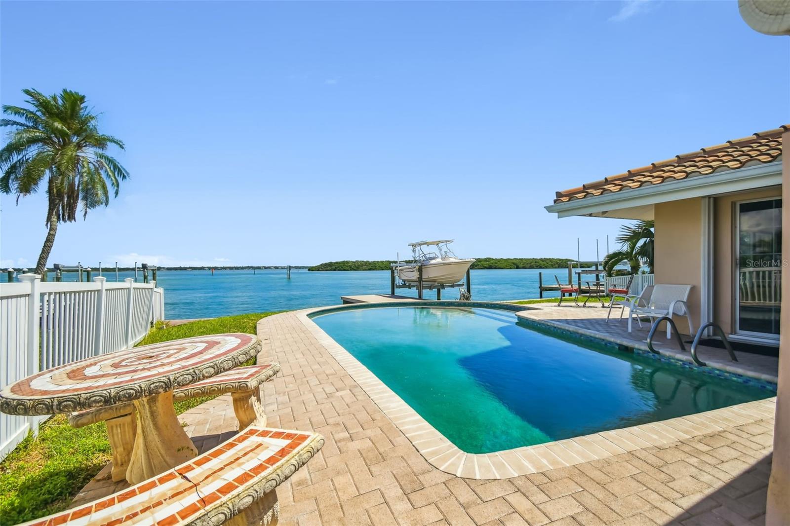 LIVE THE DREAM! Move-in ready with all the work done. This exceptional property offers one of the finest views across the waters of Boca Ciega Bay just minutes to the Gulf of Mexico and Johns Pass. You'll enjoy a location that everyone envies and few experience in this 4-Bedroom / 2-Bath Pool Home. With 70 feet of deep water frontage along a minimum wake zone, you'll have easy harborage for your boat and toys, and a breathtaking view of Bird Island and views 2 miles across the bay. The home offers 2, 273 HSF, a 2-car garage, inside laundry, and a kitchen with water views open to the family room perfect for true Florida living. The split bedroom plan features an en-suite Master overlooking the pool and water, while two defined living areas provide ample room for guests or family gatherings. The Tampa Bay intracoastal waters deliver endless fishing, dining, and boating opportunities along the coast. Recent storm-related water damage was promptly addressed, making for an effortless move-in. Located in the heart of Madeira Beach, you're close to some of the finest beaches in the country, with quick access to downtown St. Petersburg's arts and Pier districts, Tampa Bay's sports and entertainment venues, and Tampa International Airport. Seller will consider short-term Seller Financing with a 1st Position mortgage at current rates.
