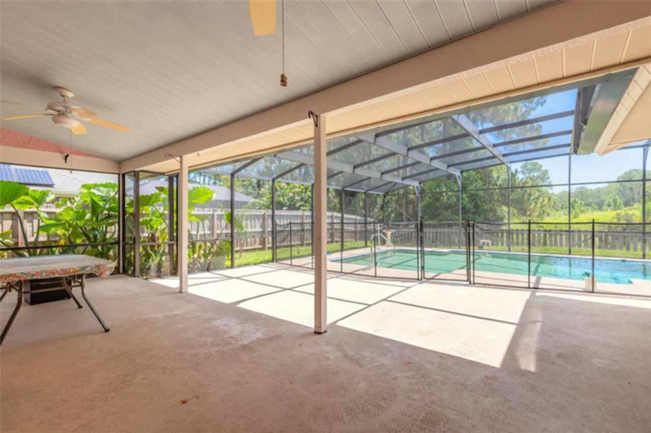 Under contract-accepting backup offers. Priced to sell! 35k below the lowest current market assessment: the most competitively priced property in this coveted area of the L section. 3/2 pool home with large flex room featuring plumbing and private entry, an easy transformation to a studio, MIL suite or private office space. 90s custom built capsule home with modern updates: Roof 2023. AC w/UV antibacterial/viral light 2024, WH 2025, carpeted areas replaced with commercial grade life time warranty stone composite plank flooring 2025. Fence 2023. Built on a previous golf course, property has no backyard neighbors and offers sweeping natural preserve-like views, yet offers quick access to US 1 and 95. 15 minutes to St Augustine, 25 to Daytona, shopping and in town conveniences. Home has no history of storm flooding and neither original owner nor current (2nd owner) have ever had to evacuate for a hurricane. All informed deemed accurate but cannot be guaranteed.