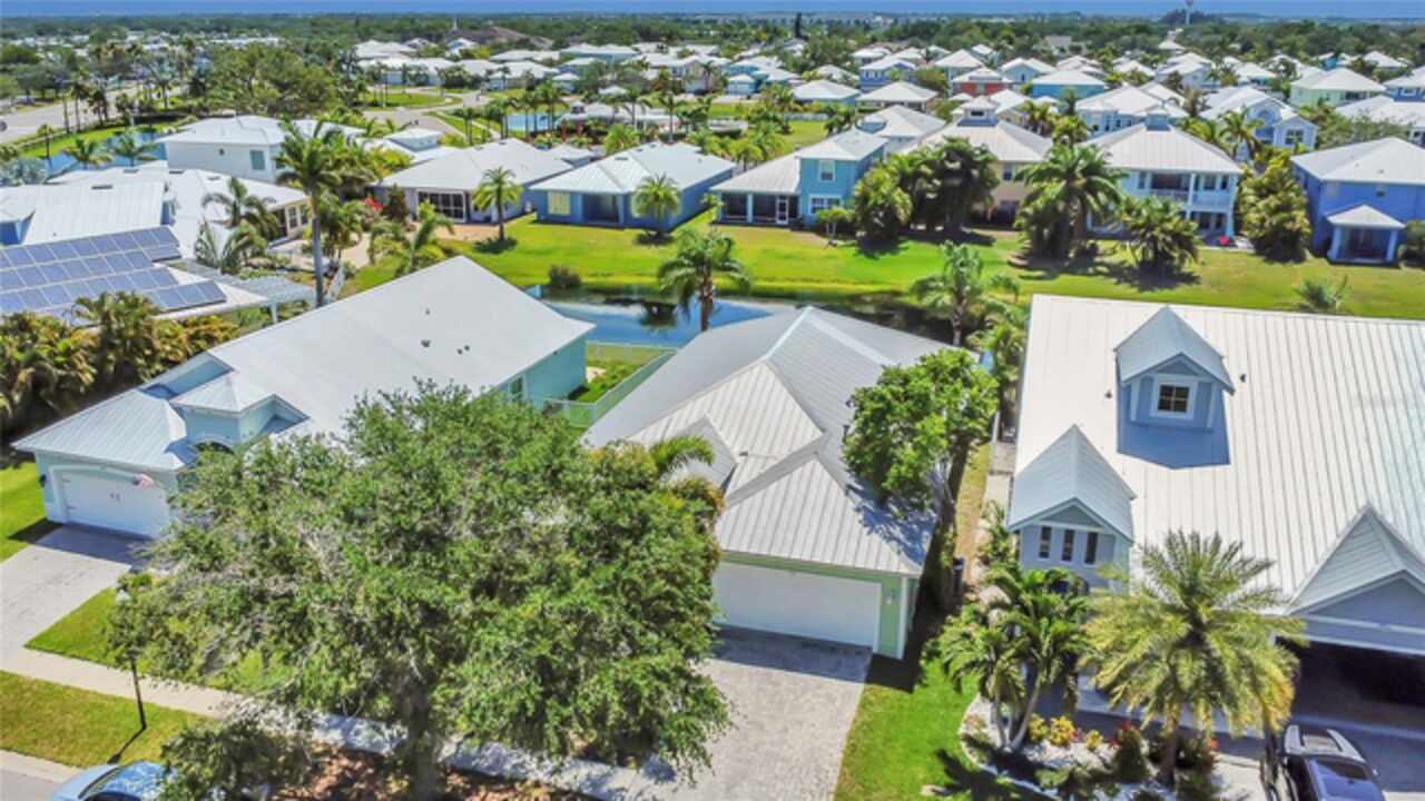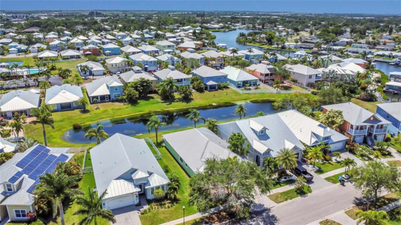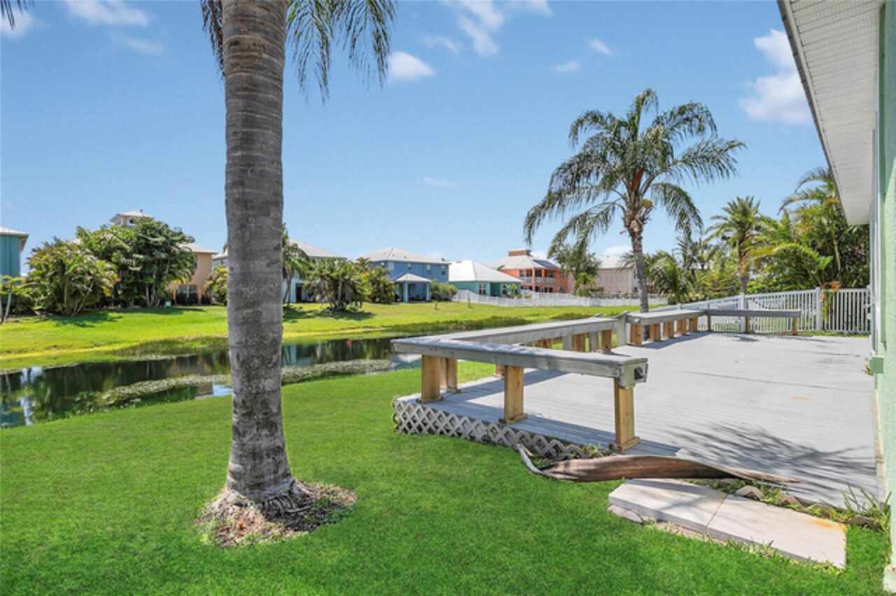 Seller offers a $11, 397 credit toward closing costs and prepaid items, including a possible rate buy down, on any full price offer accepted by 12/31/25. Set in the gated waterfront community of Bimini Bay, this Key West style home pairs an open layout with peaceful pond views. Inside you will find 3 bedrooms, 3 full baths, and almost 2, 200 square feet finished in a mix of laminate and tile flooring for easy care. Double entry doors open to a bright foyer that leads to the kitchen, complete with granite counters, gas range, an oversized breakfast bar, and a roomy eat-in nook that flows into the great room. The primary suite faces the water and includes a walk-in closet, dual vanity, soaking tub, and separate shower. A second bedroom enjoys its own en-suite bath and walk-in closet, while a third front bedroom is ideal for guests or a home office. The laundry room provides upper cabinets, a sink, and extra storage. Out back, an elevated deck overlooks the tranquil pond, perfect for sunset dinners or weekend grilling. Community amenities include a pool, clubhouse, gated entry, and boat access to Tampa Bay. Schedule your tour and see how easy waterfront living can be.