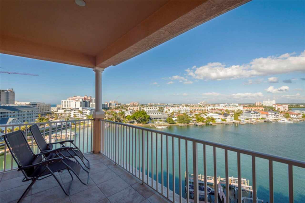 Luxurious PENTHOUSE residence in the heart of South Clearwater Beach at the Harborview Grande - 3 bedroom, 2 bath condo with over 1800 sqft. This vacation home offers established income through WEEKLY RENTALS. On-site MARINA - rent or buy a boat slip. This top floor condo features HIGH 10' CEILINGS, kitchen with granite counter tops, and wood cabinets - perfect for family gatherings. The tastefully furnished great room includes a spacious dining area, open breakfast bar, and owner’s closet. The laundry area is conveniently near guest bedrooms. The master suite features a walk-in closet, a large bath with a double vanity, soaking tub, and separate shower. Elevator entrance is code-secured with an assigned under-building garage parking spot and additional outdoor parking. This GATED community includes a HEATED pool with spa/hot tub. Explore nearby attractions such as Pier 60, the Beach Walk, beach, shops, restaurants, marina and more.