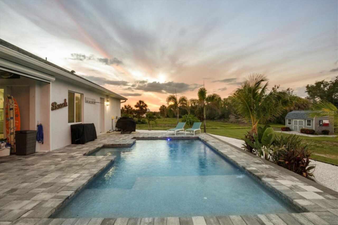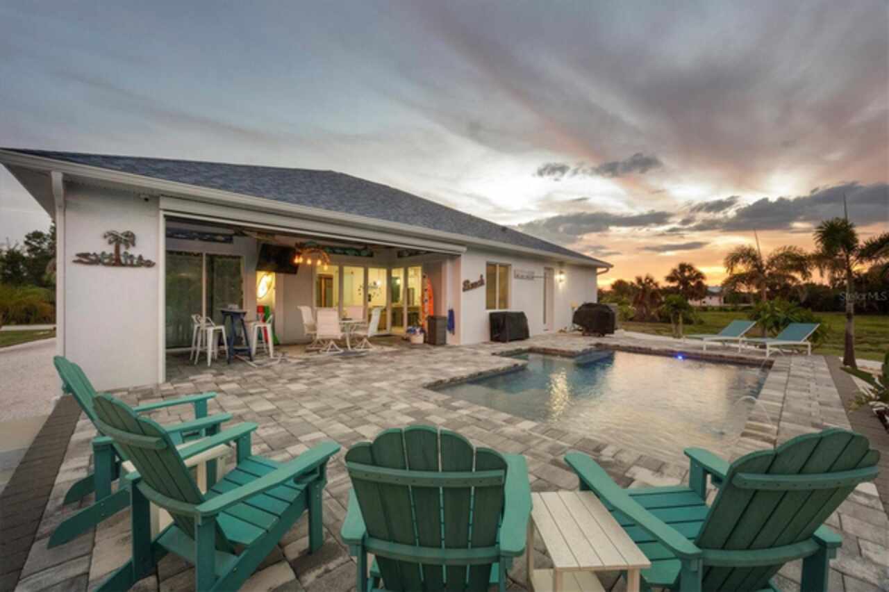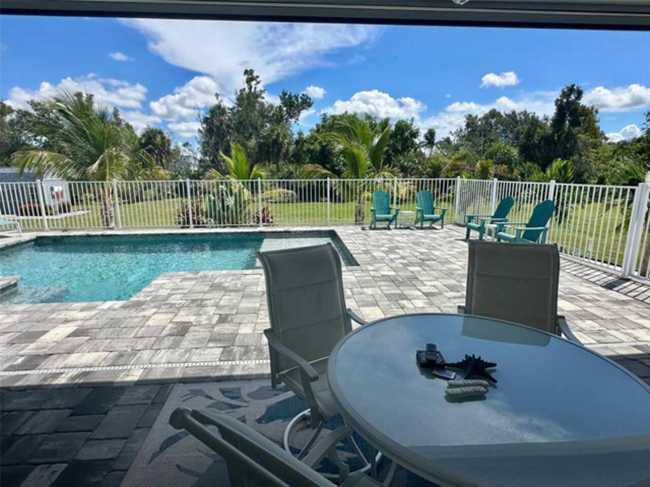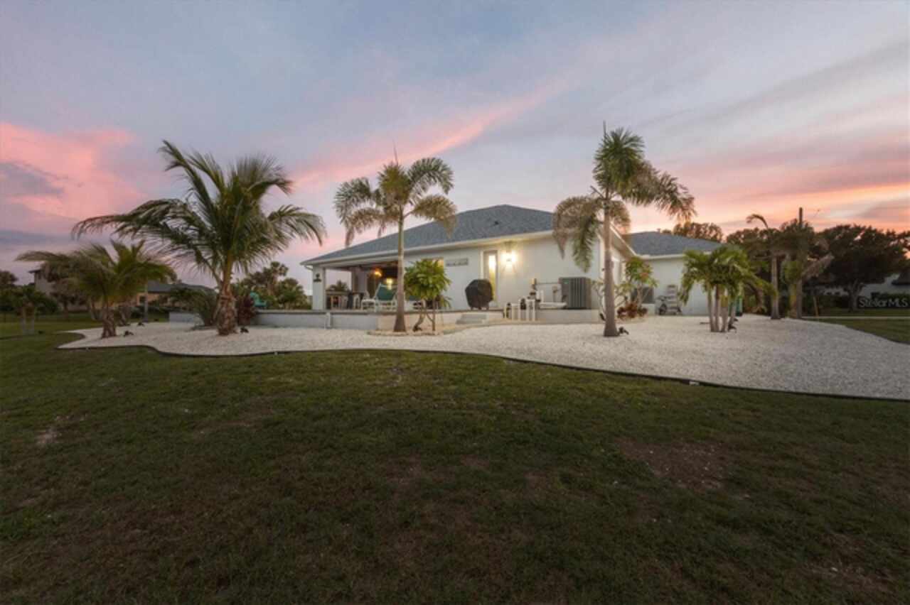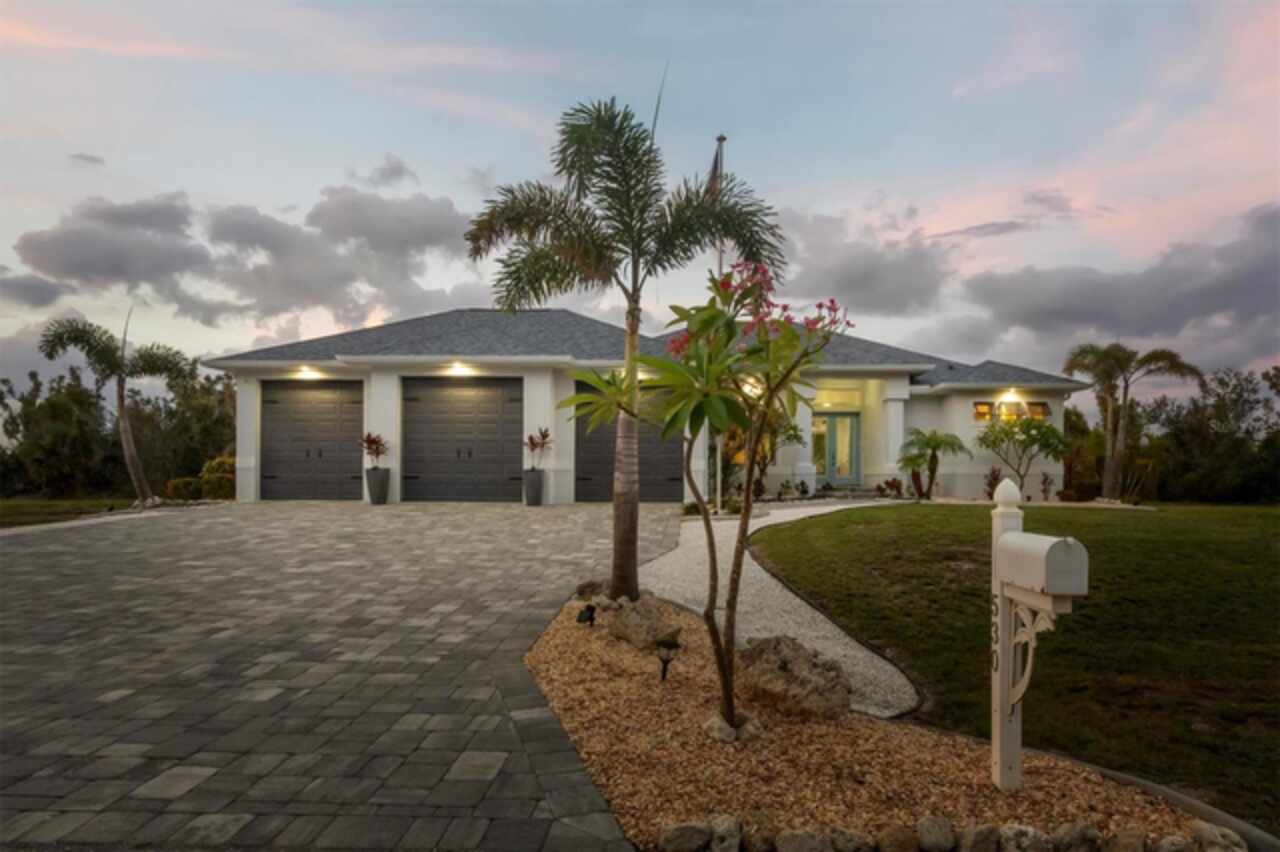 Built in 2019 this stunning 3 bed, plus den/study, 2 bath home sits on over half an acre of land, with a gorgeous heated pool and lanai and a car lover's dream 3 car garage. Located in the historic Vanderbilt developed neighborhood of Cape Haze with banyan lined streets, sidewalks to stroll to shopping and dining. Like all the homes in the neighborhood the house sits nicely back from the street, with a wide paver driveway and walkway up to the front door. Tall ceilings, large open kitchen and great room, custom wood cabinetry, stone counter tops, designer tile backsplash, high end appliances, plank tile flooring throughout, 8-foot zero corner sliding glass doors to the lanai, a full roll down screen and an outdoor kitchen on the lanai. Expansive paver lanai, beautifully designed pool with a sun shelf and in-pool seating. An incredible jumbo size 3 car garage with oversized stall doors, with two doors that are 9' wide by 10' tall and one 10'x10' middle door. Extra deep and tall ceilings, perfect for car lifts, storing boats, a workshop, and tremendous storage space. The home also comes with a very handy 10'x16' shed, perfect for even more storage. Cape Haze is a special waterfront community with membership in the Cape Haze POA there is usage of a dock and private beach on Don Pedro Island. A phenomenal location, Cape Haze is close to three full service marinas, numerous public and private golf courses, historic Boca Grande, miles of pristine sandy beaches and world-class fishing and boating.