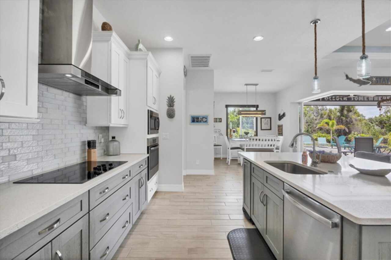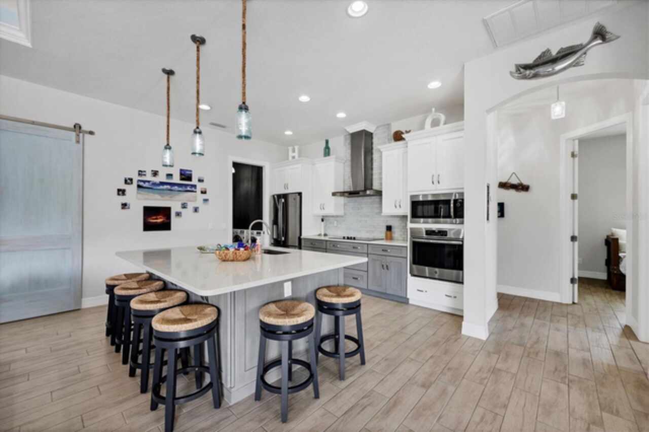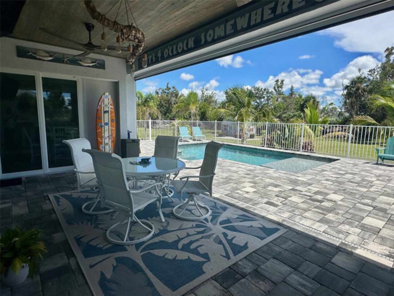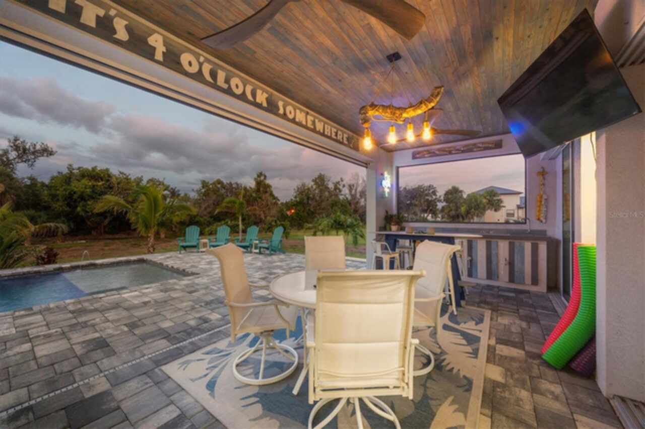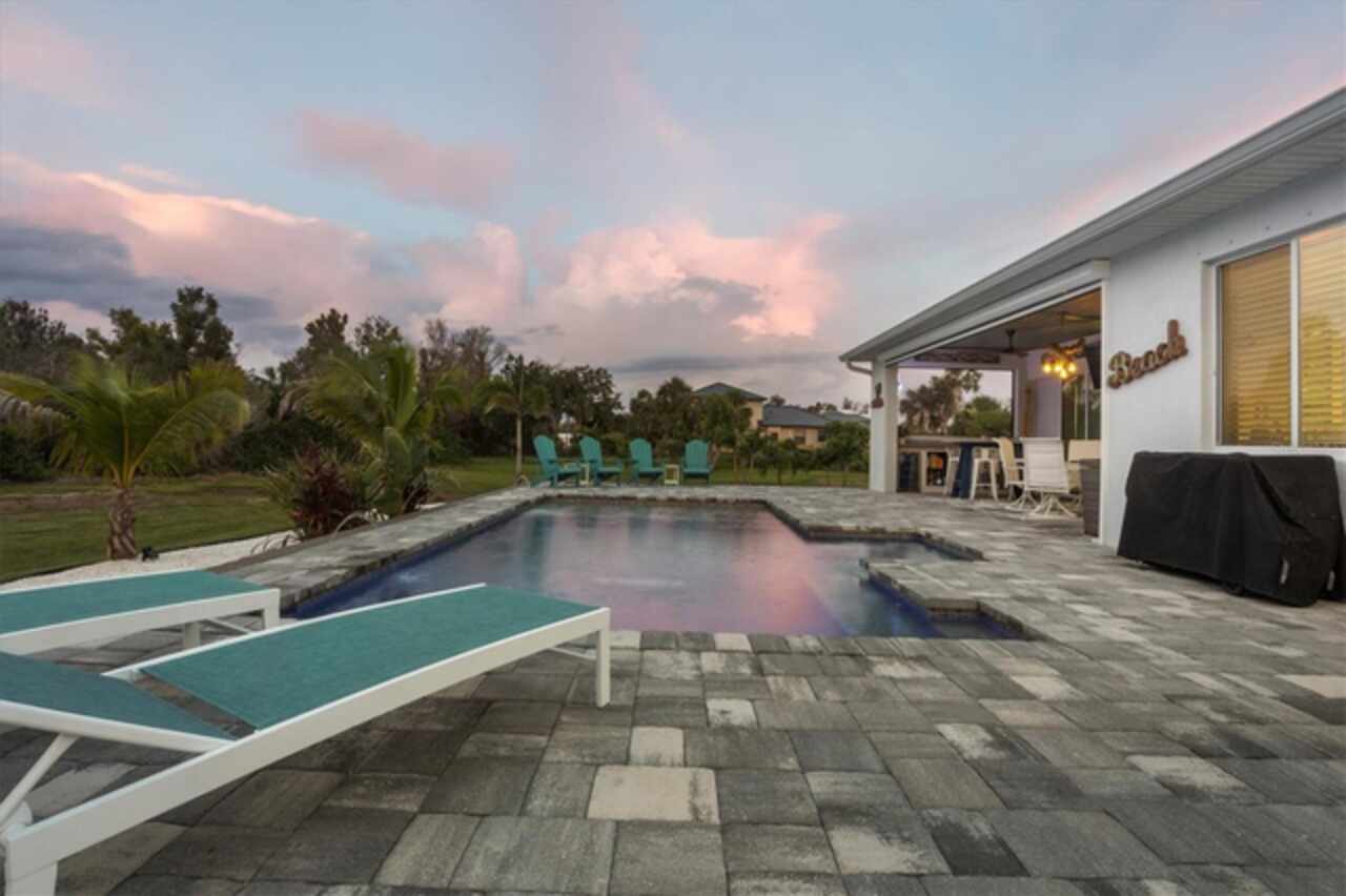 Built in 2019 this stunning 3 bed, plus den/study, 2 bath home sits on over half an acre of land, with a gorgeous heated pool and lanai and a car lover's dream 3 car garage. Located in the historic Vanderbilt developed neighborhood of Cape Haze with banyan lined streets, sidewalks to stroll to shopping and dining. Like all the homes in the neighborhood the house sits nicely back from the street, with a wide paver driveway and walkway up to the front door. Tall ceilings, large open kitchen and great room, custom wood cabinetry, stone counter tops, designer tile backsplash, high end appliances, plank tile flooring throughout, 8-foot zero corner sliding glass doors to the lanai, a full roll down screen and an outdoor kitchen on the lanai. Expansive paver lanai, beautifully designed pool with a sun shelf and in-pool seating. An incredible jumbo size 3 car garage with oversized stall doors, with two doors that are 9' wide by 10' tall and one 10'x10' middle door. Extra deep and tall ceilings, perfect for car lifts, storing boats, a workshop, and tremendous storage space. The home also comes with a very handy 10'x16' shed, perfect for even more storage. Cape Haze is a special waterfront community with membership in the Cape Haze POA there is usage of a dock and private beach on Don Pedro Island. A phenomenal location, Cape Haze is close to three full service marinas, numerous public and private golf courses, historic Boca Grande, miles of pristine sandy beaches and world-class fishing and boating.