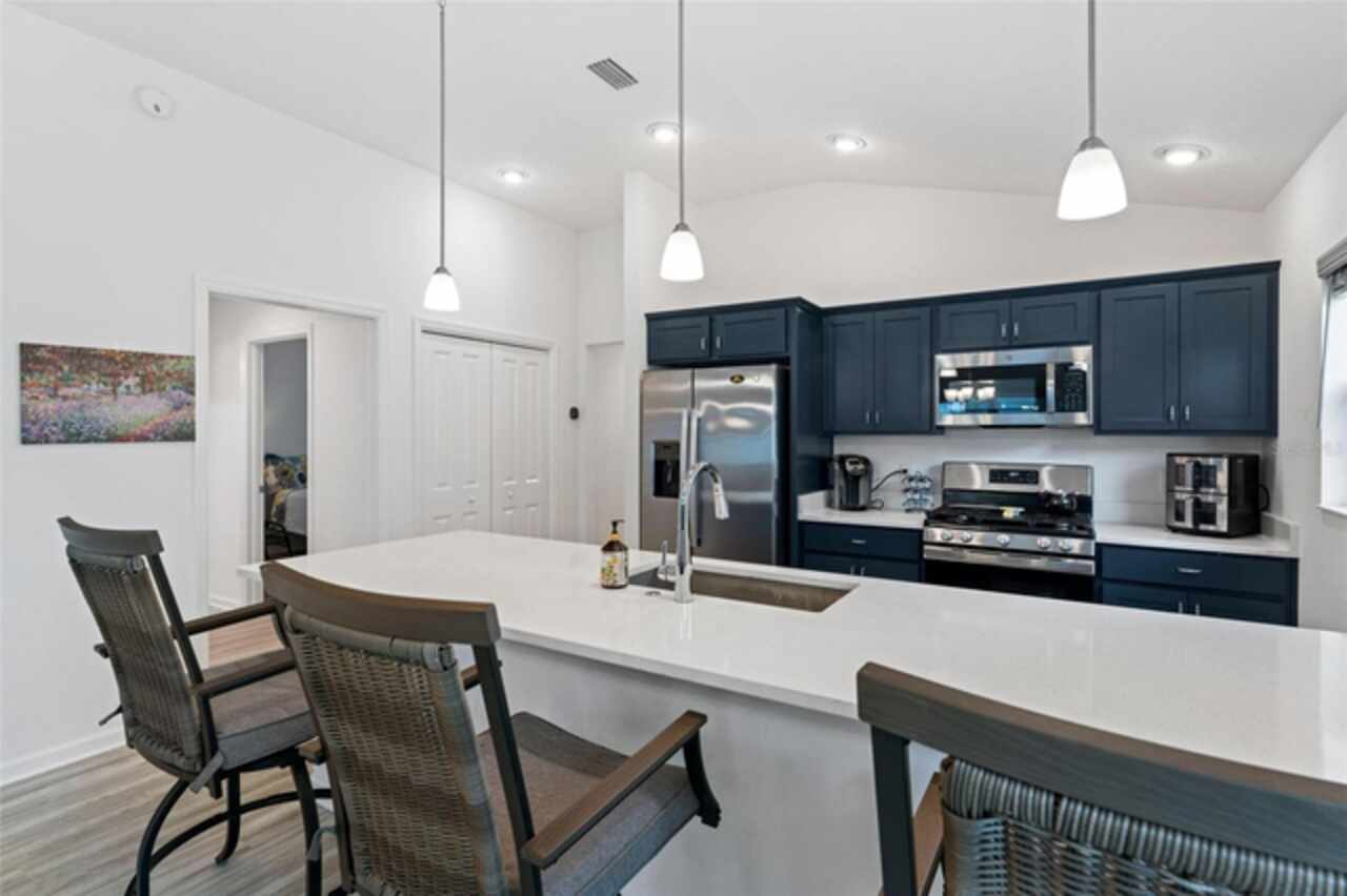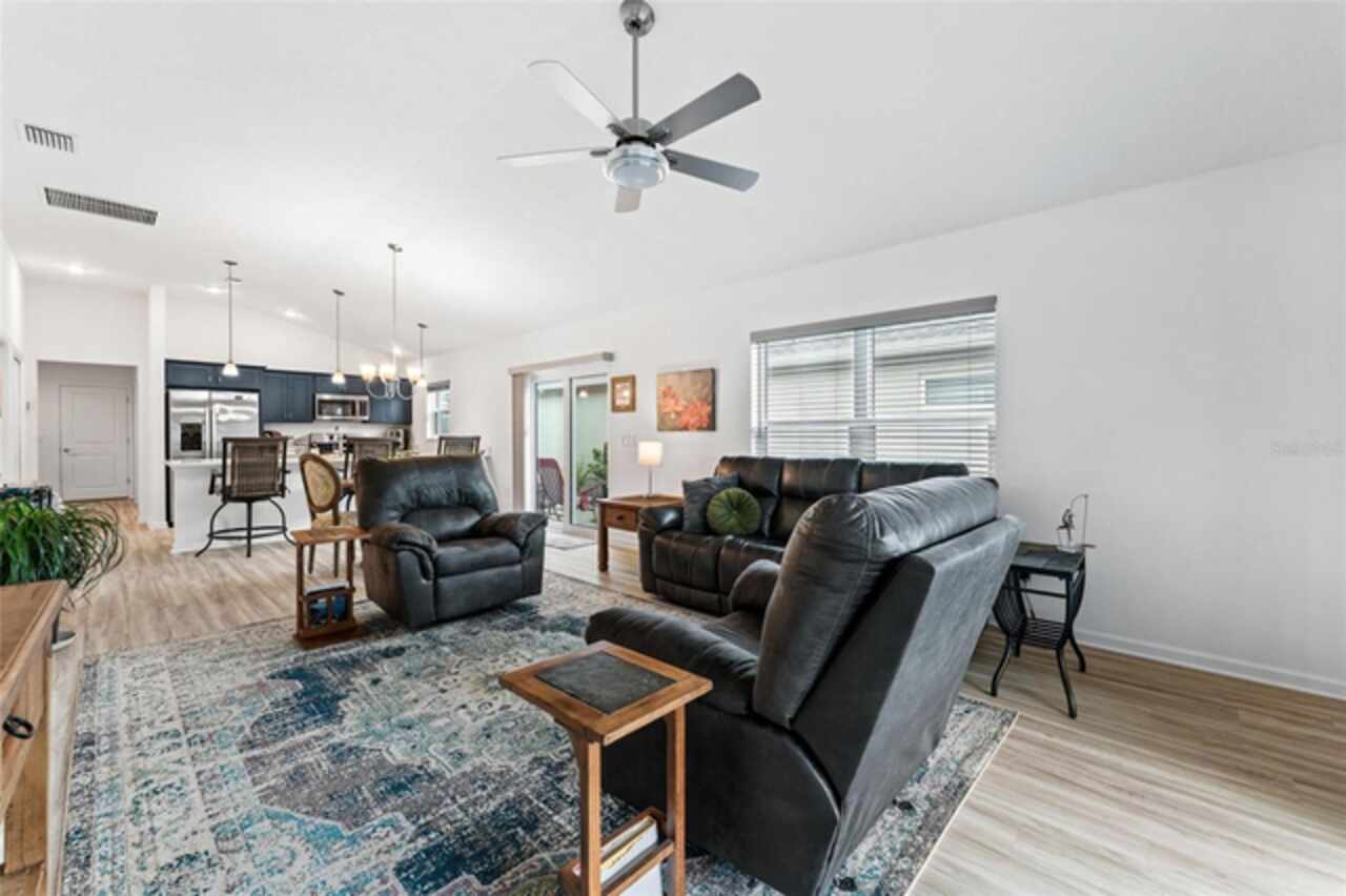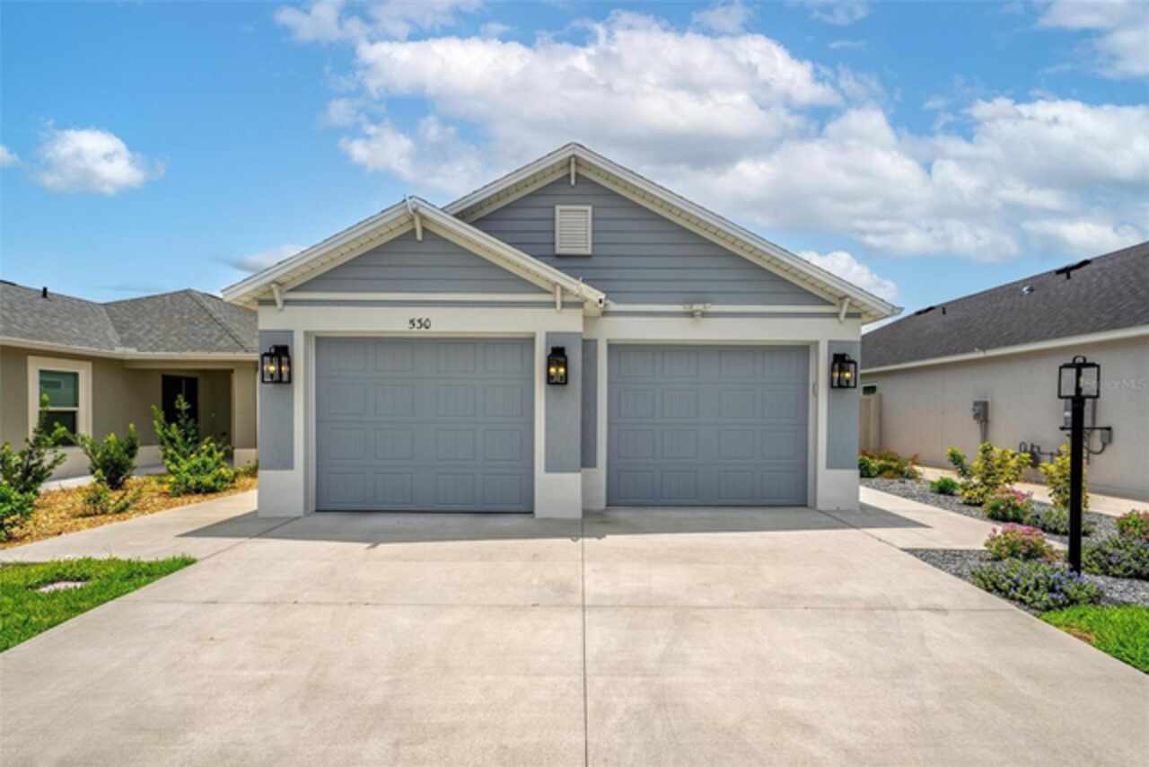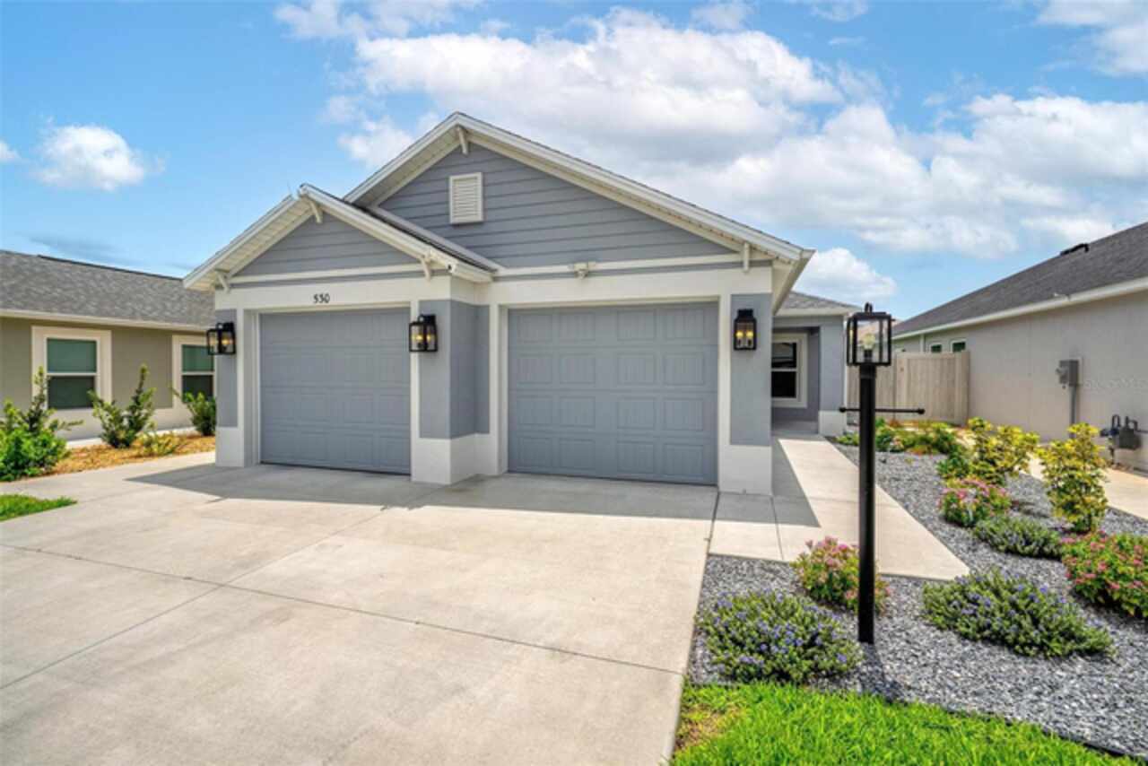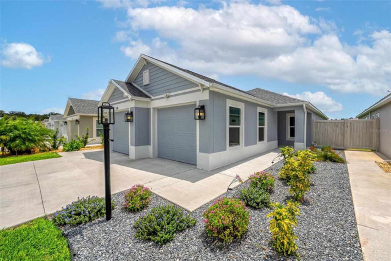 Welcome to 530 Van Deen Place just minutes from the new destination of Eastport, located in the heart of The Villages, is buzzing with activity as construction projects across the area bring an exciting vision to life. Eastport is set to become a destination that offers something for everyone. Discover effortless luxury and modern comfort in this newly built courtyard-style villa, nestled in a peaceful setting within the vibrant 55+ community of The Villages. Step inside to an inviting open floor plan layout boasting soaring ceilings, luxury vinyl flooring throughout, and a chef-inspired kitchen featuring sleek quartz countertops, TURKISH SHOWER in the primary suite and elegant finishes throughout the home. The spacious courtyard and professional landscaping create a private outdoor retreat for morning coffee or evening gatherings. Your two-car garage offers stylish utility and extra storage. Living here means enjoying world-class amenities: gated access, fitness center, dog park, golf and tennis courts, pools, many activities to join and a range of outdoor paths and green spaces, all within a short drive to restaurants, healthcare, and shopping.