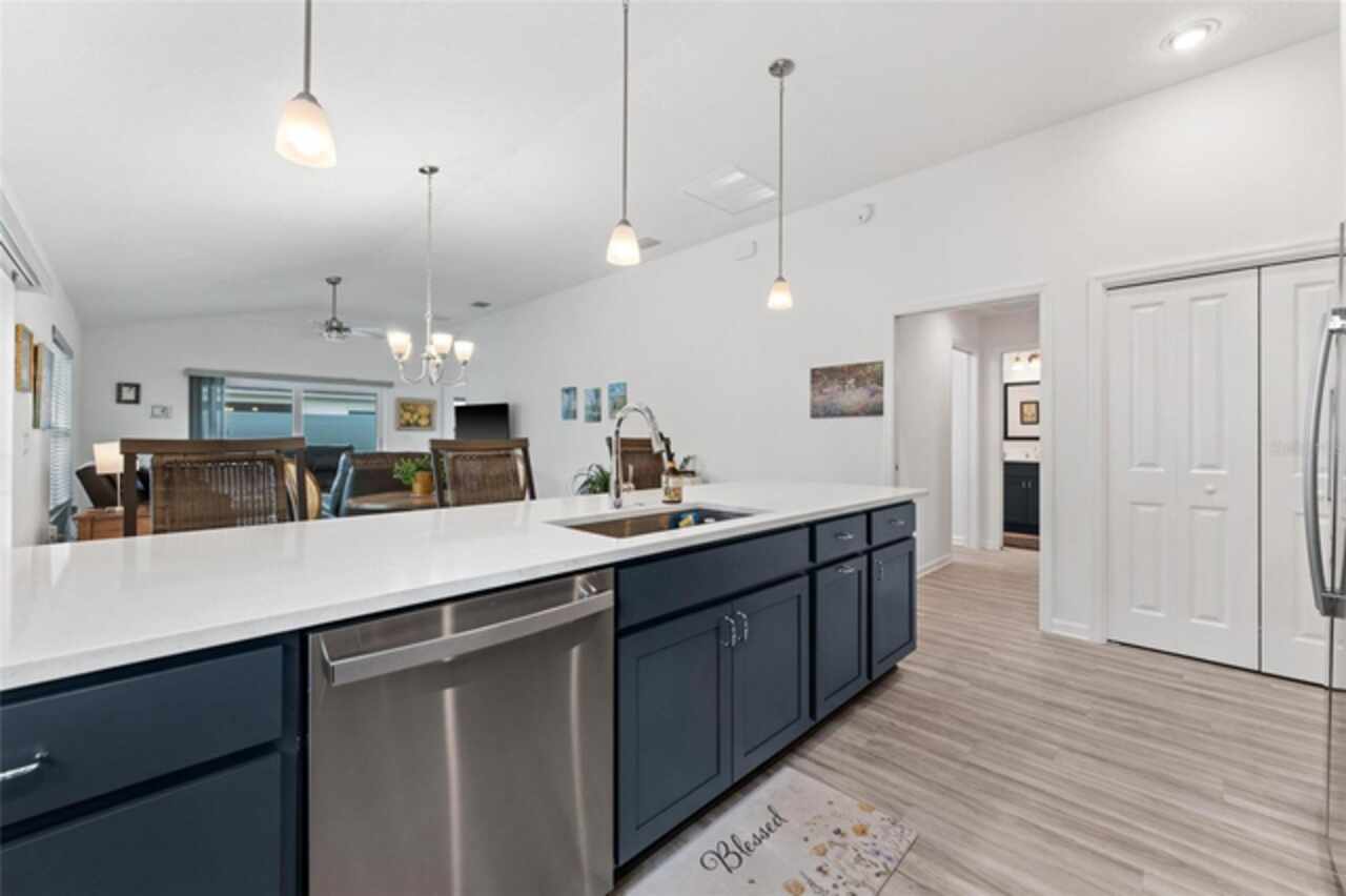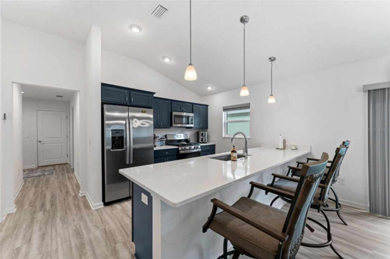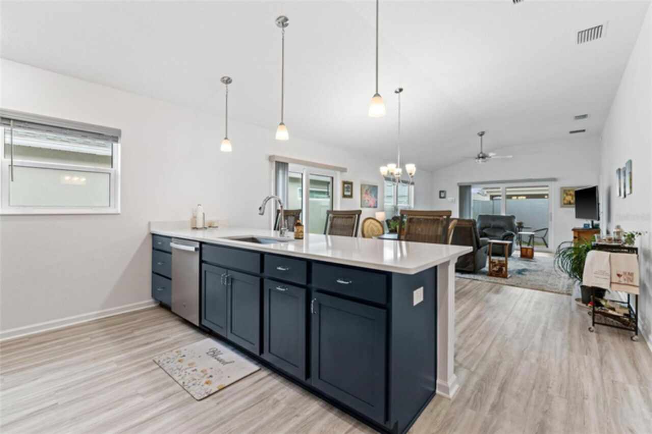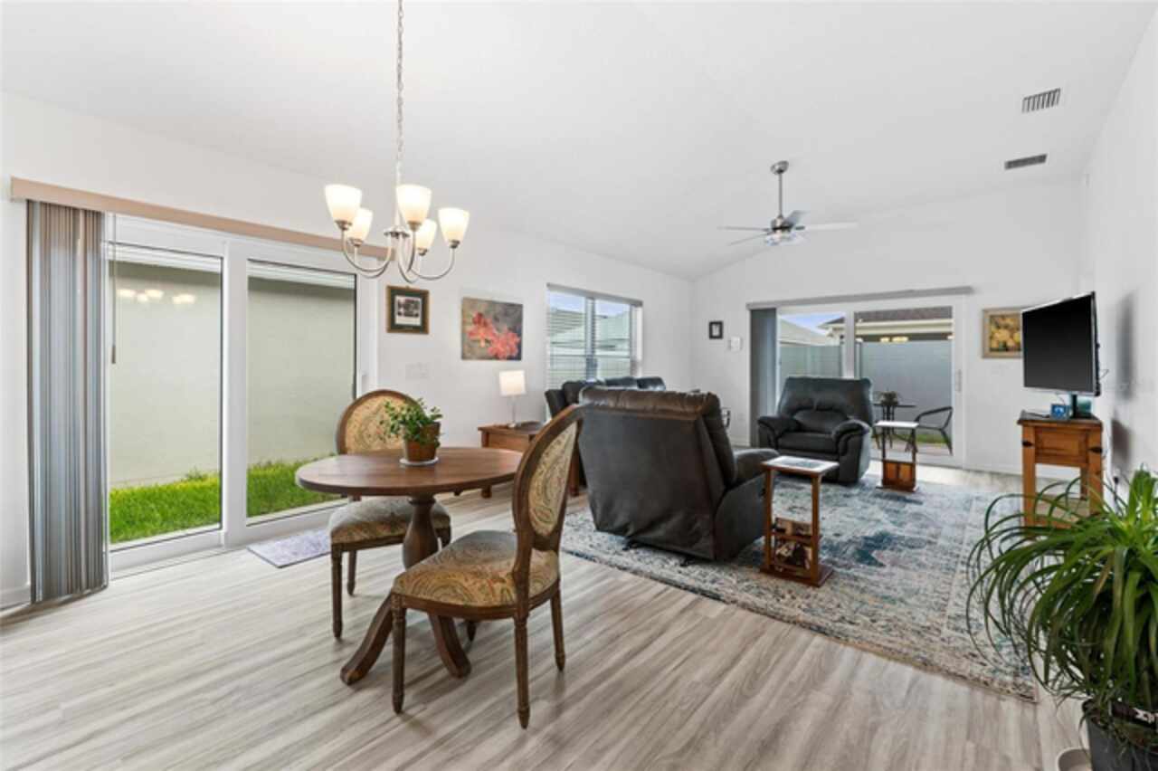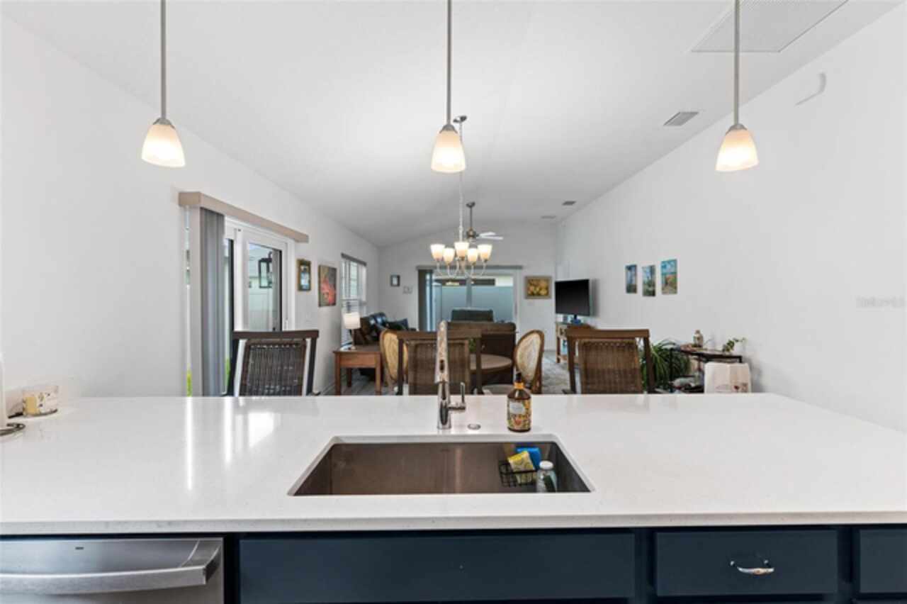 Welcome to 530 Van Deen Place just minutes from the new destination of Eastport, located in the heart of The Villages, is buzzing with activity as construction projects across the area bring an exciting vision to life. Eastport is set to become a destination that offers something for everyone. Discover effortless luxury and modern comfort in this newly built courtyard-style villa, nestled in a peaceful setting within the vibrant 55+ community of The Villages. Step inside to an inviting open floor plan layout boasting soaring ceilings, luxury vinyl flooring throughout, and a chef-inspired kitchen featuring sleek quartz countertops, TURKISH SHOWER in the primary suite and elegant finishes throughout the home. The spacious courtyard and professional landscaping create a private outdoor retreat for morning coffee or evening gatherings. Your two-car garage offers stylish utility and extra storage. Living here means enjoying world-class amenities: gated access, fitness center, dog park, golf and tennis courts, pools, many activities to join and a range of outdoor paths and green spaces, all within a short drive to restaurants, healthcare, and shopping.