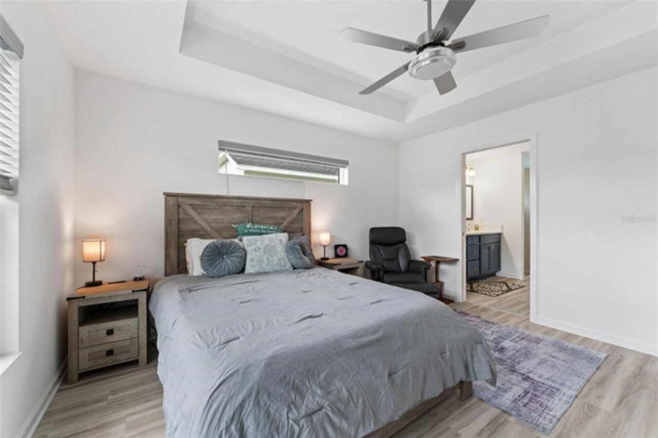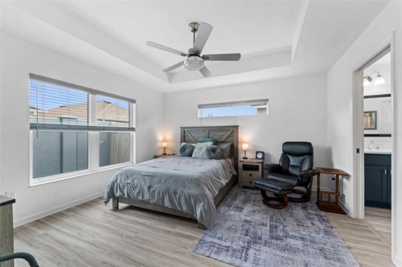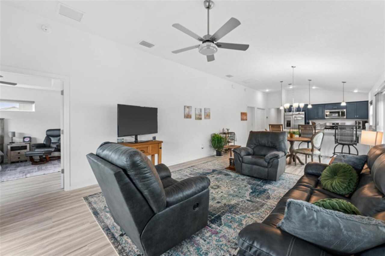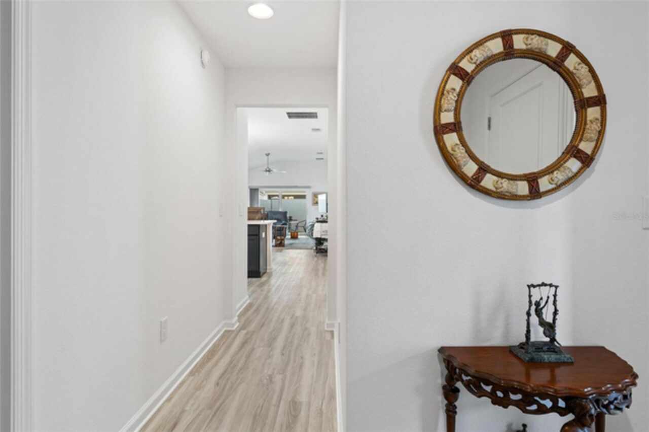 Welcome to 530 Van Deen Place just minutes from the new destination of Eastport, located in the heart of The Villages, is buzzing with activity as construction projects across the area bring an exciting vision to life. Eastport is set to become a destination that offers something for everyone. Discover effortless luxury and modern comfort in this newly built courtyard-style villa, nestled in a peaceful setting within the vibrant 55+ community of The Villages. Step inside to an inviting open floor plan layout boasting soaring ceilings, luxury vinyl flooring throughout, and a chef-inspired kitchen featuring sleek quartz countertops, TURKISH SHOWER in the primary suite and elegant finishes throughout the home. The spacious courtyard and professional landscaping create a private outdoor retreat for morning coffee or evening gatherings. Your two-car garage offers stylish utility and extra storage. Living here means enjoying world-class amenities: gated access, fitness center, dog park, golf and tennis courts, pools, many activities to join and a range of outdoor paths and green spaces, all within a short drive to restaurants, healthcare, and shopping.