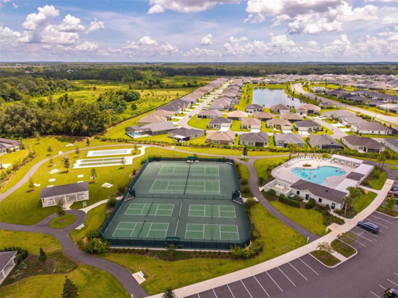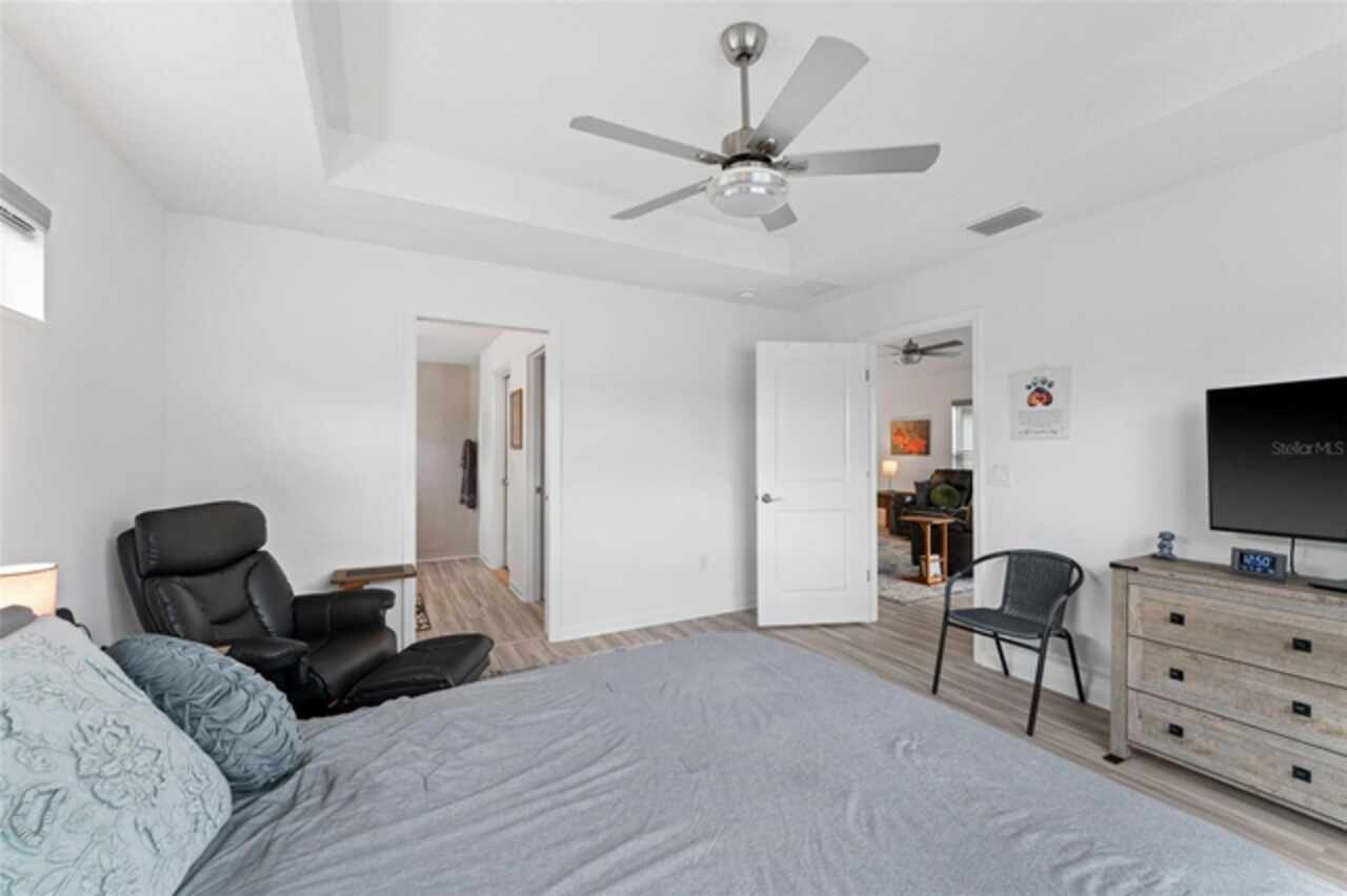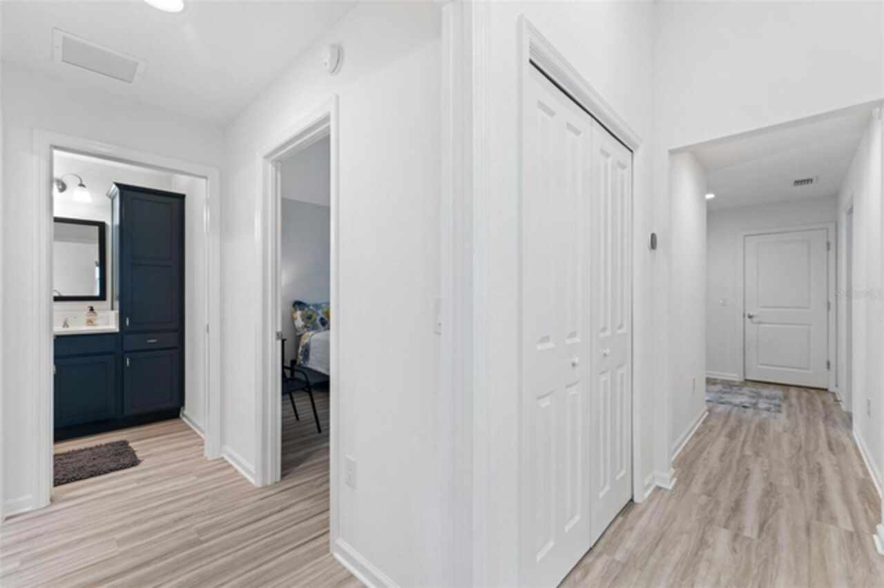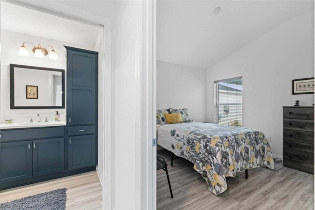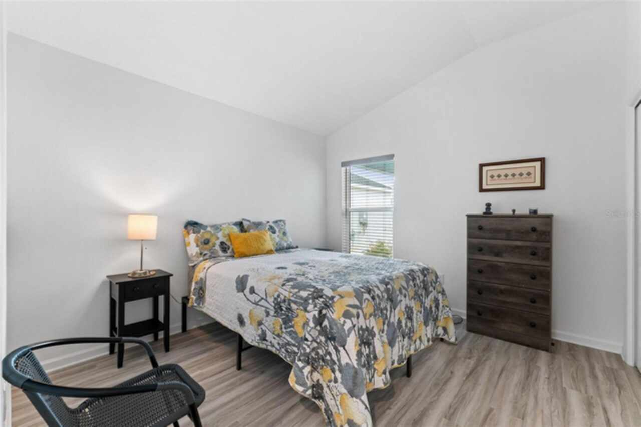 Welcome to 530 Van Deen Place just minutes from the new destination of Eastport, located in the heart of The Villages, is buzzing with activity as construction projects across the area bring an exciting vision to life. Eastport is set to become a destination that offers something for everyone. Discover effortless luxury and modern comfort in this newly built courtyard-style villa, nestled in a peaceful setting within the vibrant 55+ community of The Villages. Step inside to an inviting open floor plan layout boasting soaring ceilings, luxury vinyl flooring throughout, and a chef-inspired kitchen featuring sleek quartz countertops, TURKISH SHOWER in the primary suite and elegant finishes throughout the home. The spacious courtyard and professional landscaping create a private outdoor retreat for morning coffee or evening gatherings. Your two-car garage offers stylish utility and extra storage. Living here means enjoying world-class amenities: gated access, fitness center, dog park, golf and tennis courts, pools, many activities to join and a range of outdoor paths and green spaces, all within a short drive to restaurants, healthcare, and shopping.
