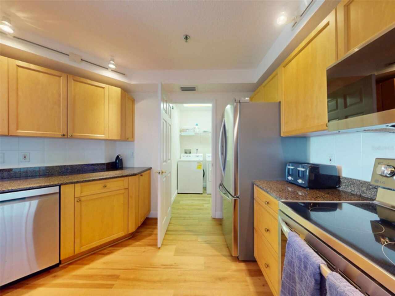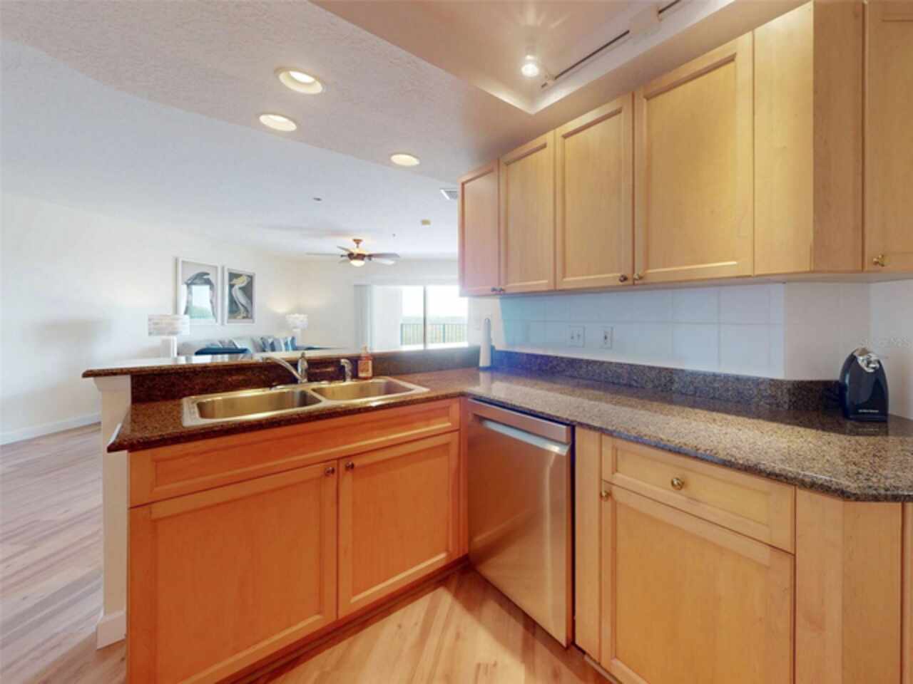 THIS BEAUTIFUL PARTIALLY FURNISHED TWO BEDROOM CONDO IN OCEAN WALK. THE SECOND BEDROOM CAN BE A BEDROOM OR AN OFFICE AND HAS NEW LUXURY VINYL PLANKING FLOORING AND BASEBOARDS THROUGH OUT THE UNIT. COMPLETELY UPDATED WITH GRAINTE COUNTERTOPS, NEW 2025 STAINLESS STEEL APPLIANCES, SLIDERS HAVE NEW 2025 VERTICAL BLINDSAND A BRAND-NEW 2022 AC. THIS BUILDING HAS COMPLETED AN EXTENSIVE EXTERIOR RENOVATION A LITTLE OVER THREE YEARS AGO AND IS MOVE IN READY WITH BEAUTIFUL FURNISHINGS, QUEEN SOFA SLEEPER. YOU WILL NOT WANT TO MISS THIS OPPORTUNITY TO LIVE JUST SHORT DISTANCE TO THE BEACH, CLUBHOUSE AND POOL. VIEW WILDLIFE AND BEAUTIFUL FLORIDA SUNSETS OVER THE SALT MARSH NATURE PRESERVE AND NATURE PATHS FROM YOUR COVERED LANAI. MAIN BEDROOM HAS LARGE CLOSET, DOUBLE SINKS IN THE OVERSIZED BATHROOM, AND IN MAIN BEDROOM SEPARATE SLIDERS TO THE LANAI. THE DINING ROOM, LIVING ROOM COMBINATION GIVES THE UNIT THAT LARGE AND HAS SLIDERS TO THE LANAI WHICH GIVES A SPACIOUS AND BRIGHT FEELING OF LIVING IN THE PERFECT CONDO. THE BREAKFAST BAR IN THE KITCHEN IS CONVENIENT FOR SERVING AND FOOD PREPARATION. LOTS AND LOTS OF CLOSETS AND STORAGE. THE CONVENIENCE OF THE UNDER-BUILDING GARAGE AND BEING CLOSE TO THE ELEVATOR MAKES SHOPPING AND TRANSPORTING GROCERIES AND OTHER GOODS EASY WHILE PROTECTING YOUR AUTOMOBILE FROM THE ELEMENTS. AN ADDITONAL LARGE STORAGE CLOSET IS LOCATED CLOSE TO THE UNIT
