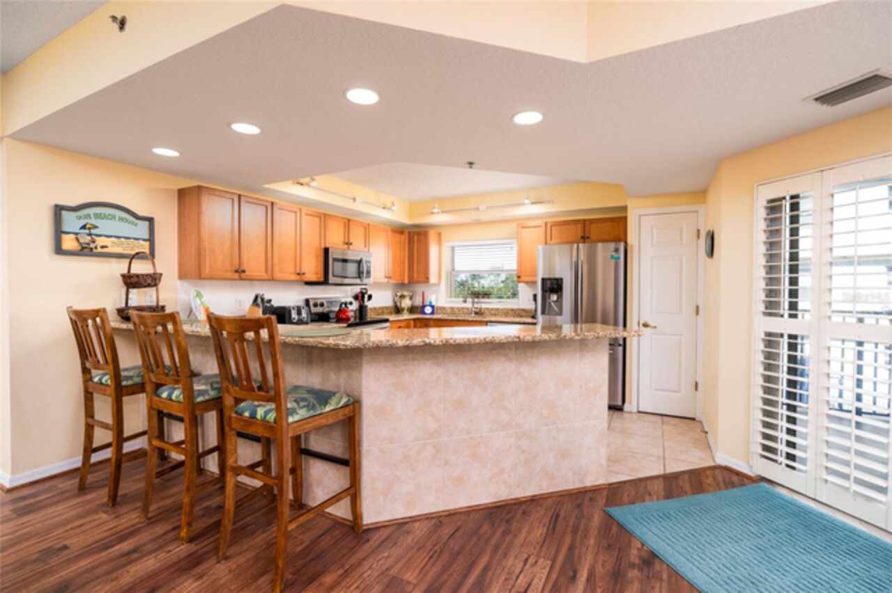 Welcome to your coastal sanctuary in the highly sought-after Ocean Walk community, ideally situated along the tranquil, no-drive stretch of New Smyrna Beach. This beautifully appointed 3-bedroom, 2-bath condominium is nestled on the 3rd floor of Building 10, offering expansive estuary views and abundant natural light as an end unit. Built in 2006 and thoughtfully updated, this fully furnished 1, 771 sq ft residence blends refined comfort with modern conveniences. Recent enhancements include plush new carpeting and stylish living room furniture (2021), a sleek epoxy-coated balcony floor, recessed lighting, elegant plantation shutters, and newer kitchen appliances. The kitchen is a culinary delight with gleaming granite countertops, perfect for both entertaining and everyday living. A new A/C system was installed in 2017, ensuring year-round comfort. Step inside and feel instantly at home in the generously proportioned living space. The serene primary suite features a large walk-in closet and a luxurious ensuite bath complete with dual vanities, a spa-style Jacuzzi tub, and a separate walk-in shower. Two private balconies provide the ideal setting for morning coffee or evening relaxation, with the soothing sounds of the ocean just moments away. Additional conveniences include in-unit laundry, a trash chute on the same floor, secure garage parking, and a spacious private storage unit. Ocean Walk is a gated community offering an array of resort-style amenities: two sparkling pools, tennis courts, gas grills, shuffleboard, a private movie theater, two well-equipped fitness centers, jacuzzis, and dual clubhouses. A private beach walkover ensures effortless access to the pristine sands of New Smyrna’s exclusive no-drive beach. Building 10 has recently undergone significant exterior renovations, including full restoration and sealing of facades, application of three-coat 10-year warranty paint, new exterior lighting throughout, and balcony resurfacing—ensuring both beauty and longevity. Whether you seek a full-time residence, a seasonal retreat, or an income-producing vacation rental, this exceptional condo offers the ultimate blend of luxury, location, and lifestyle. Opportunities like this are rare—schedule your private showing today and discover coastal living at its finest.