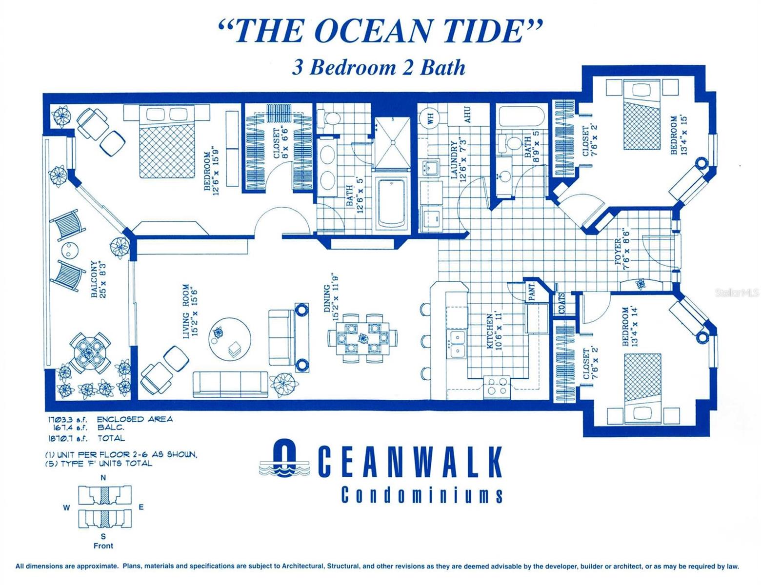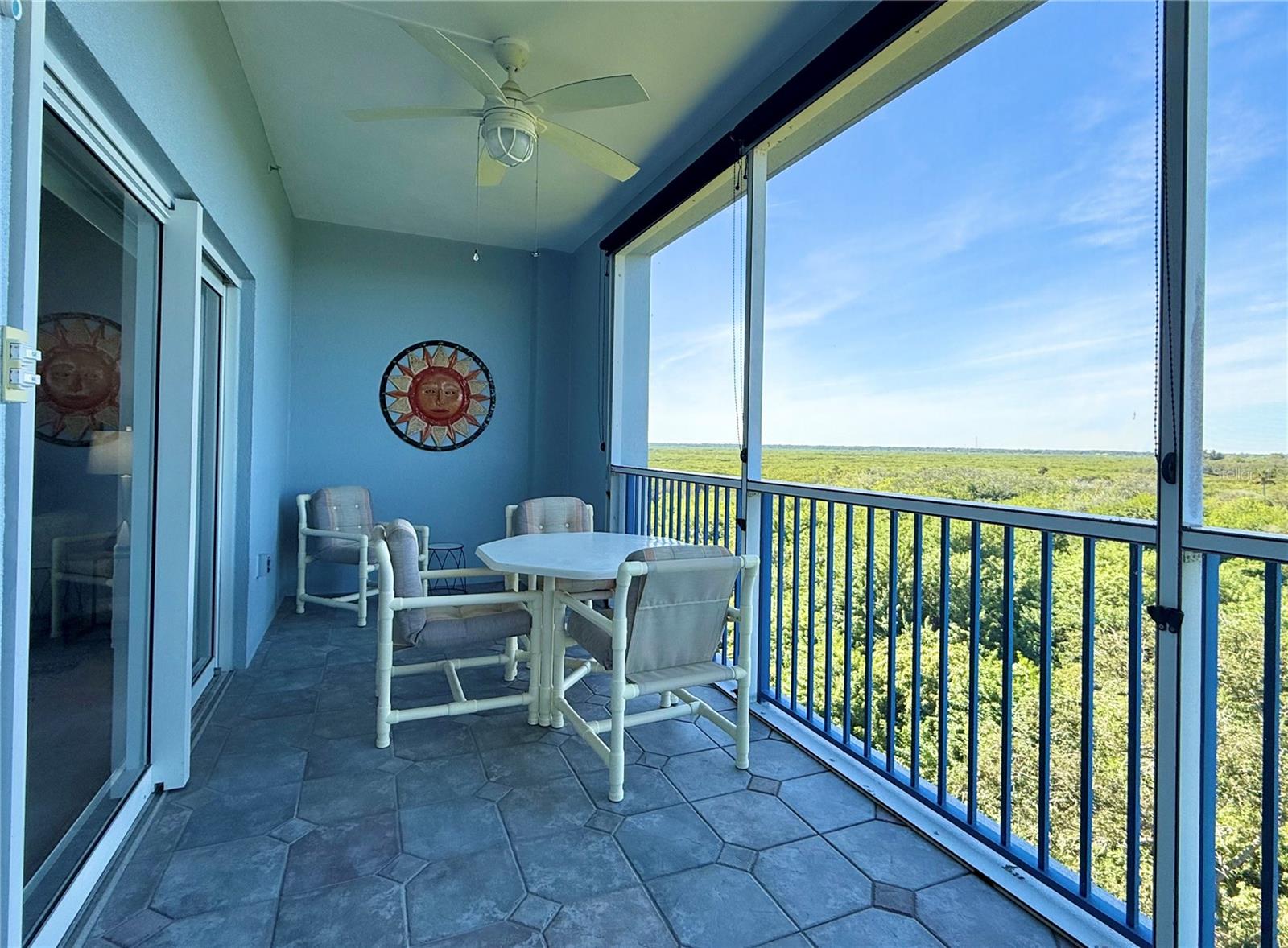 Step into luxurious coastal living with this stunning 3-bedroom, 2-bath 5th-floor beach condo. Enjoy sweeping 180-degree of private unobstructed estuary views with stunning sunsets, plus ocean-peak views from the front of this unit. The Ocean Tide floor plan provides a spacious layout with over 1, 700 square feet of comfortable living space. Property comes with a brand new Coastal furniture-package, brand new onyx stainless steel LG washer and dryer, high end onyx stainless steel kitchen appliances, upgraded ceiling fans and light fixtures, 9-foot ceilings, custom built closet organizers in each bedroom, large laundry room with utility tub, and upgraded Zebra window shades. The screened-in balcony has been tiled and comes with Coolaroo sunshades. New HVAC from 2024. New Water Heater from 2025. EUFI security doorbell camera. All assessments paid. Elevator in building. This beautifully appointed retreat is turn key, move in ready so you can start enjoying the beach lifestyle. This unit has never been rented. Ocean Walk amenities include two heated pools, two fitness facilities, hot tubs, lighted tennis courts, barbecue area, shuffleboard, bocce ball and a nature walking trail. The community also provides garage parking, two secured gated entrances, and easy access to private walkover to the no-drive beach.