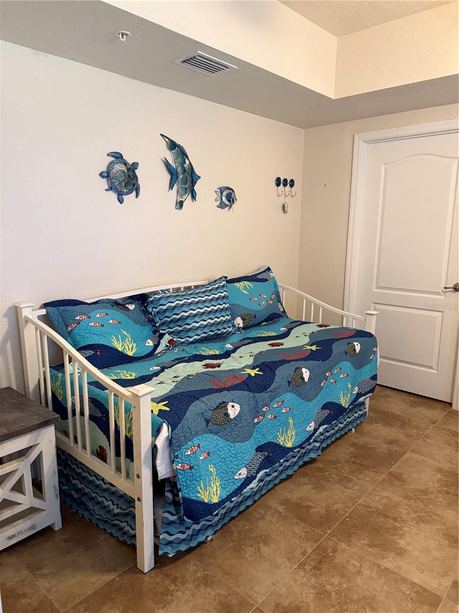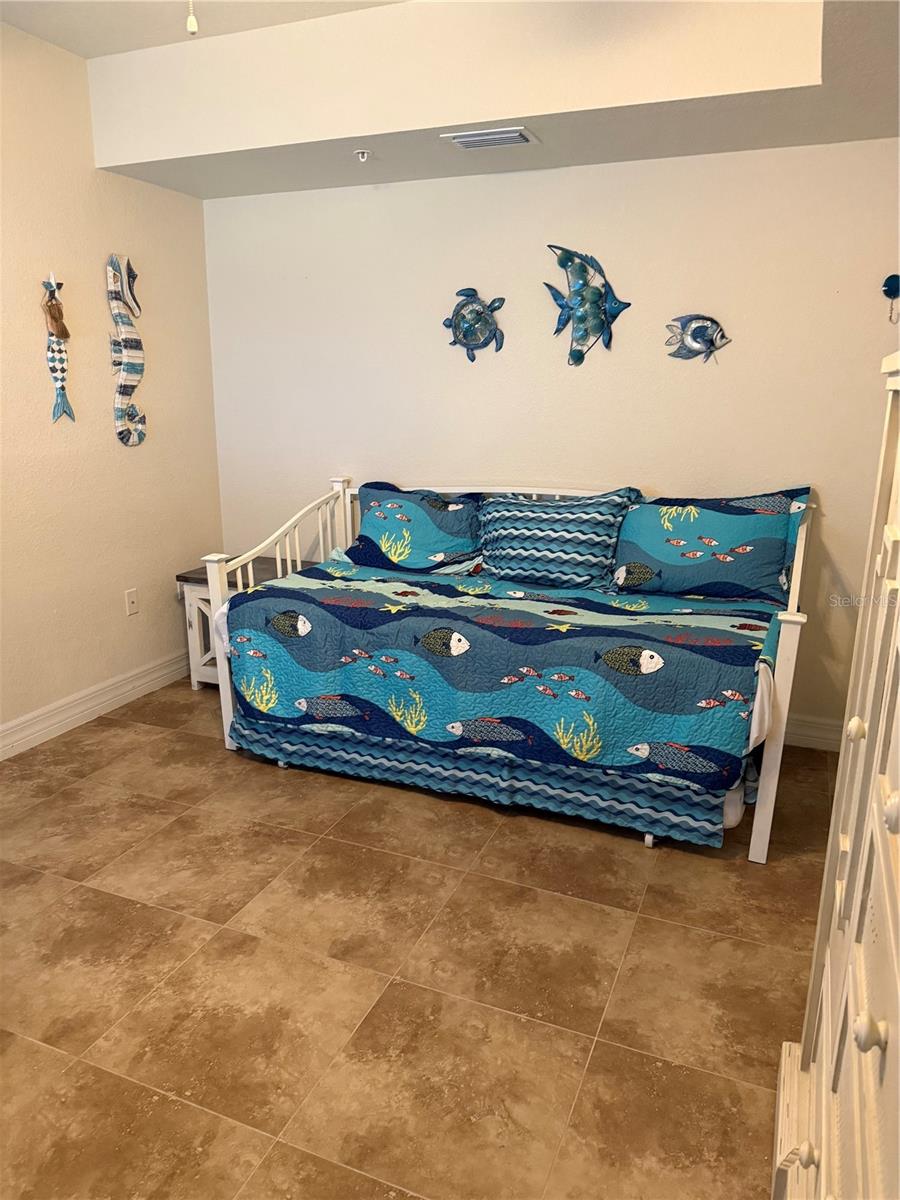 Discover coastal elegance in this stunning 2-bedroom, 2-bathroom condo on the fourth floor of Ocean Walk Building 19, offering direct garage-to-elevator access and breathtaking ocean views. This meticulously maintained unit features an open concept living and dining area that flows into a newly renovated kitchen with modern appliances, ample cabinetry, and sleek countertops, complemented by a convenient laundry room with washer and dryer just off the kitchen. The split-bedroom layout ensures privacy, with a luxurious primary suite boasting dual sinks, a spacious shower, a garden tub, and a large walk-in closet, while the generous guest bedroom includes its own walk-in closet and access to a full bathroom with a shower/tub combo. Unwind on the expansive, screened, covered balcony overlooking West to serene nature trails Intracoastal waterways for a sunset view and on the front entry Sunrise views over the ocean, making this freshly updated condo the perfect blend of modern comfort and coastal charm—ideal for a primary residence, vacation home, or investment rental available turnkey with furnishings. The amenities are a short walk to nature trails, pools spas recreation building with fitness center, theater, sauna, basketball court, tennis courts, pedestrian walkover to beach and all in a secure gated community