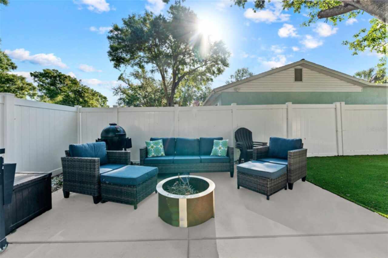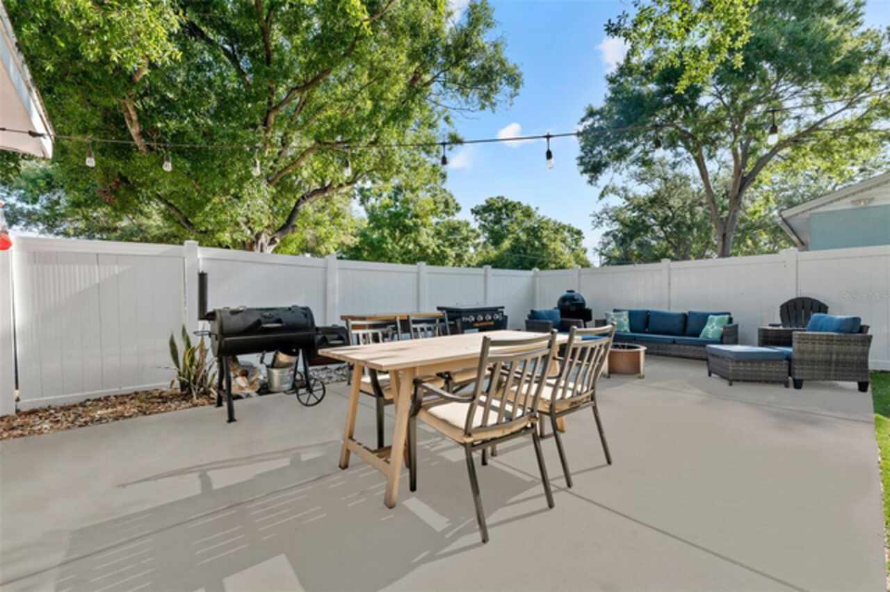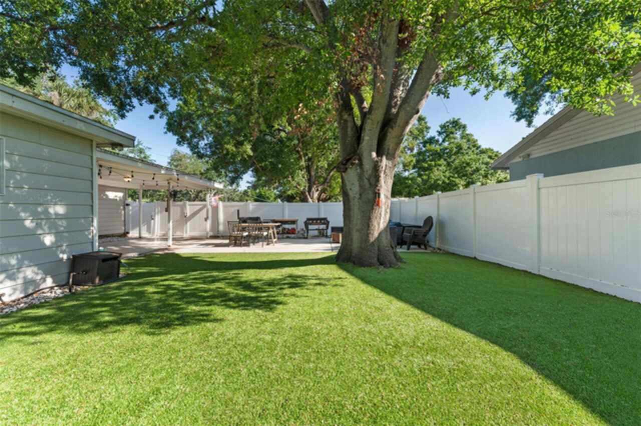 Welcome to this beautifully updated 3-bedroom, 3-bathroom South Tampa home offeringstylish living space. Situated on a spacious corner lot, this property combines modern upgrades with functional design.Step into a bright and expansive living room featuring luxury vinyl plank flooring that runs throughout the entire home. The open-concept layout includes a passthrough to the modern kitchen, complete with white cabinetry, a breakfast bar, and a full stainless steel appliance package including refrigerator, range, microwave hood, and dishwasher. Adjacent to the kitchen is a dedicated dining area, ideal for entertaining. The split-bedroom floor plan offers privacy and flexibility, with a spacious primary suite featuring a fully remodeled en-suite bathroom, frameless glass shower, and walk-in closet. Two generously sized secondary bedrooms are serviced by two additional full bathrooms—perfect for guests or growing households. Additional highlights include full-size washer and dryer hookups in the utility room, a 1-car carport and a fully fenced backyard with stylish outdoor living spaces ideal for hosting or relaxing. Located just minutes from MacDill Air Force Base, Bayshore Blvd, downtown Tampa, and the bridges to the Gulf beaches—this home offers convenience, charm, and move-in ready comfort in one of Tampa’s most sought-after neighborhoods.