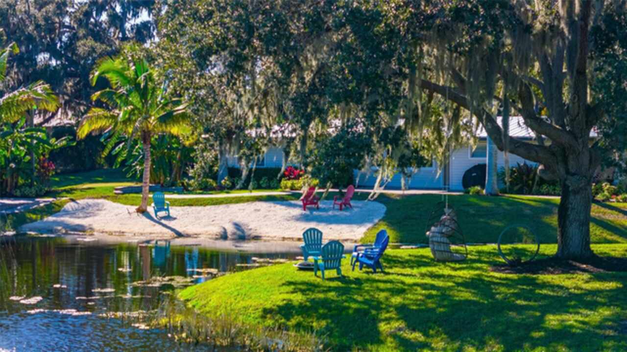 Welcome to a truly one-of-a-kind property in Palmetto-a cheerful and versatile investment opportunity with endless possibilities! Perfectly positioned with easy access to St. Petersburg, Tampa, Sarasota, and Bradenton, this 3-bedroom, 2-bathroom home sits on just under 2 acres of tropical beauty and recreational fun. Whether you’re an investor, business owner, or visionary entrepreneur, this property offers a rare blend of location, privacy, and flexibility that’s ready to work as hard as you do. Outside, it’s a Florida dream come true-complete with a peaceful pond, your own sandy beach, a custom fire pit for sunset gatherings, a golf hole with 3 tee boxes, sand trap, and a separate putting green, and a private pickleball court for hours of fun and networking. There's ample space for RV parking, boat trailers, or all your outdoor toys, plus room to add additional storage or even expand. The lush bamboo and mature landscaping adds a resort-style feel and a true sense of solitude that's hard to find, making it an ideal setting for retreats, events, or high-end short-term rentals. Inside, the layout offers adaptable spaces with character and potential. Barn doors open into a cozy family room with a fireplace-perfect for welcoming guests or creating a lounge-style gathering space. A bonus room with French doors opens to the outdoors, offering natural light and direct access for meetings, creative sessions, or quiet relaxation. Another large bonus room leads straight out to the pickleball court—an entertainer’s dream or an easy conversion to a game room, fitness studio, or home office. This property is packed with potential and good vibes-whether you're building your business, expanding your rental portfolio, or just looking for a place that offers something a little more fun. With acreage, location, and a one-of-a-kind atmosphere, this is an opportunity worth exploring.